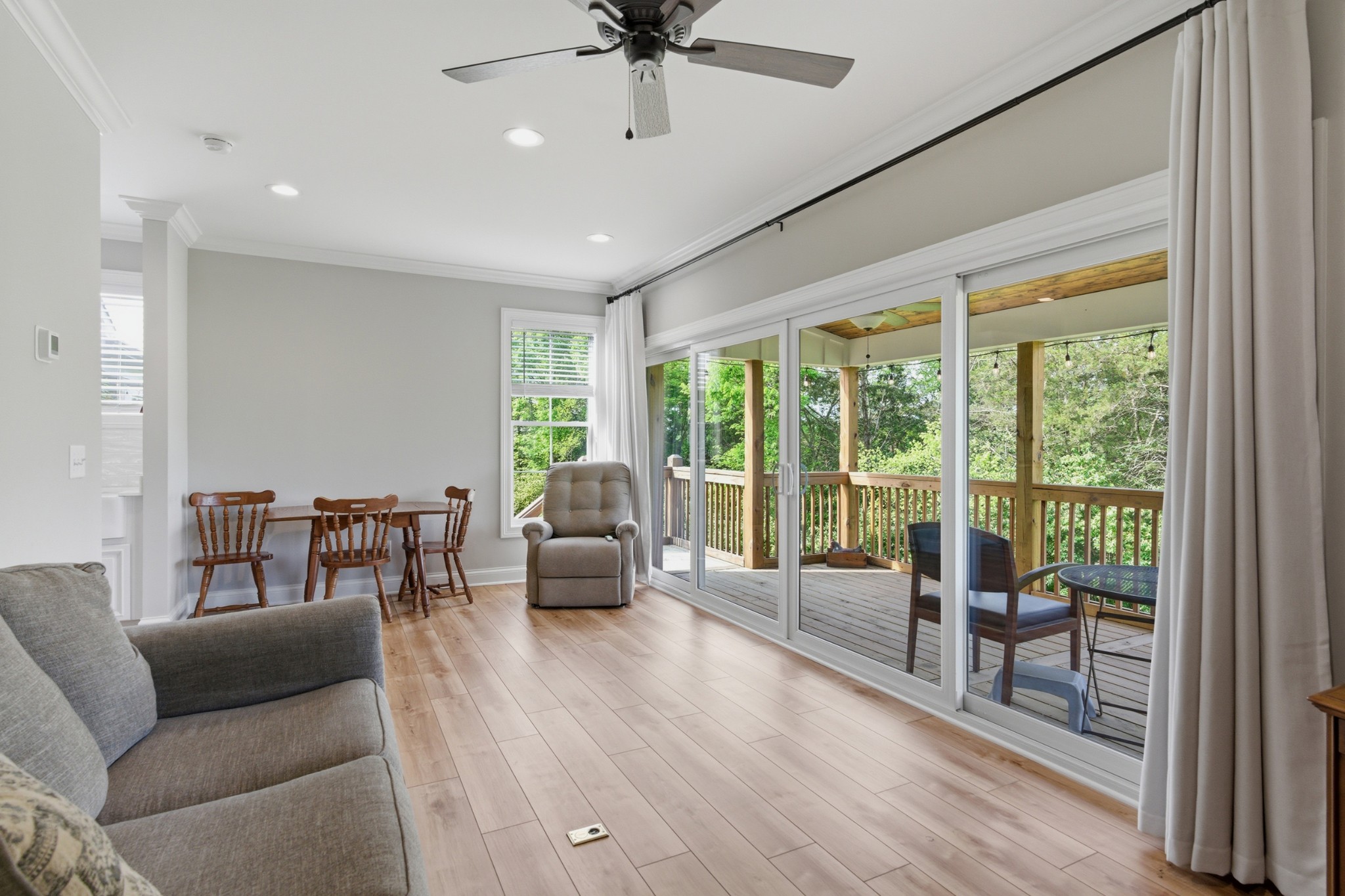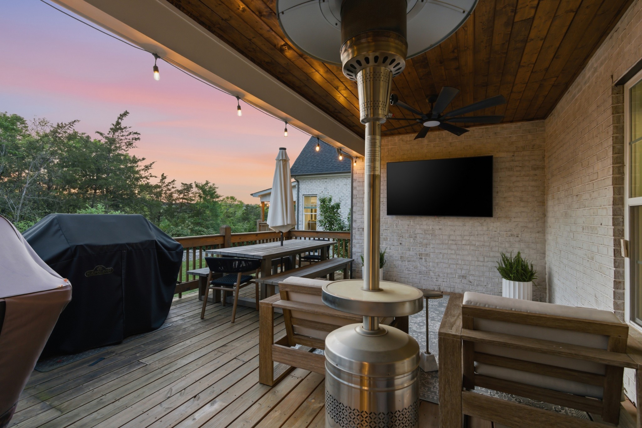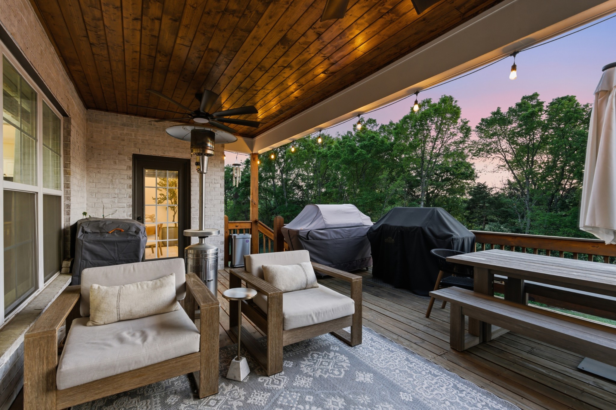 Outdoor living is just as impressive, with multiple covered decks overlooking a private, tree-lined backyard offering both space and seclusion.
