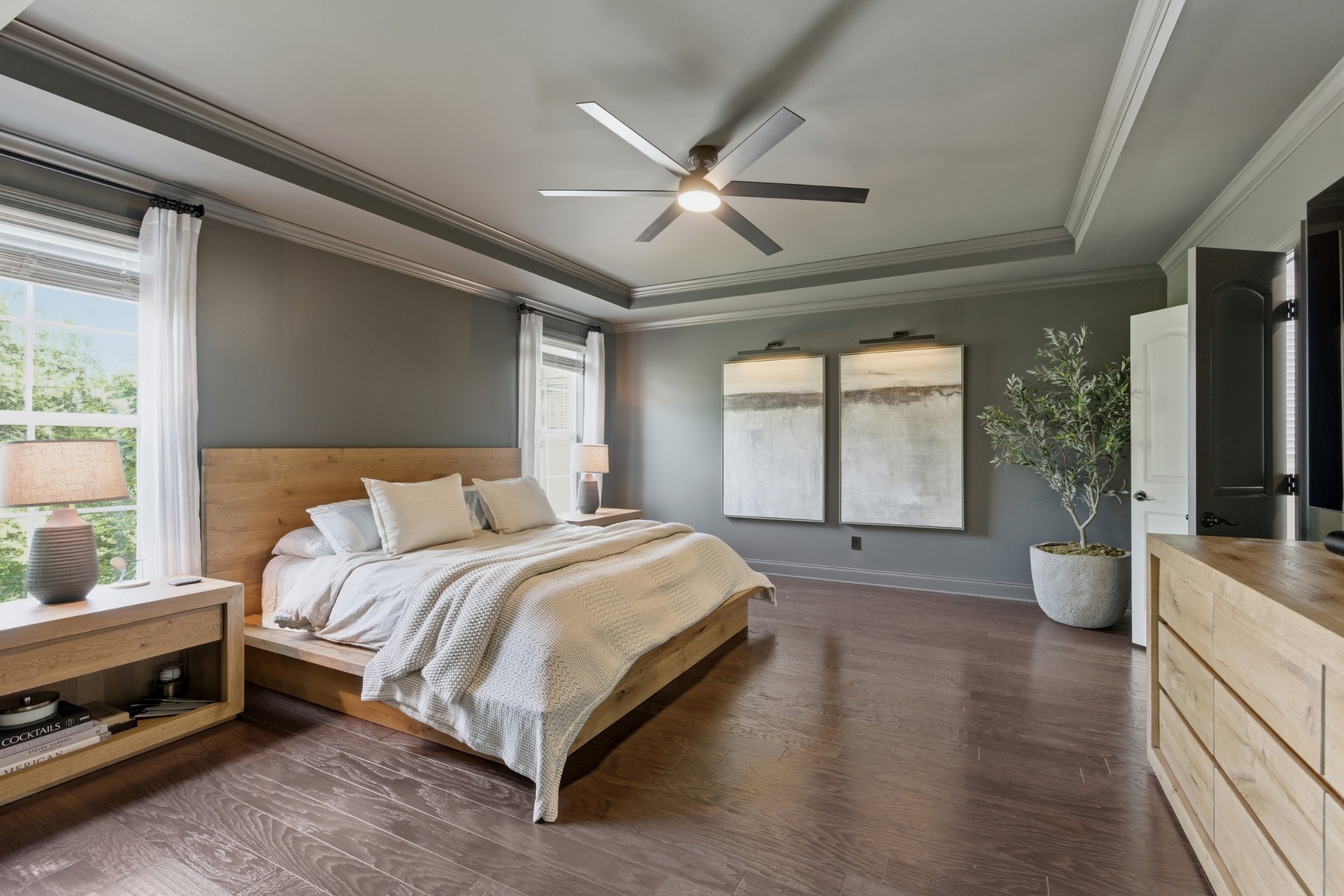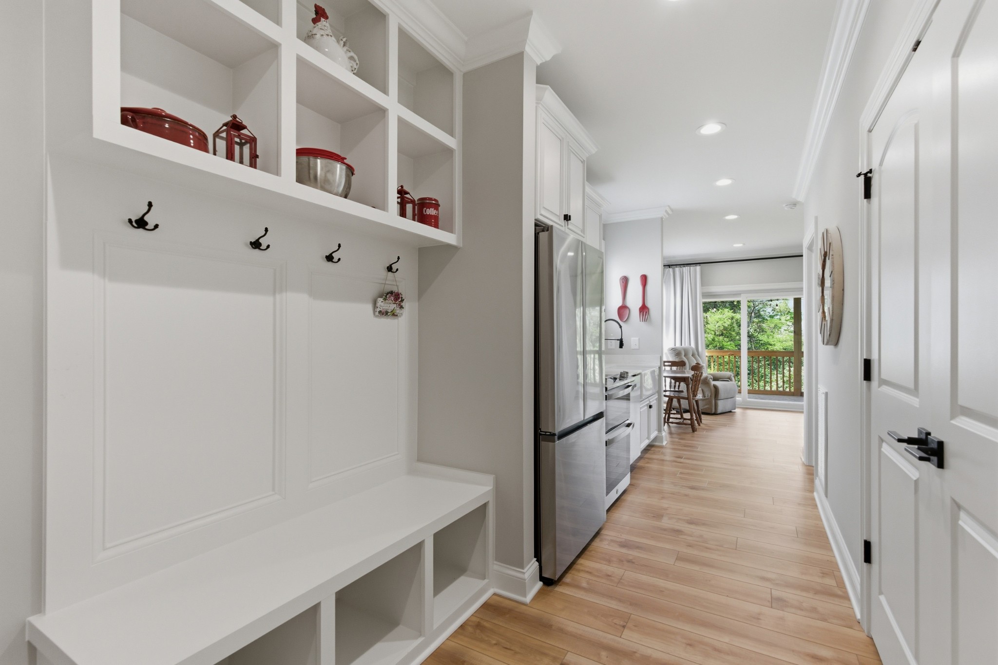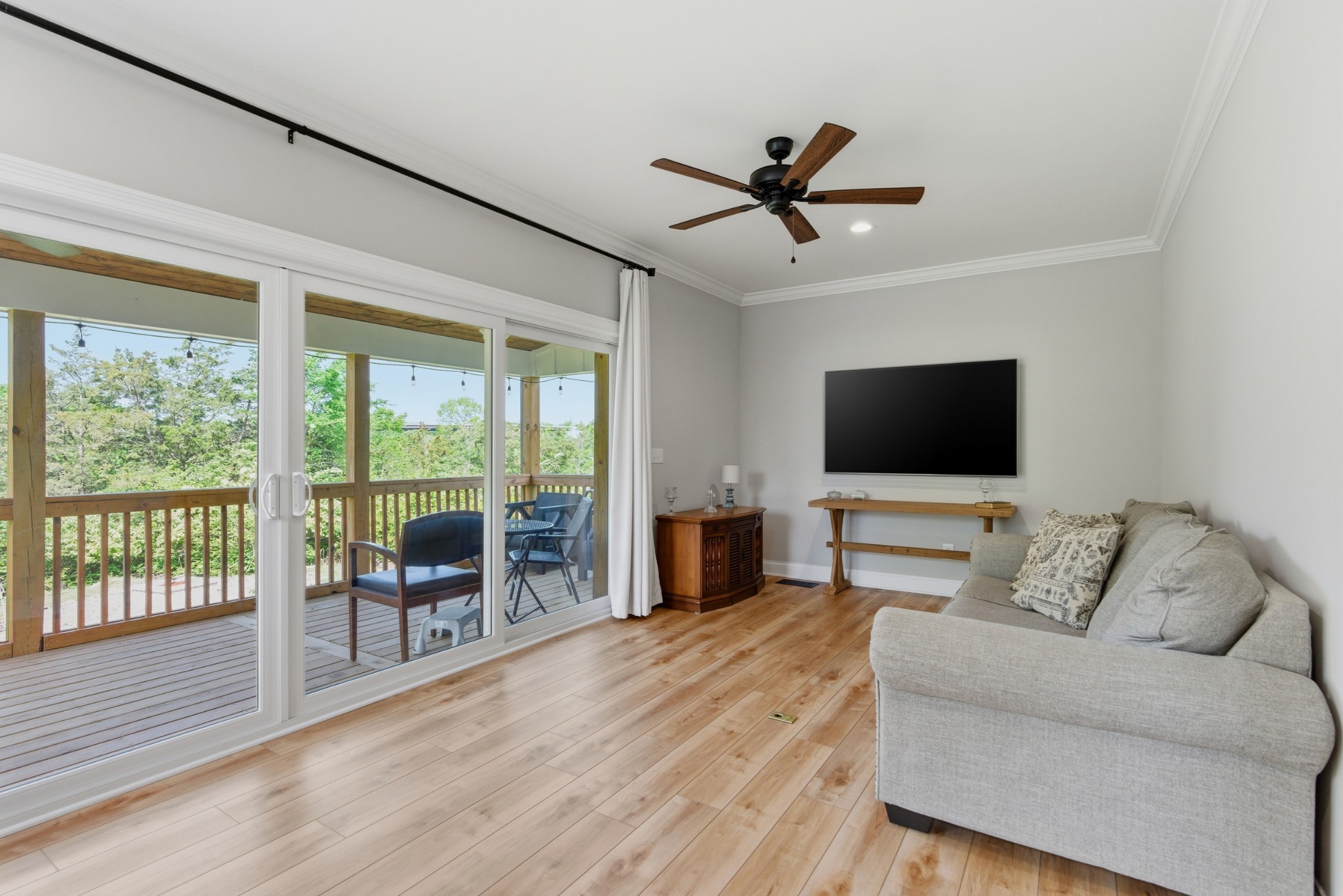 Outdoor living is just as impressive, with multiple covered decks overlooking a private, tree-lined backyard offering both space and seclusion.