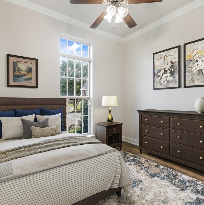 Welcome to this beautifully renovated lakeside gem situated in the peaceful and desirable Oak Alley community, where this spacious 4 bedroom home marries timeless elegance with modern comfort. Inside, enjoy the craftsmanship of triple and double crown molding throughout, complemented by plantation shutters and a bright, airy ambiance. The gourmet kitchen is a chef’s dream, featuring beveled granite countertops, abundant cabinetry, and a premium gas stove. Efficiency meets convenience with Rheem tankless water heaters providing uninterrupted hot water. The master suite is a peaceful retreat boasting generous space, an expansive bath, and a walk-in closet to match. From the screened-in patio, unwind and enjoy breathtaking lake and fountain views, perfect for entertaining or quiet moments at sunset. The home is move-in ready with comprehensive upgrades: all-new flooring backed by a 10-year warranty, new lighting fixtures, a new roof, fresh interior and exterior paint, new toilets, new garage doors, and updated tankless water heaters. This home has been lovingly renovated and awaits its new owners—don’t miss the opportunity to make this lakeside sanctuary your own.