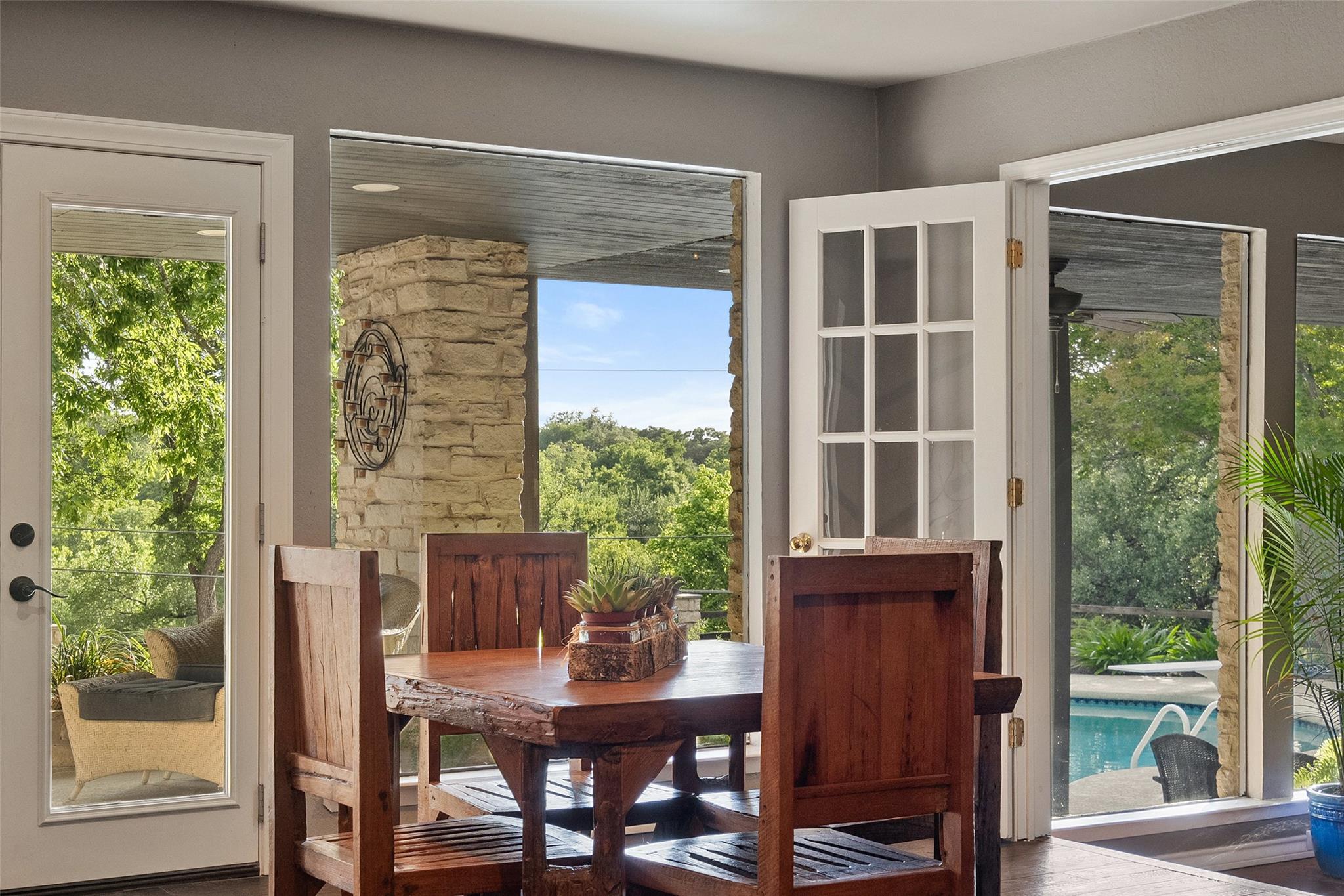 Homes like this don't hit the market - they make an entrance. On one of Georgetown’s most beloved streets, perched above the San Gabriel River, this isn’t just a home. It’s a stage for unforgettable memories. A true entertainer’s dream, where the parties are legendary, the sunsets are cinematic, and the vibe? Impeccable. From catered soirées to cocktail nights with bartenders shaking up something fabulous—this house was built to host. Step into the spacious living room—big enough to two-step across on a school night. Yes, we’ve tried. Yes, it’s delightful. In the summer, relax in the atrium and look up—straight into the stars. You just might catch the Big Dipper twinkling above you. There are three fireplaces to cozy up to, and more indoor and outdoor sitting areas than we can count. Every corner invites you to slow down, connect, and take it all in. And those views? Wall-to-wall glass in the back reveals nothing but nature in all her glory. Deer, foxes, hawks, lizards—your own personal wildlife show, every single day. As for the backyard fire pit… it’s heard its share of scary stories, laughter, and secrets. And yes—it’s been known to turn out a mean s’more. All this, just minutes from the charm of downtown Georgetown. So if you're waiting for a sign, this is it. Your dream home is calling from Gabriel View Drive.