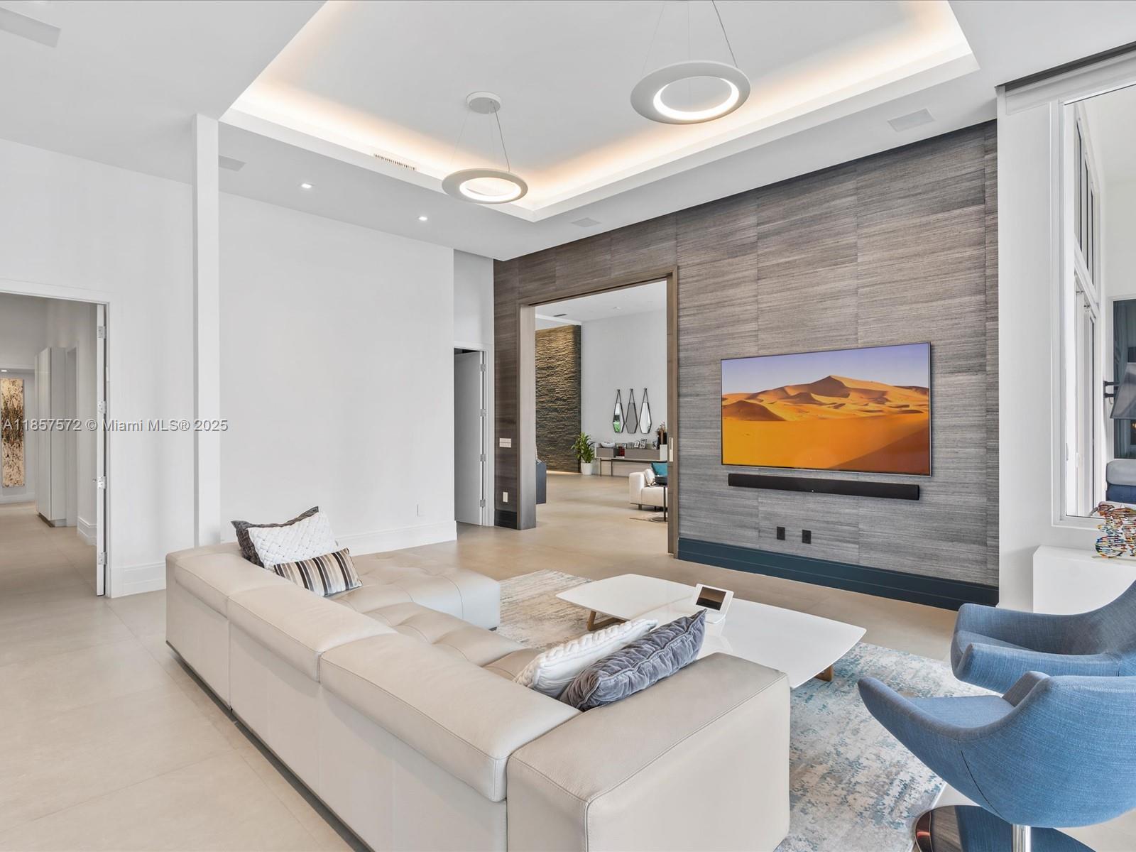 Welcome to your dream home in Golden Beach's exclusive South Island! This unique turnkey one-story residence, set on an oversized 18,975 sqft lot, features a spacious open floor plan with soaring 16 ft ceilings. Revel in stunning waterfront living with 115 ft on the water, complete with a newly built boat lift and a yacht and jet ski-equipped dock. The home boasts 6 luxurious suite bedrooms, including an oversized master suite with an outside Bali-style bathroom, a gym, and a second-floor in-law's or a teenager's dream unit . The manicured resort-like outdoor space is perfect for entertaining. Decorated to perfection and designed for the ultimate entertainer, this custom masterpiece offers unmatched amenities and is one of the most unique and desirable properties in the neighborhood.