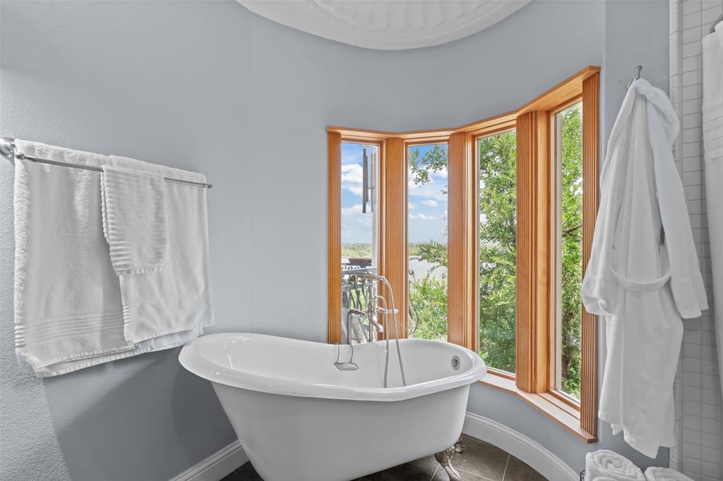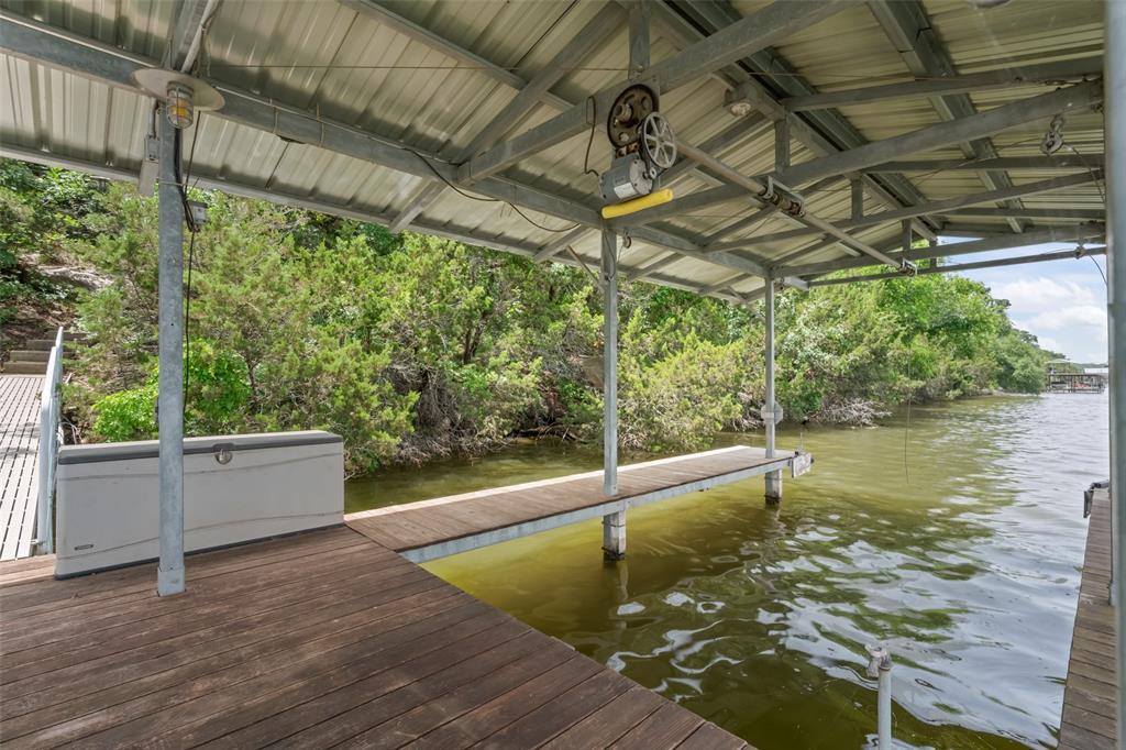 Escape to the Lake—A Mediterranean-Inspired Retreat on Open Water Welcome to this custom-built gem nestled on the main body of Lake Granbury in the exclusive community of River Ridge. This 3-bedroom, 2.5-bath home blends timeless architecture with rare lakeside luxury—offering not only sweeping water views but also private dock ownership with a boat lift, a privilege few lake homes in Texas can claim. From your own backyard staircase, step directly to the water’s edge and onto your private dock—perfect for boating, fishing, or simply enjoying quiet mornings by the lake. This is lakeside living at its finest, with unobstructed access to the main body and panoramic views that stretch for miles. The exterior showcases classic Mediterranean charm with a tile roof, stucco and stone façade, and a distinctive stone turret that gives the home unforgettable curb appeal. Inside, an oak staircase winds upward within the turret, setting a warm and dramatic tone the moment you enter. Natural light fills the open-concept living and dining areas, where sweeping views carry throughout the home. An island kitchen offers ample prep space and flows effortlessly to the covered al fresco dining terrace, perfect for lakeside entertaining. Upstairs, the primary suite and guest bedrooms each open to outdoor balconies, creating peaceful vantage points for sunset skies and morning breezes. The oversized garage is wired for an electric vehicle and includes extra room for lake gear and storage. Future-ready design includes pre-installed plumbing, drainage, and electric in the downstairs family room—perfect for creating an independent suite for guests or extended family. Ideally located just minutes from Granbury’s charming downtown, whether you’re looking for a forever home or a weekend escape, this property offers the perfect blend of comfort, character and possibility. This is where timeless beauty meets lakefront living. View it today, call it home tomorrow!