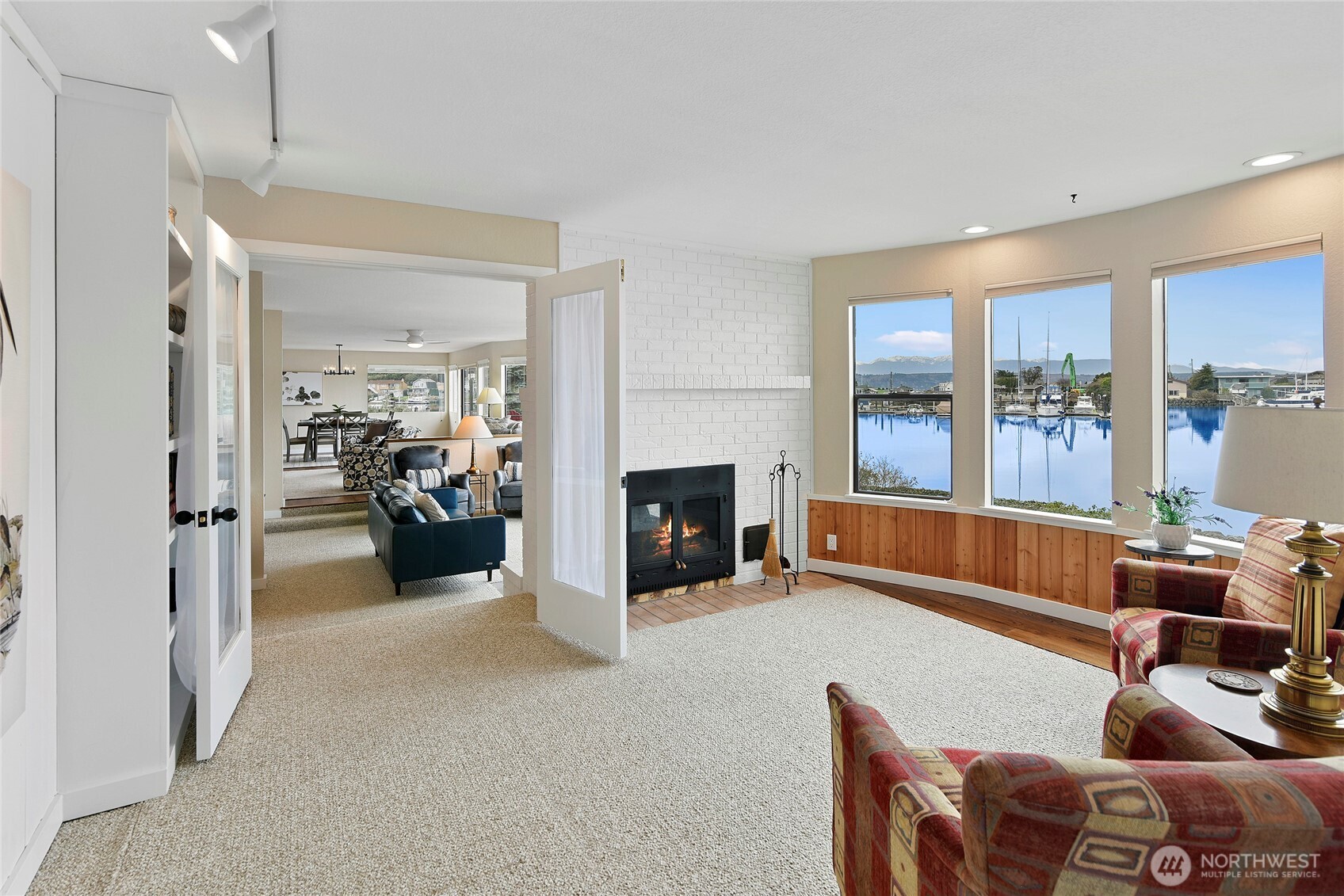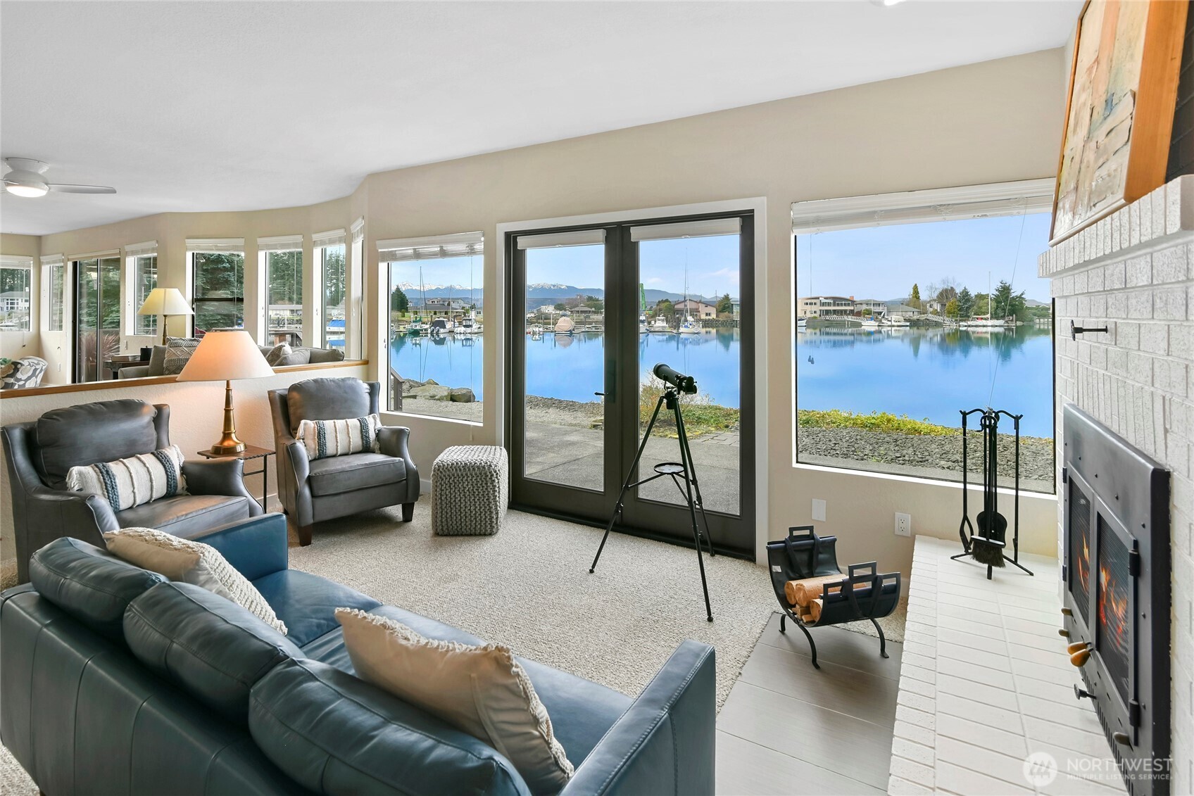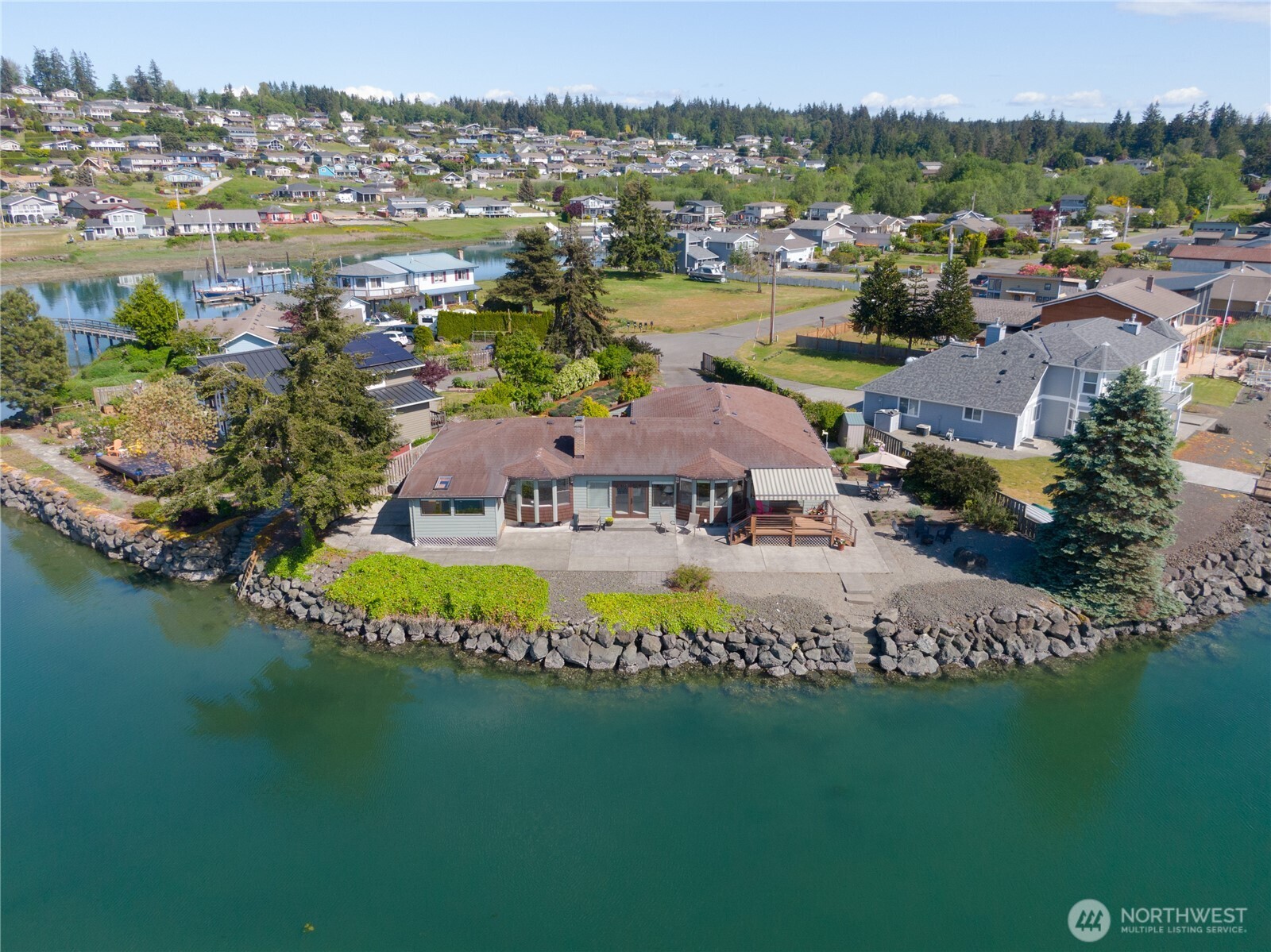 Dreamy one-level living with 125 feet of bulkheaded waterfront in Magical Driftwood Key. Enjoy breathtaking Bay and Olympic Mountain views while sipping coffee on the deck. The Great Room features bamboo floors, a two-sided fireplace, and expansive windows overlooking the water. The updated kitchen has newer appliances, granite countertops, and a walk-in pantry. Enjoy working in the office complete with a fireplace & views. The primary suite offers an exercise room with a sauna, his & her walk-in closets, and a spa-like bathroom. Take advantage of the community amenities of DK, including a clubhouse, pool & private beach access. Create unforgettable memories in this unique gem ready to be your cherished retreat!