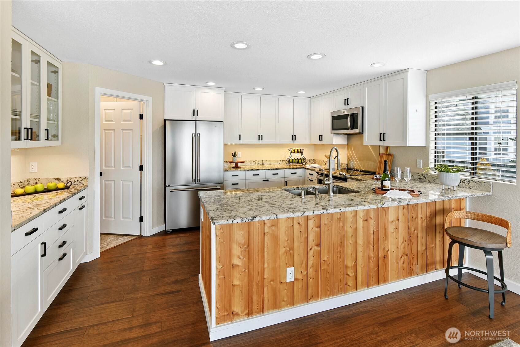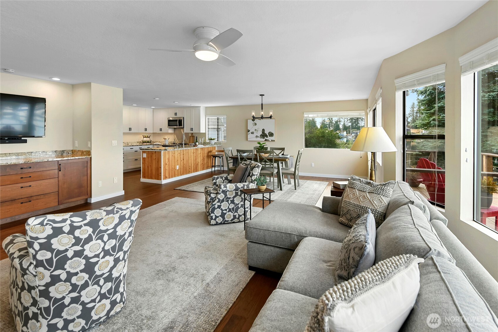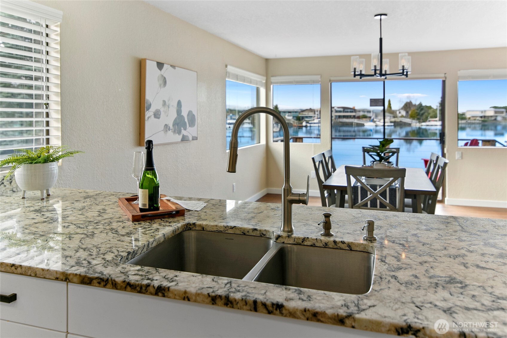 Dreamy one-level living with 125 feet of bulkheaded waterfront in Magical Driftwood Key. Enjoy breathtaking Bay and Olympic Mountain views while sipping coffee on the deck. The Great Room features bamboo floors, a two-sided fireplace, and expansive windows overlooking the water. The updated kitchen has newer appliances, granite countertops, and a walk-in pantry. Enjoy working in the office complete with a fireplace & views. The primary suite offers an exercise room with a sauna, his & her walk-in closets, and a spa-like bathroom. Take advantage of the community amenities of DK, including a clubhouse, pool & private beach access. Create unforgettable memories in this unique gem ready to be your cherished retreat!