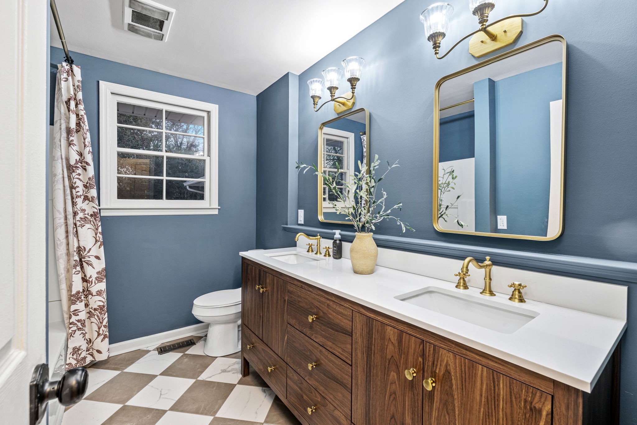 Original hardwood floors have been beautifully reimagined while a brand-new primary suite showcases a custom-trimmed walk-in closet and a spa-inspired bath with a 7 foot walnut vanity and designer tile. The kitchen is a showpiece—featuring honed granite countertops a farmhouse sink,open shelving with unlacquered brass rails, and a dedicated dish display cabinet to showcase your prettiest pieces.