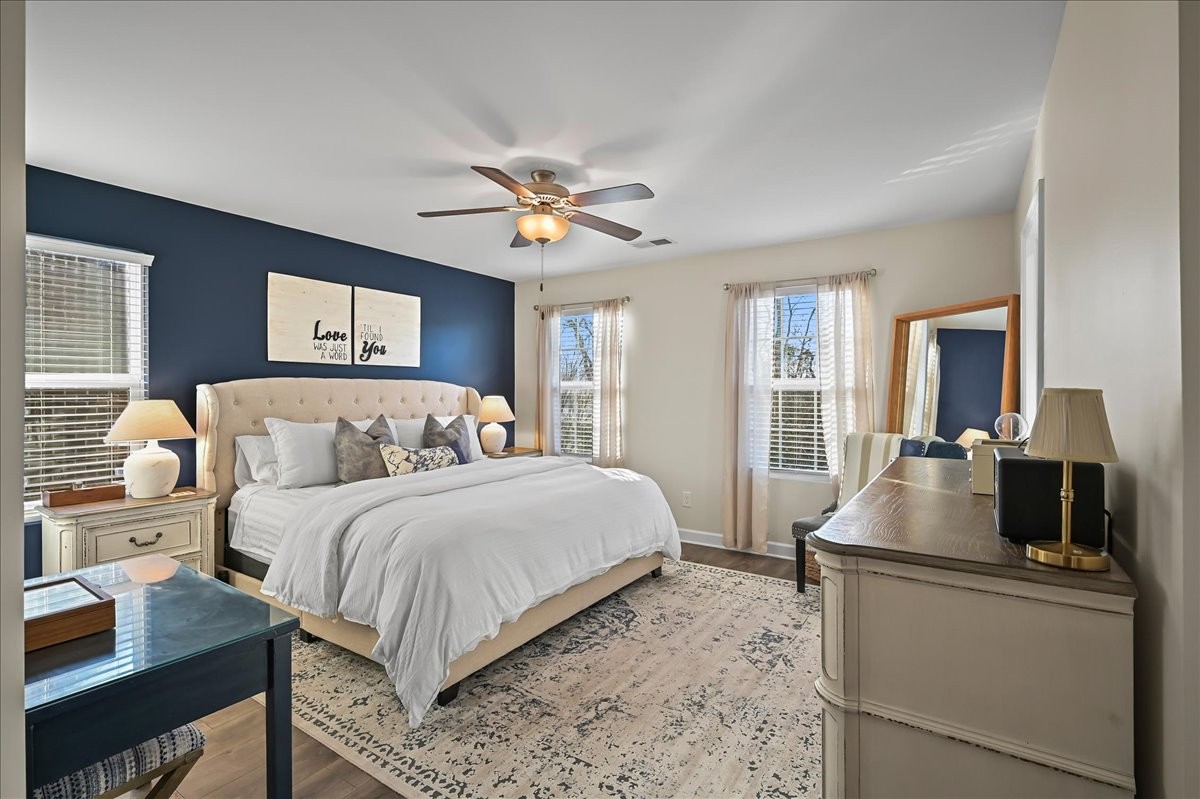 Welcome to this beautifully maintained end-unit townhome in the desirable Waterford Village community. Offering 3 bedrooms and 2.5 bathrooms, this home features a thoughtful layout with a secondary bedroom conveniently located on the main level - perfect for guests, a home office, or flexible living needs. The spacious primary suite contains a stunning en-suite bathroom with a double-bowl vanity and a large walk-in shower. Upstairs, an additional secondary bedroom enjoys its own private bathroom as well.