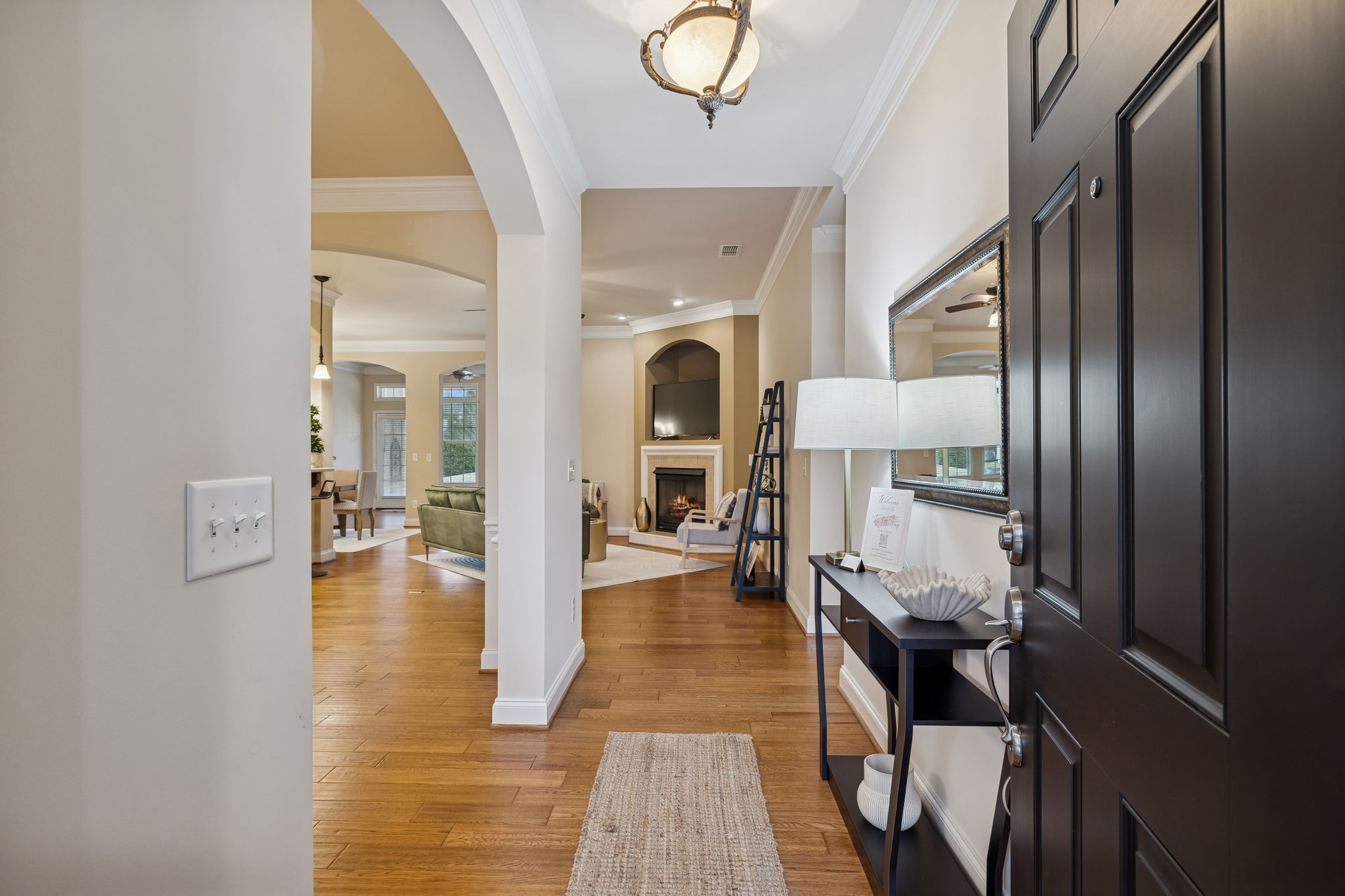 Built by renowned Frank Batson Homes, the detail, spacious rooms and living areas, and abundant storage in this all-brick beauty are extraordinary. With NO STEPS to enter this home and the Primary suite on the main floor, it is very easy to get around. Hand-scraped hardwoods and 10 foot ceilings are featured throughout the open first floor, along with an eat-in kitchen, with like-new stainless appliances and a large pantry. Just off the kitchen is a formal dining room, a living room with gas fireplace, and a family room with plenty of natural light. A short hallway leads to the fantastic Primary Suite, with tray ceilings, gorgeous natural light, and two closets. The Primary bathroom boasts two separate vanities, a large corner tub, and a walk-in shower with a seat. Then in the front of the home is a perfect guest bedroom with a full bath. Head upstairs to the expansive bonus room, which has a pre-wired walk-in media closet. The second floor also has a third bedroom with walk-in closet and a full bath, and a large walk-in storage area, crucial for keeping your home tidy! OUTSIDE, you will appreciate the buried power lines, like-new aggregate driveway and sidewalk. There are several upscale features, such as a natural gas lantern, an irrigation system, and custom concrete curbing around the flower beds. The covered back porch overlooks a common area, giving the owners plenty of space. Bridgewater is a lovely community with walking trails, a playground, and a gorgeous swimming pool! This location on the Davidson/Wilson county line is close to everything! You can get to Summit Hospital in 10 minutes (4 miles,) Seven Points boat ramp and campground on Percy Priest lake in 7 minutes, Providence shopping center in Mount Juliet in 10 minutes, and downtown Nashville in just 20 minutes. This elegant condo feels just like a single family home with much LOWER PROPERTY TAXES! HOA fee includes lawn maintenance, exterior (ROOF) maintenance, and insurance.
