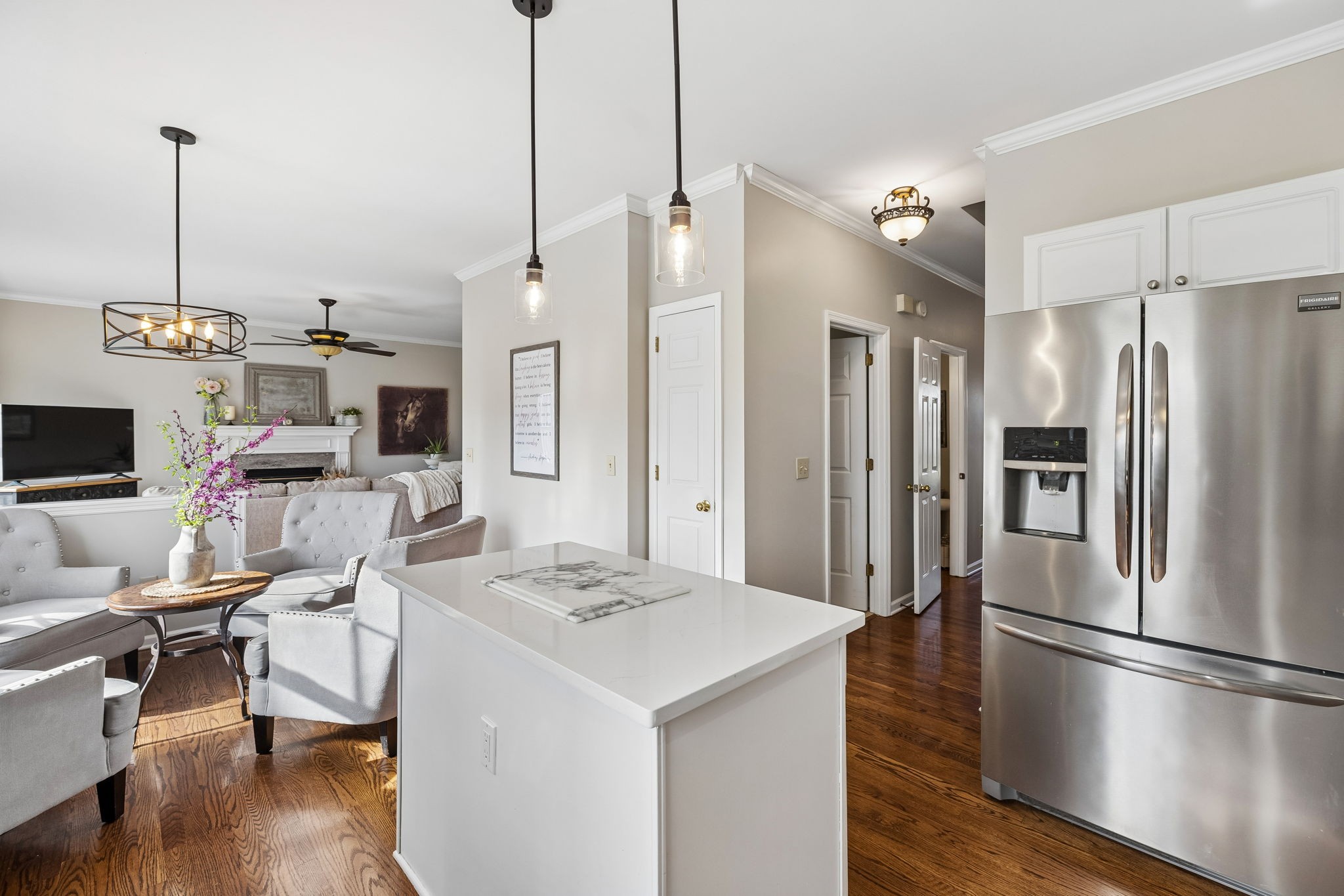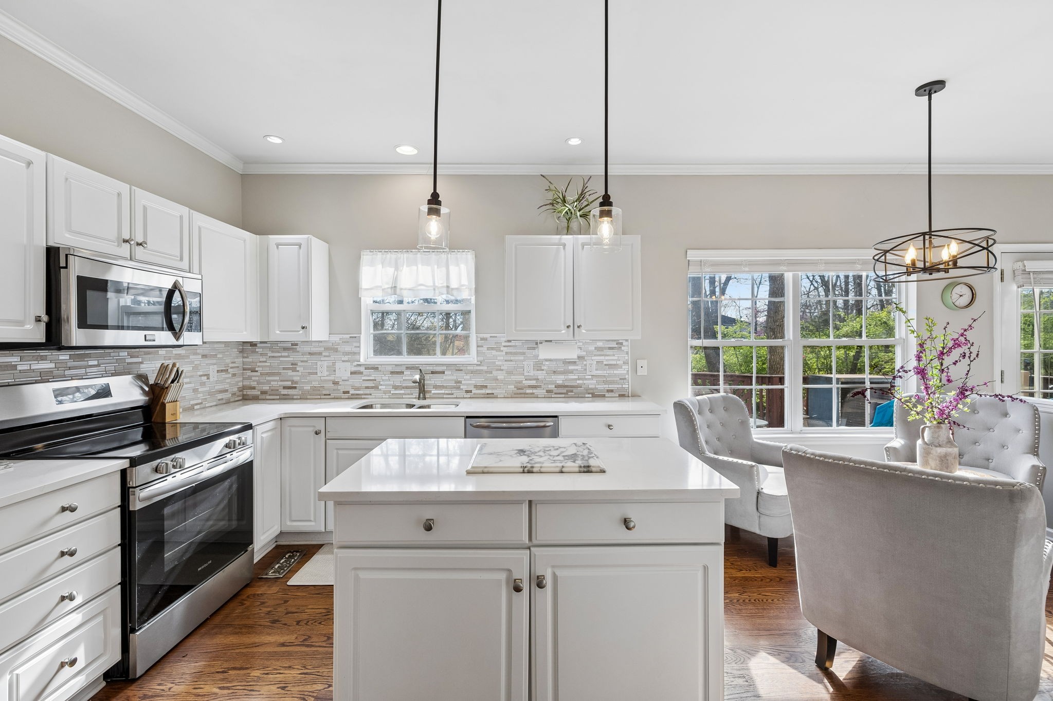 Step inside to hardwood floors and a bright, inviting layout designed for both everyday living and entertaining. The fully updated kitchen features quartz countertops, stainless steel appliances, and a seamless flow into the main living areas—perfect for hosting or staying connected.