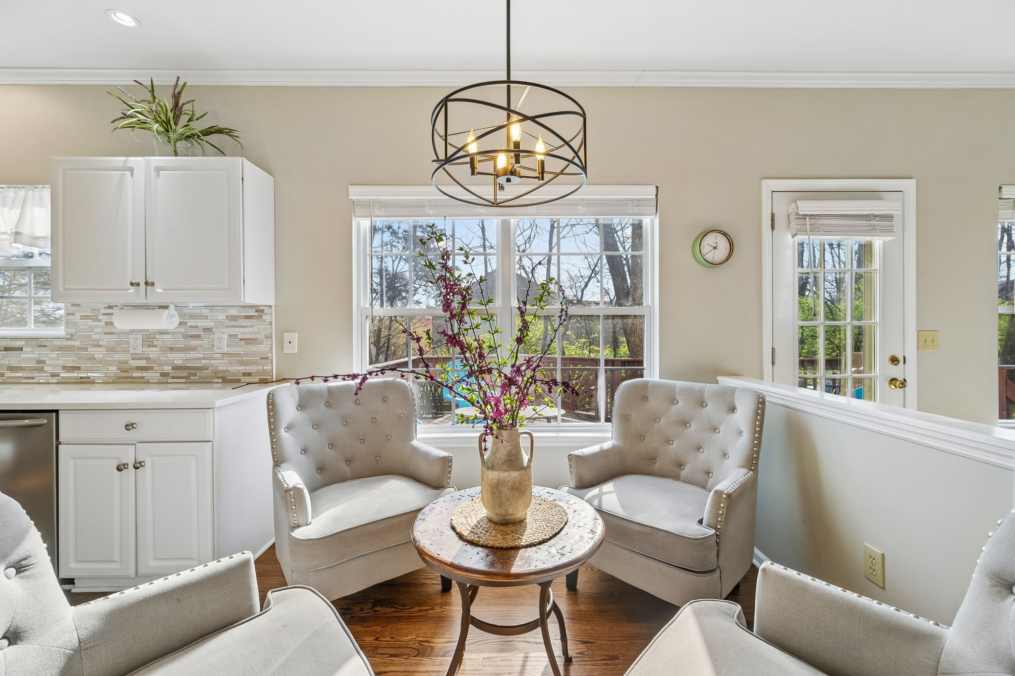 Out back, enjoy an expansive deck overlooking a peaceful, wooded backyard—ideal for relaxing evenings or weekend gatherings with added privacy.