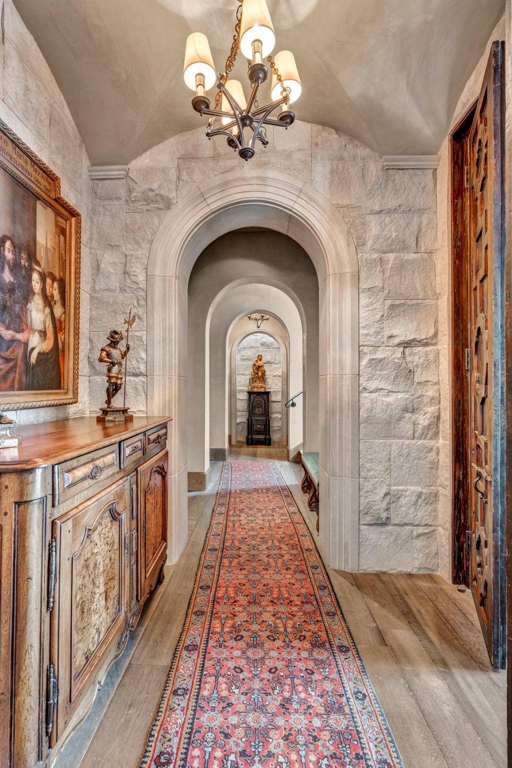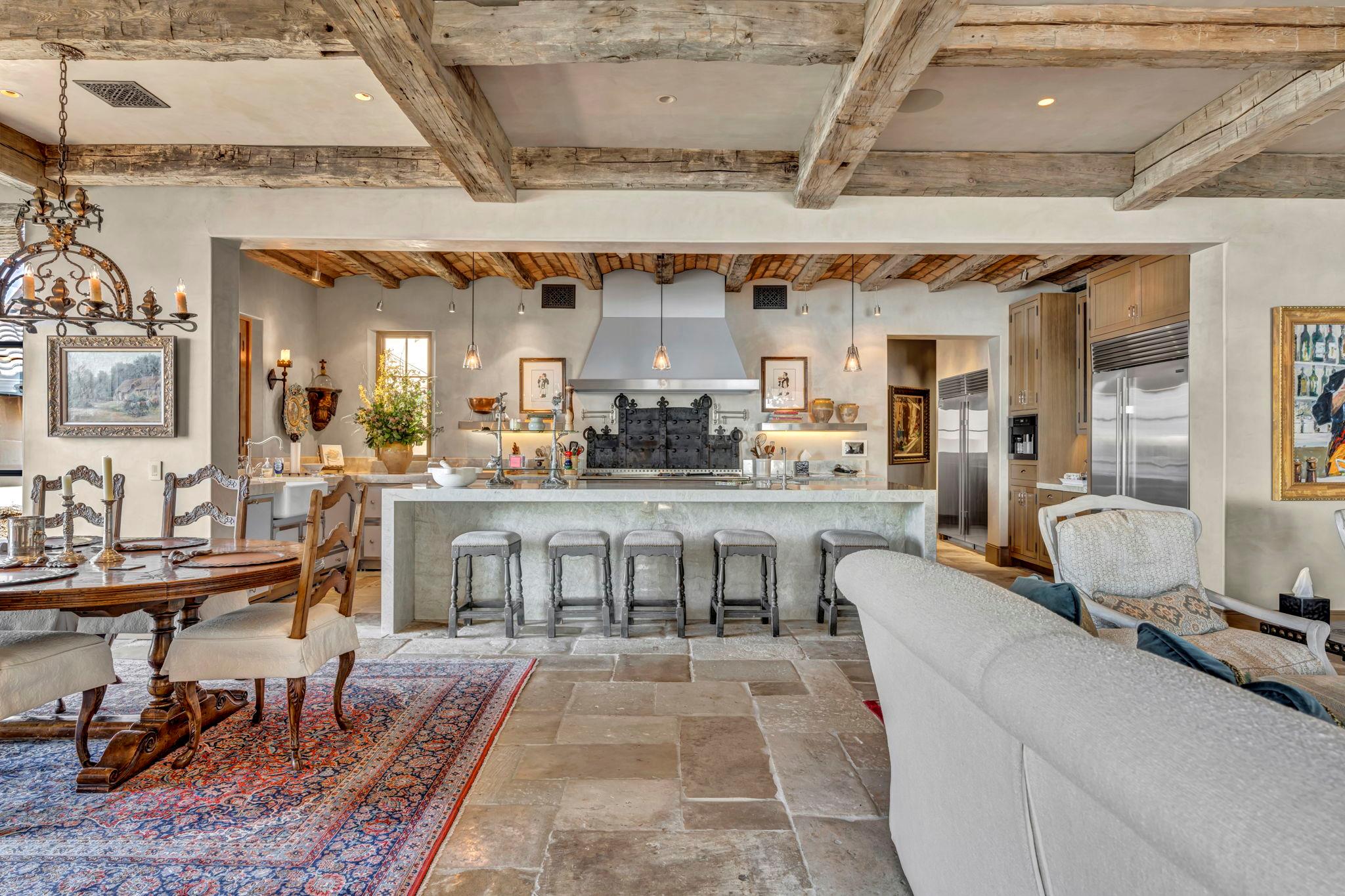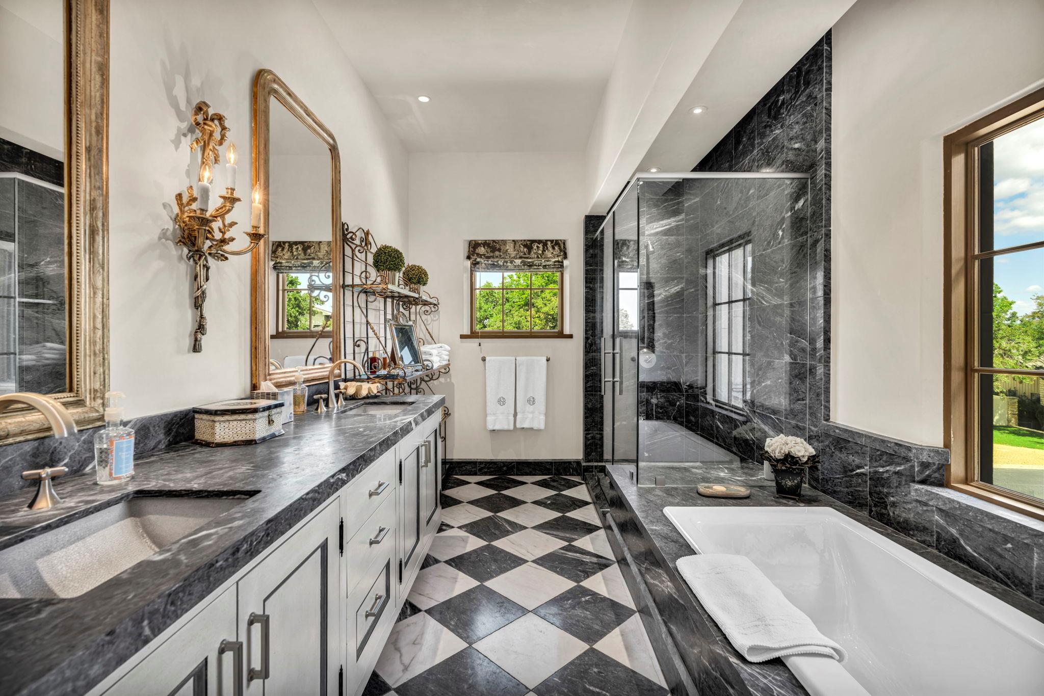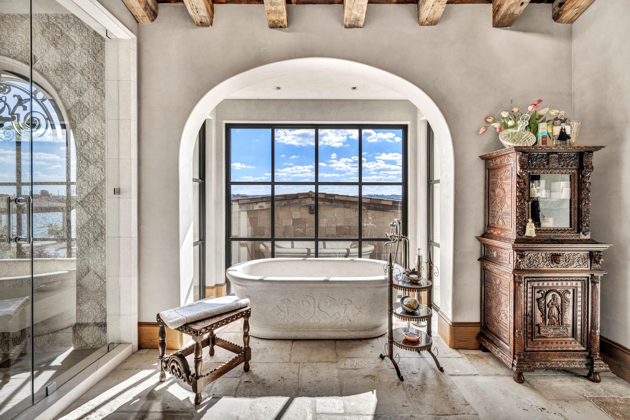 Grandeur and simplicity describe this Spanish Colonial-style lake home in the heart of the Texas Hill Country. Perfectly situated on two lots in the middle of the coveted Lighthouse Drive peninsula in Horseshoe Bay, this waterfront estate boasts a lake view in every direction. Exterior walls are constructed of solid, hand-cut limestone blocks, creating a majestic presence that is carried into the great rooms of the home. Timeless luxury exudes from the elegant key-stoned archways which lead through the interior and exterior living spaces, blending the beauty of the Central Texas landscape into every room. The classic steel and glass doors and windows enhance the indoor/outdoor feel of this spectacular lakefront estate. Venetian plaster walls and reclaimed wood ceiling beams add a rustic sophistication. A suite of antique carved 17th century doors, reclaimed ceiling beams, antique French limestone floors and French Oakwood floors are a few of the bespoke architectural elements that complete the masterpiece of 419 Lighthouse Drive.