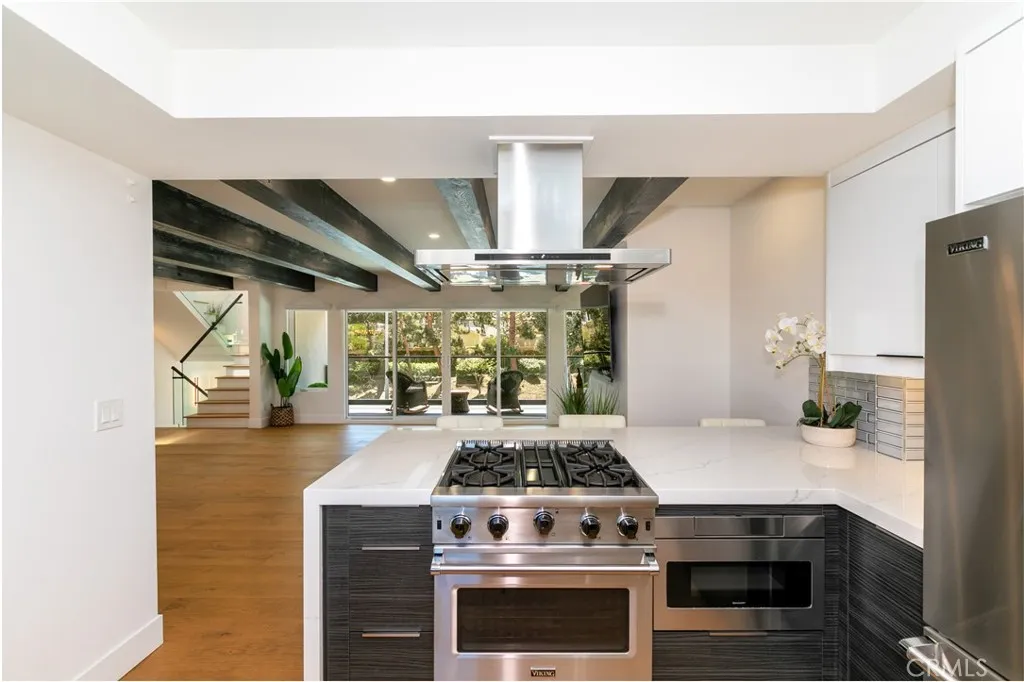 Located in Huntington Beach, Surf City! Step into timeless design and effortless luxury in this stunning residence where contemporary sophistication seamlessly elevates mid-century vibes. From the moment you arrive, double entry doors welcome you into a light-filled haven, thoughtfully curated for both relaxation and entertaining. The chefs kitchen is a culinary dreamfeaturing white Euro cabinetry, Quartz counter tops, all Viking appliances, built-in wine cooler, and sleek lines that echo the homes architectural pedigree. Exposed beamed ceilings and natural light pouring through skylights and expansive windows create an airy, open ambiance throughout. Retreat to the expansive 400 sq/ft primary suite, where a private balcony invites coastal breezes and sun-filled mornings. Indulge in the spa-inspired ensuite bath with marble flooring, boasting a luxurious rain shower, deep soaker tub, dual vanity with abalone shell backsplash and backlit vanity mirror, and a custom-designed wardrobe closet fit for a king. This exceptional home features three bedrooms and four baths and was completely renovated with attention to detail in 2023. Spanning 2,246 square feet, an open floor plan, wood floors, a custom glass staircase, and designer finishes. Enjoy indoor-outdoor living at its finest with tranquil outdoor seating areas, a zero-scape patio for effortless maintenance, and a refreshing plunge pool and spa complete with a natural rock fountain. Minutes from Surfing, Bike riding, Paddle boarding, Bolsa Chica Wetlands trail & dog-friendly beaches. This residence offers the perfect blend o