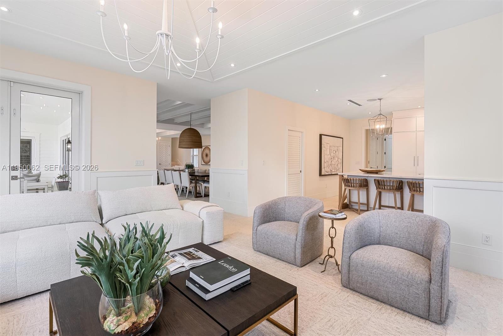 Experience the ultimate in coastal luxury and sophistication in this brand-new magnificent bayfront estate designed to impress at every turn. Set on over 2 acres of direct bayfront property with an idyllic rare white sandy private beach in prestigious Lower Matecumbe, this 7-bedroom, 7-bathroom residence spans nearly 6,000 square feet of immaculate living space. Two completely separate guest wings each with 3 bedroom suites are perfect for multi-family enjoyment or hosting in absolute comfort. From the grand entry to the soaring ceilings and panoramic glass, no detail was overlooked in crafting this Keys masterpiece. A private elevator glides between entry level and first floor, while refined finishes, bespoke furnishings, and thoughtful layouts offer seamless elegance throughout. The expansive great room flows into a chef's kitchen, perfect for both grand entertaining and intimate gatherings. Outdoors, a sprawling pool deck overlooks the turquoise waters. The private dock with 20,000 lb boat lift invites boating adventures while lush tropical landscaping ensures total seclusion. Whether enjoying the sunset from your covered terrace or hosting under the stars, this home is a sanctuary of sophistication. Weekly rentals are allowed with a Vacation Rental permit. Homes of this caliber are rare. Schedule your private showing and experience the exclusivity of Keys living redefined. Detailed 3D and Floor plan included to appreciate the masterdesign layout.