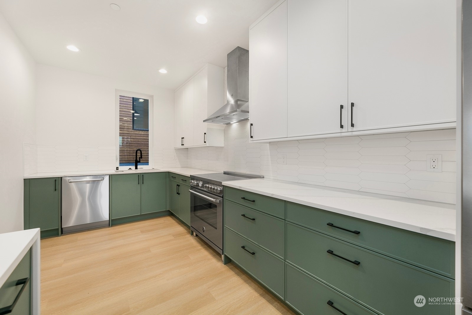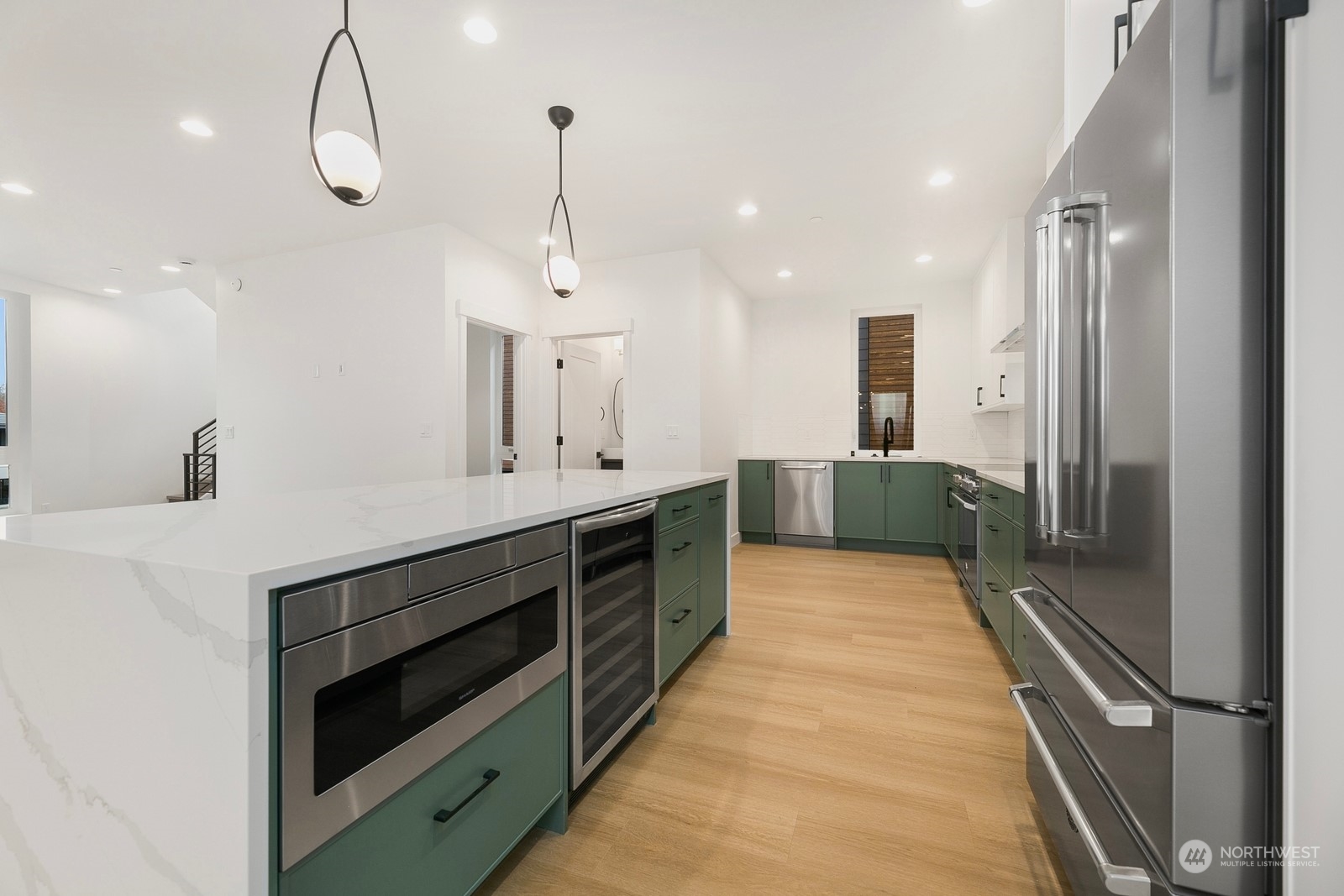 Ashworth Homes unveils this new 10-home modern community in Kirkland’s sought-after Moss Bay neighborhood. 113E is a stunning 3-bedroom + flex/office end unit with a perfect blend of high style and smart design. The open-concept island kitchen, featuring Bertazzoni appliances, is ideal for culinary enthusiasts. The entry level has a half bath, flex space plus a den, perfect for working from home. Your spacious primary bedroom is a true retreat with an en suite bath and walk-in closet. With efficient mini-split systems throughout, a private 2-car EV-ready garage, and steps from waterfront parks and downtown Kirkland’s vibrant scene, this home offers modern living in an unbeatable location.
