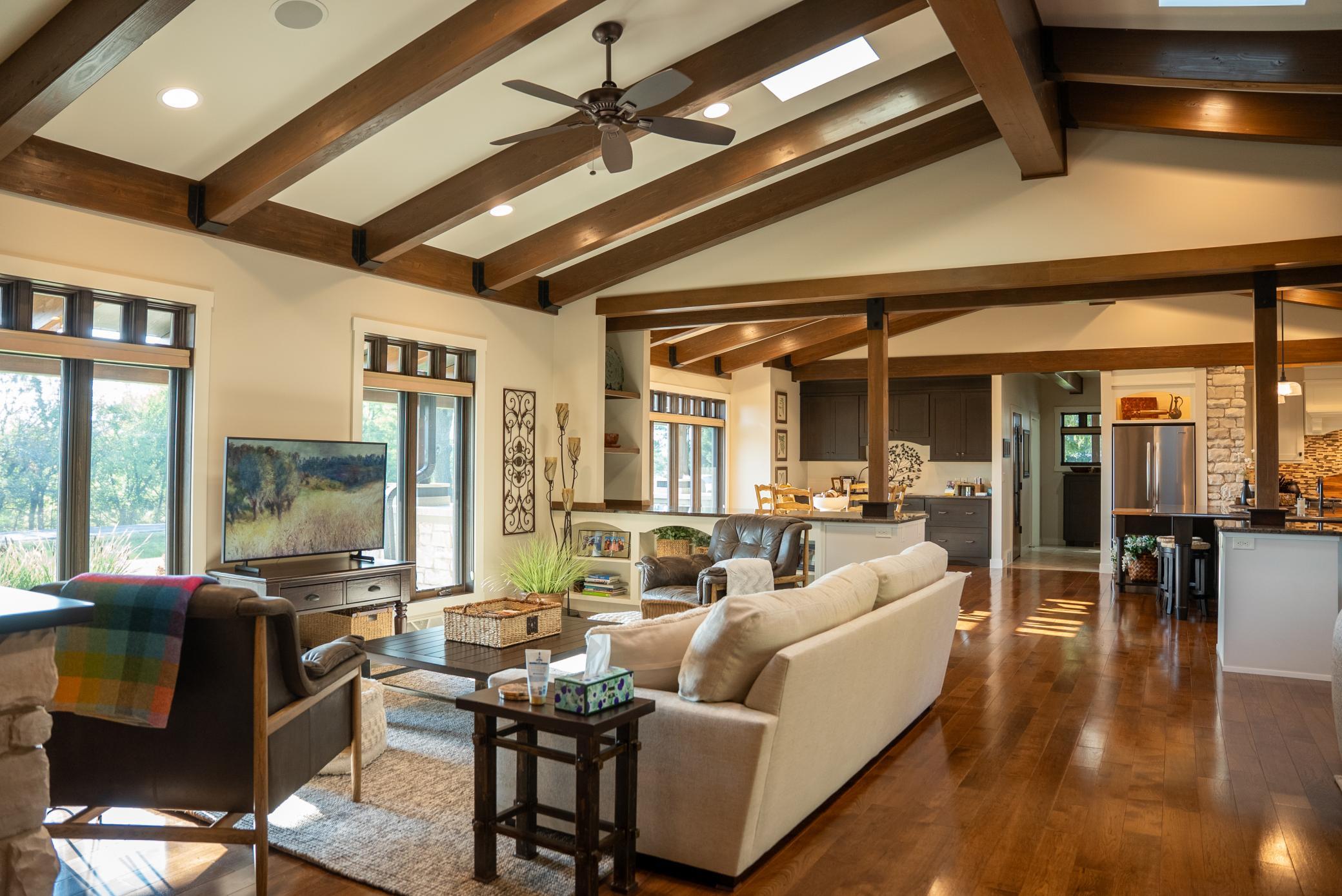 Set along the Apple Blossom Scenic Byway in Southeast Winona County you will find this 2011 custom-built walkout rambler masterpiece. Masterpiece is the best word to describe the home with the design features and location. The homes designer is the seller’s son and the attention to design and the detailed craftsmanship of the builder shows when you experience this home. The wooden beam system extends from inside the house to the outside of the house. This place catches your eye when you drive by.