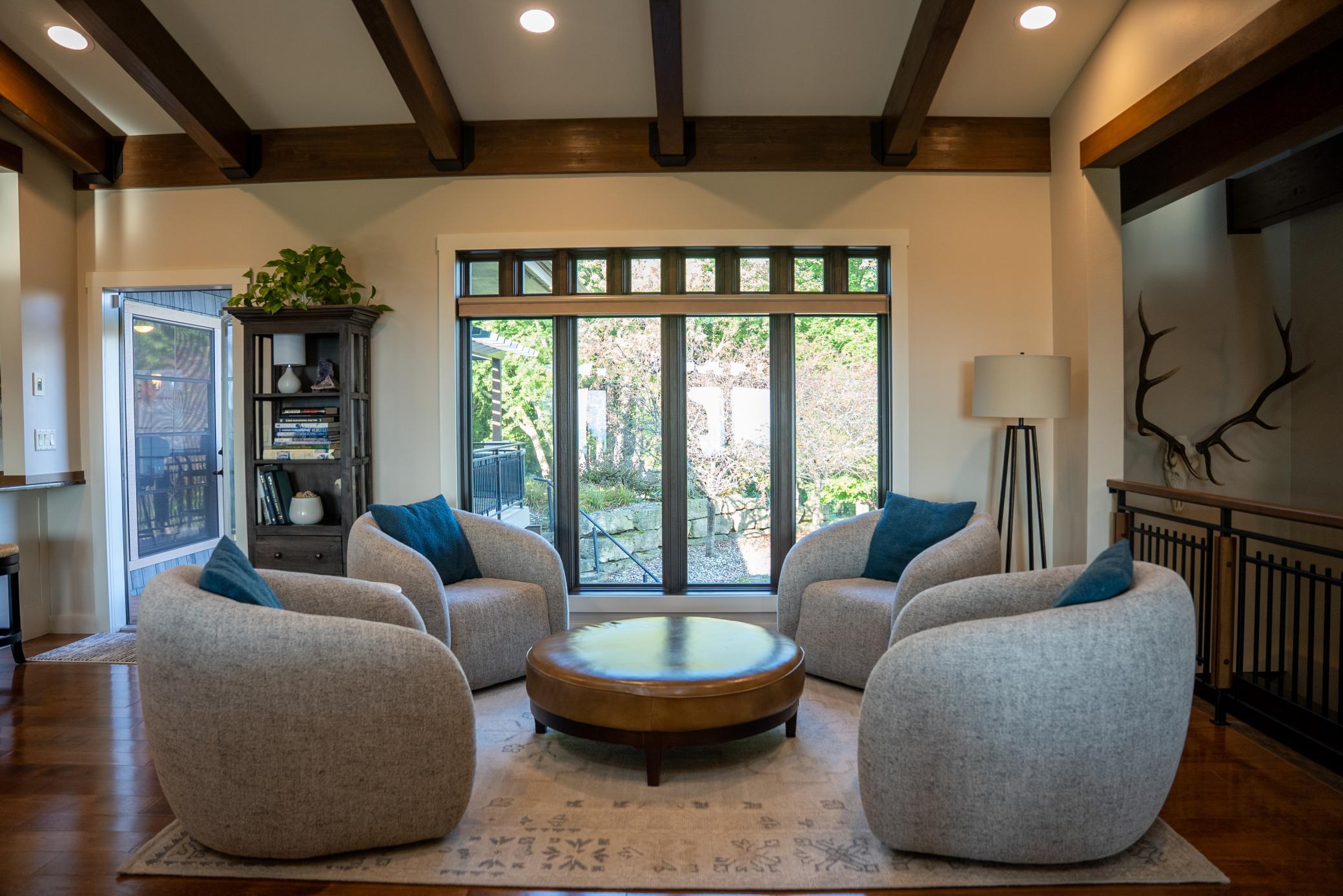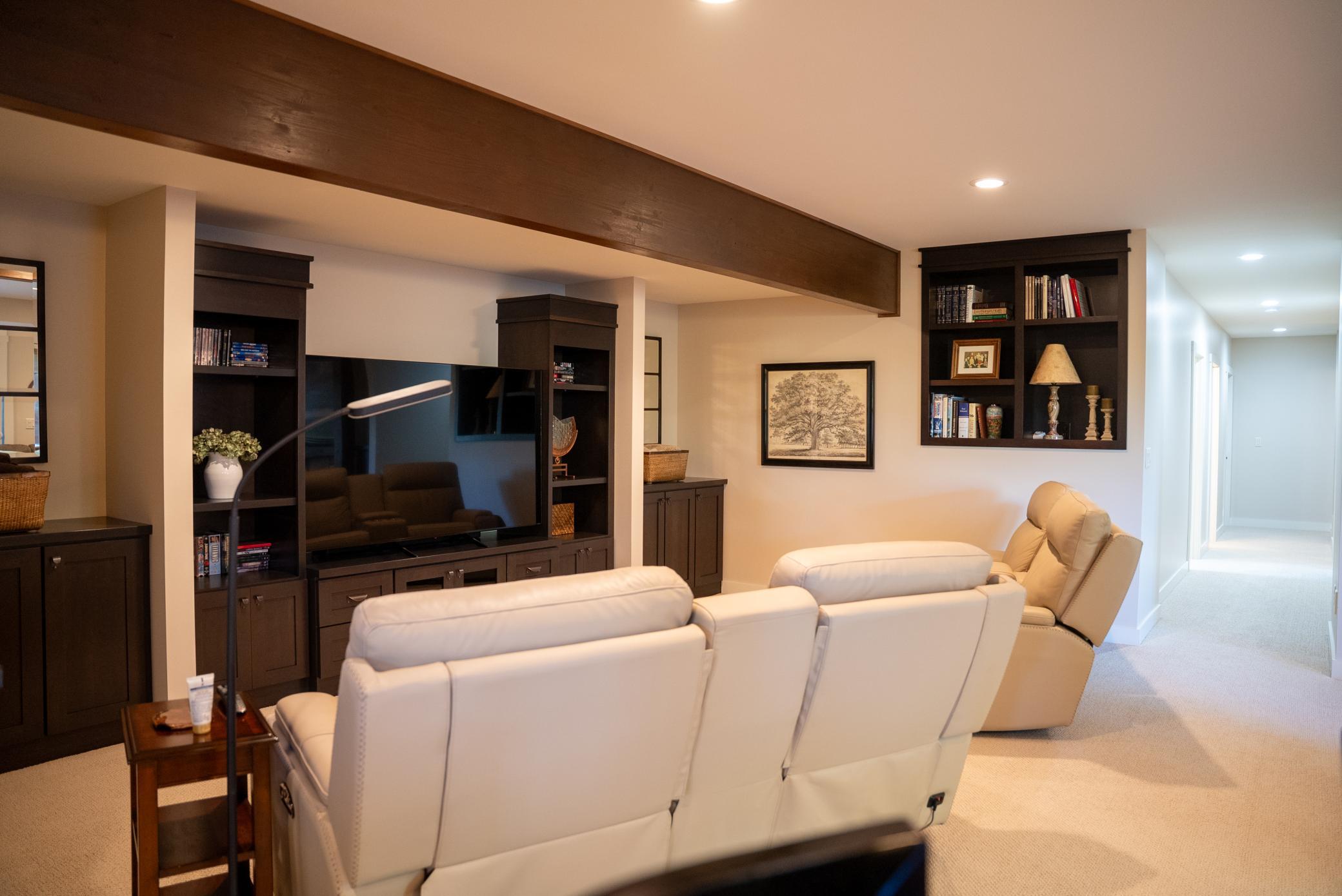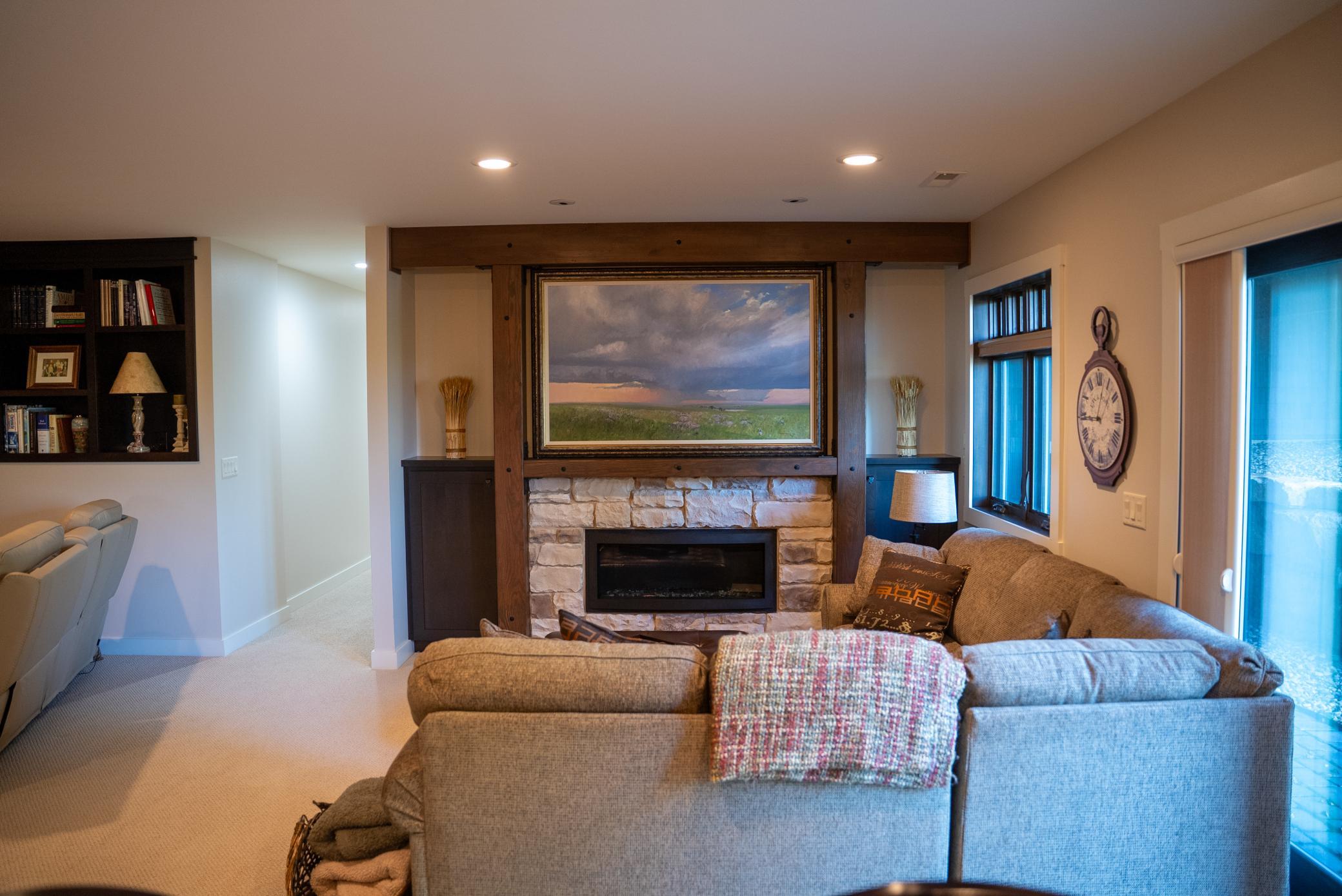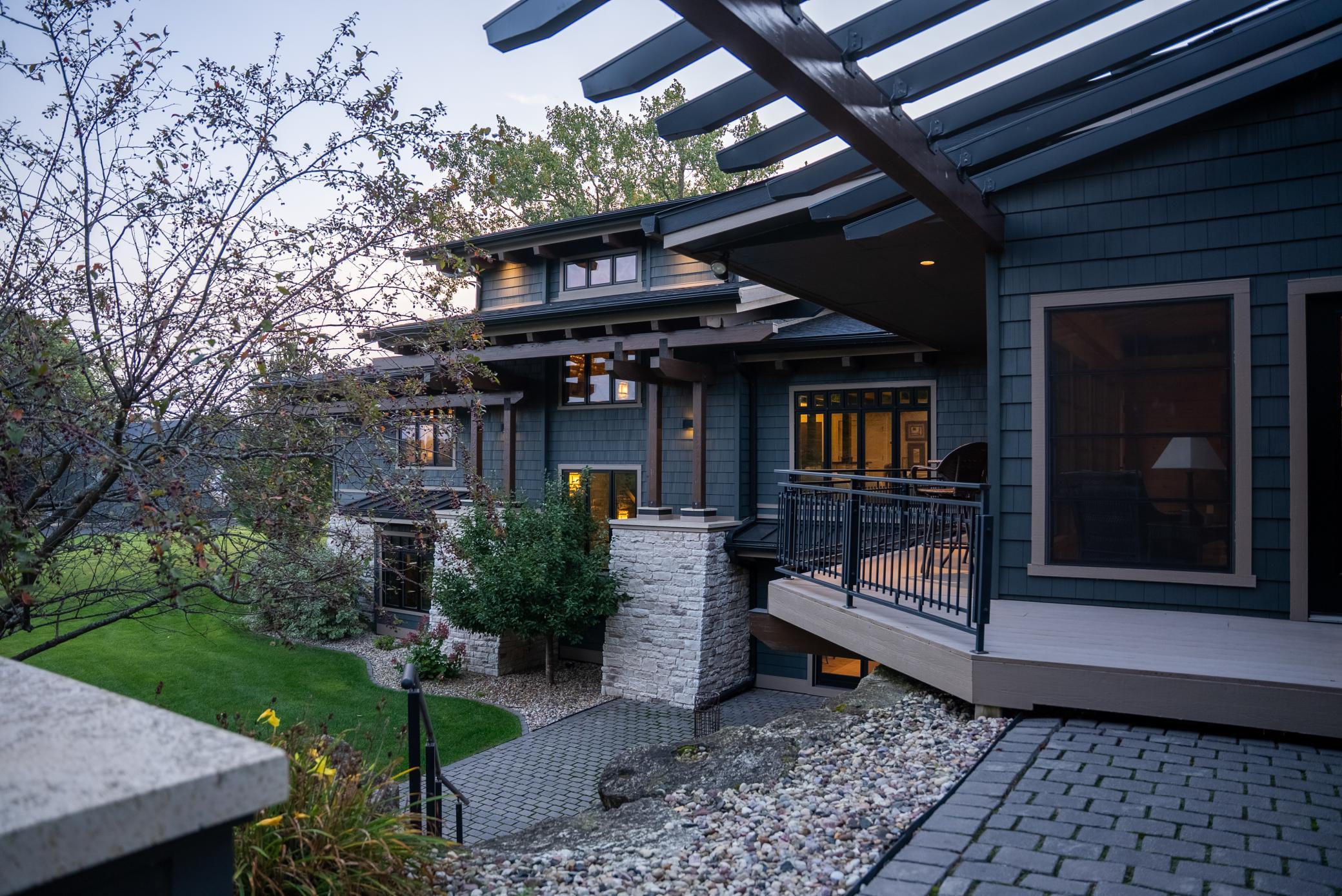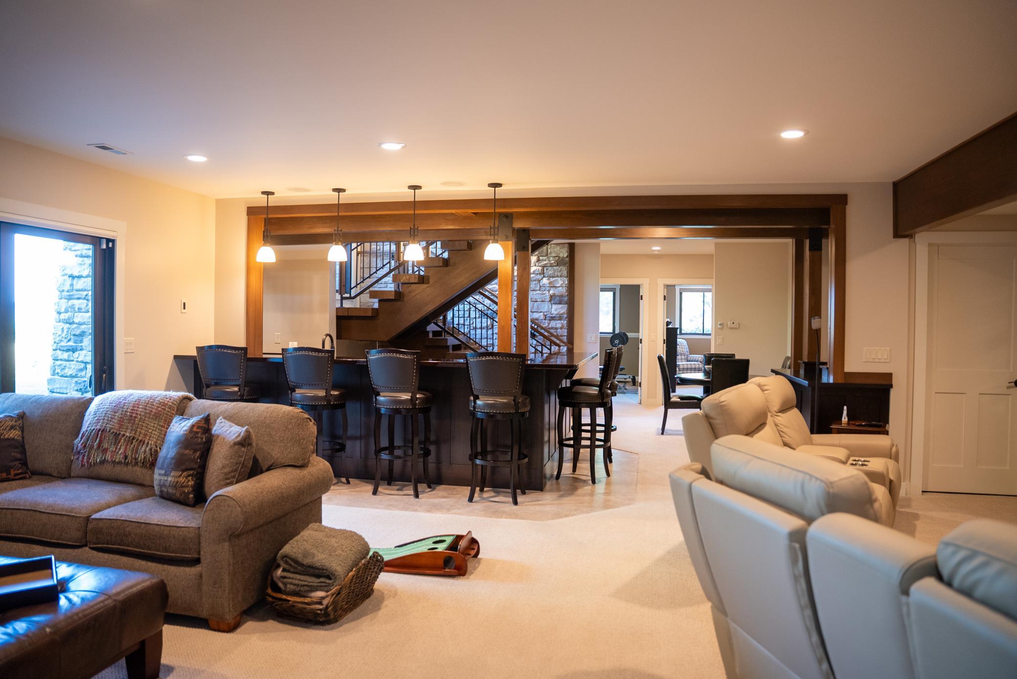 The lower level is another great space for entertaining featuring a stunning bar with granite countertops, icemaker, large living room with gas insert. You will also find two full bathrooms with one having a steam shower. The home has no shortage of places to entertain and relax on the main level you can walk out the back to your 3-season porch with Trex decking, on the lower level you can entertain on the paver patio. The entire home is professionally landscaped. In the front yard you will find a very large circle paver patio with a large fire pit, built for evening bonfires and enjoying the stunning views. The home features a large 3 car garage with 2 floor drain and access to the main and lower levels of the home, the home features zero entry entrance from outside.