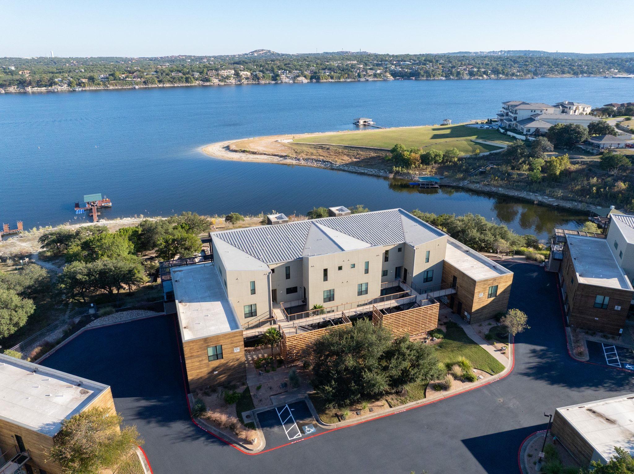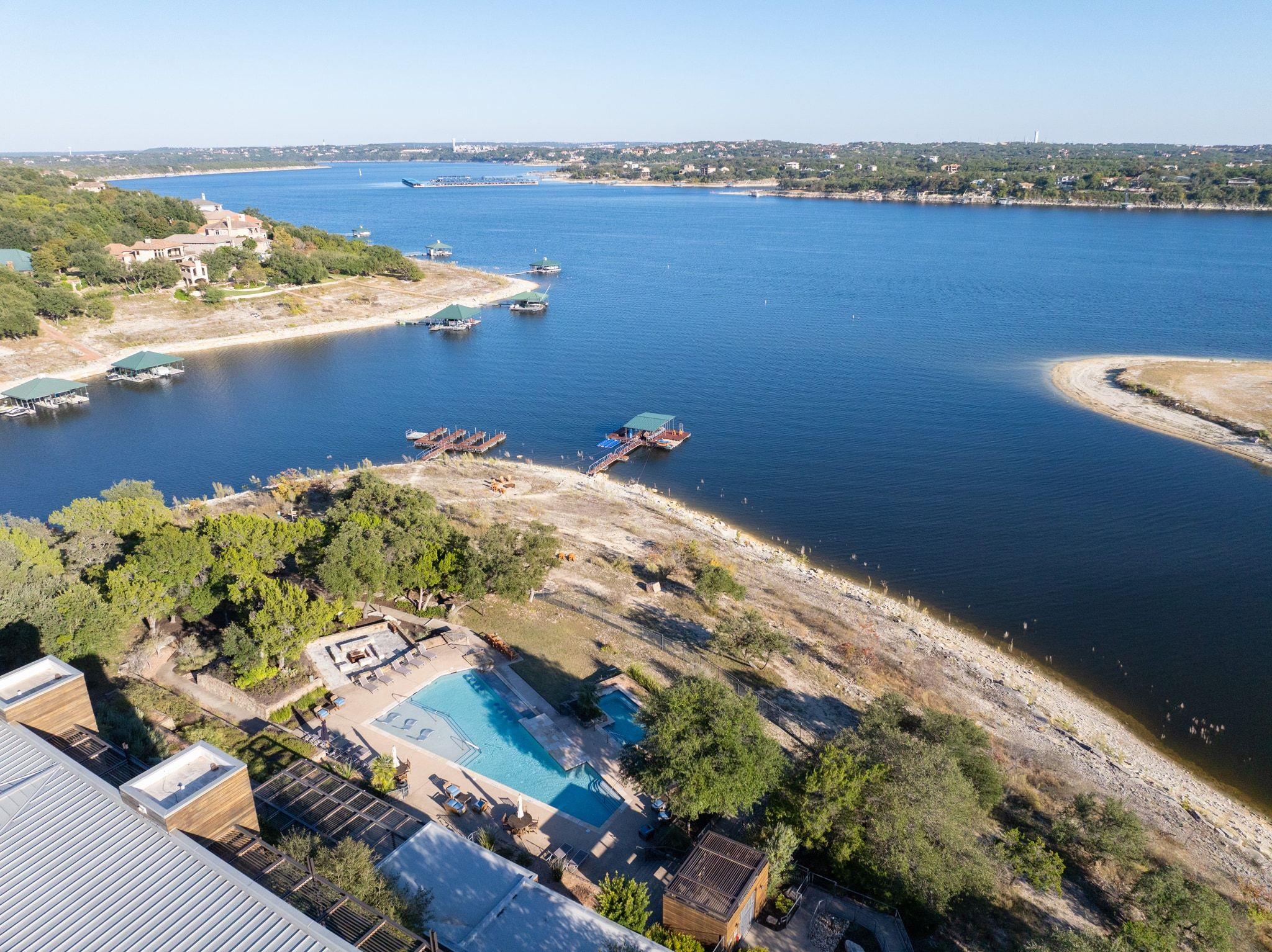 Welcome to your dream lakefront escape at the prestigious Waterstone on Lake Travis, where modern luxury meets the serenity of nature! This impeccable condo w/2-car garage offers breathtaking, one-of-a-kind views of Lake Travis & the stunning community pool, creating a captivating backdrop. Step inside to discover an open-concept plan, featuring expansive floor-to-ceiling windows, high ceilings, crisp white walls, & gorgeous hardwood flooring that flows effortlessly throughout the main living spaces. The chef’s kitchen features sleek black granite countertops, a farmhouse sink, breakfast bar for casual dining, ample storage, & premier stainless appliances. Retreat to your lavish second-floor primary suite, where you will be greeted by sunrise views of the lake each morning, & enjoy the generous walk-in closet, automatic shades for privacy, and spa-like bathroom. The thoughtfully designed floor plan also includes two inviting guest bedrooms—one on each floor—ensuring comfort for family & friends. Relax on your private covered balcony, where you can sip your morning coffee or enjoy a glass of wine & mesmerizing twilight sky over the lake. Mark your calendar for the phenomenal annual 4th of July fireworks show—a dazzling display right from your own backyard! As a resident of Waterstone, you’ll indulge in world-class lakefront amenities including an infinity pool, oversized spa, waterfront patio & commercial-grade outdoor kitchen, scenic walking trails, fishing & lounging areas, fire pits, and easy access to day docks and jet ski slips. The unbeatable location offers a plethora of nearby attractions, including Point Venture Golf Club, Captain Pete’s Boat House, Lago Vista Brewery, Lucky Rabbit Restaurant, & the breathtaking Balcones Canyonland National Forest. Embrace this rare opportunity to experience full-time lake living or a perfect lock-and-leave vacation home on the water. This condo ALWAYS has a deep-water lake view. New HVAC installed April 2025.