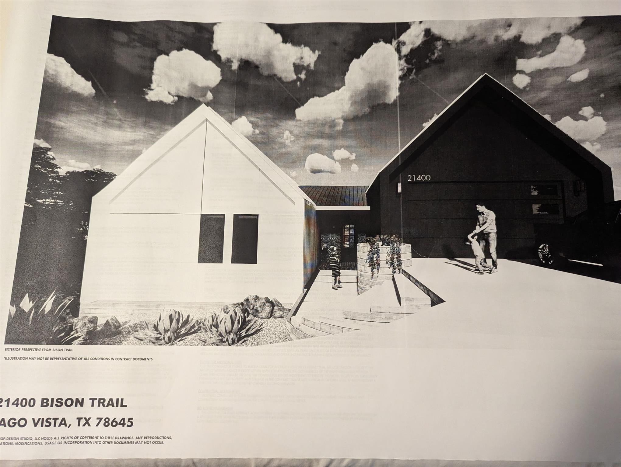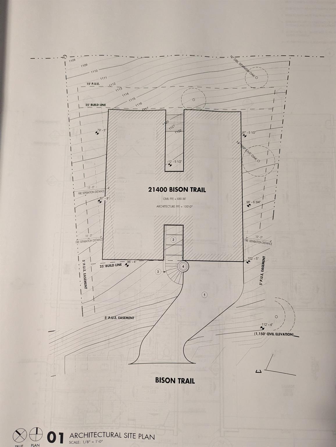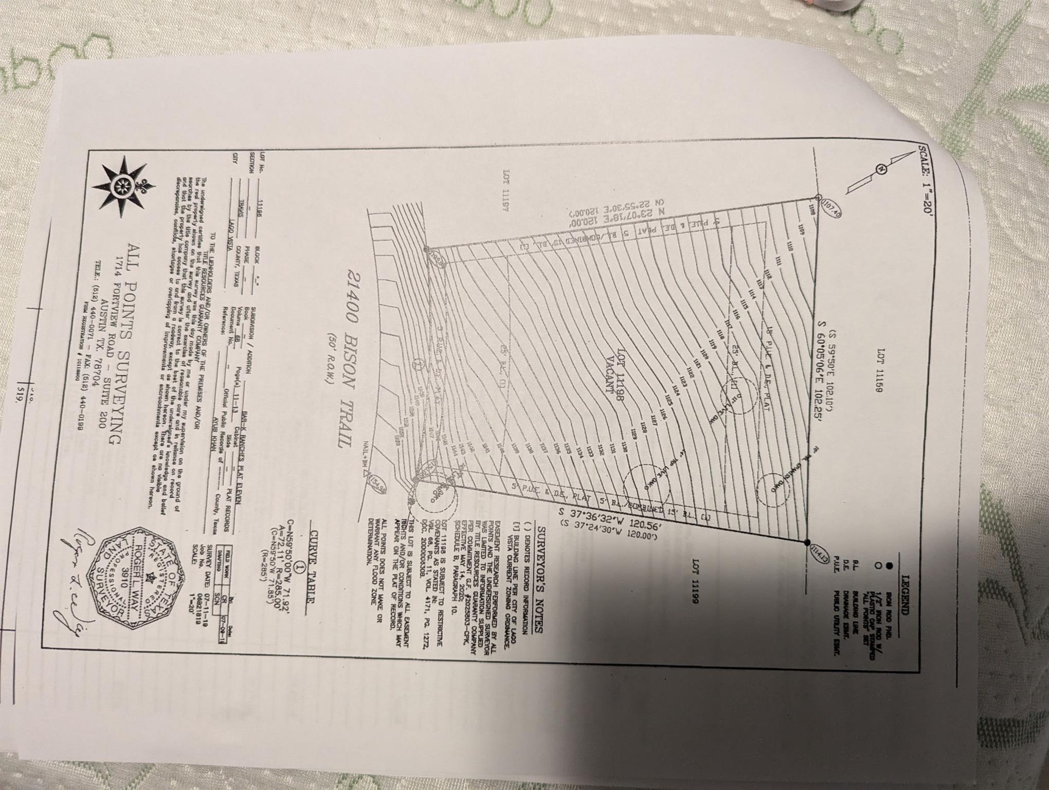 From FM 1431 heading West, Turn RIGHT onto Bison Trl. Stay to the left up the hill. The lot is on the LEFT just past the two gorgeous modern houses.