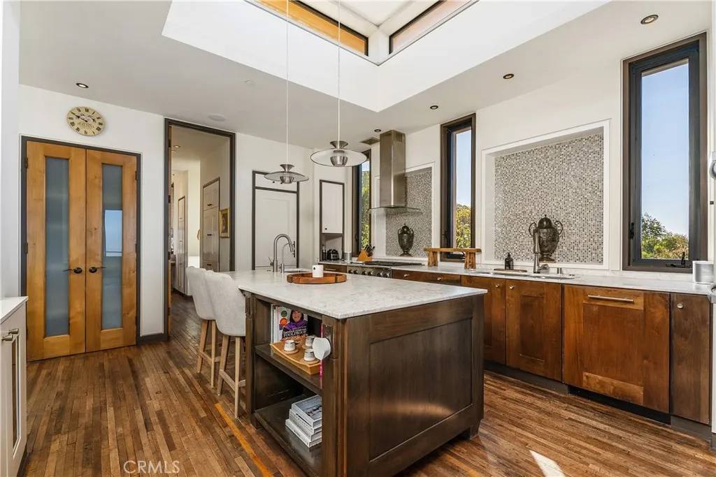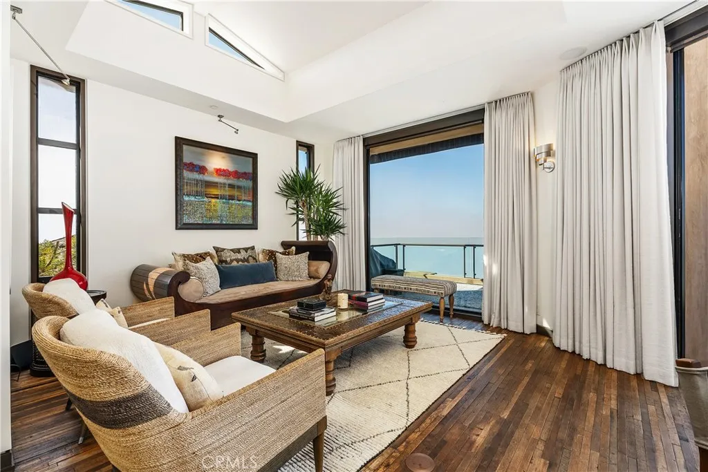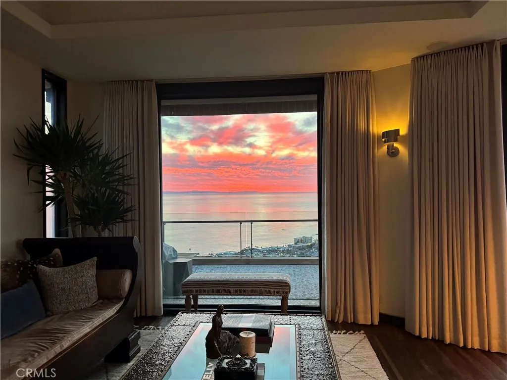 Dramatic Ocean View Architectural Masterpiece in Laguna Beach Perched in one of Laguna Beachs most breathtaking settings, this four-bedroom, three-and-a-half-bath architecturally rich residence offers endless Pacific Ocean views, from the shimmering waters by day to the dazzling coastal lights by night. Designed to maximize the panoramic scenery, retractable glass doors seamlessly merge indoor and outdoor living, inviting in the ocean breeze and framing the stunning vistas. Spanning 4,951 square feet on a 6,500 square foot lot, this custom contemporary masterpiece is a sanctuary of style and sophistication. The open living spaces flow effortlessly to a spacious ocean-view terrace and a rare Laguna Hillside Garden, where outdoor seating, lush lawns, mature olive trees, and a vibrant flower garden create a serene retreat. The chef-inspired kitchen is designed for function and beauty, offering top-tier appliances and stunning ocean views. A separate dining area provides a picturesque setting with views of the coastline and garden. The living space is designed for grand entertaining, enhanced by soaring ceilings, architectural art lighting, and generous gallery-like wall space. A sculptural interior staircase and 100-year-old patinated maple flooring add to the homes distinctive character. The temperature-controlled wine room, capable of storing up to 700 bottles, provides ample space for wine enthusiasts. The luxurious master suite features a private ocean-view balcony, spa-like bath, and his-and-her dressing areas. Two additional en suite guest rooms, both with ocean views, p