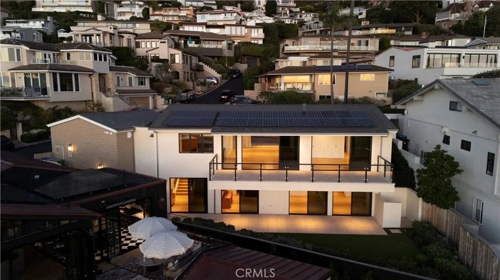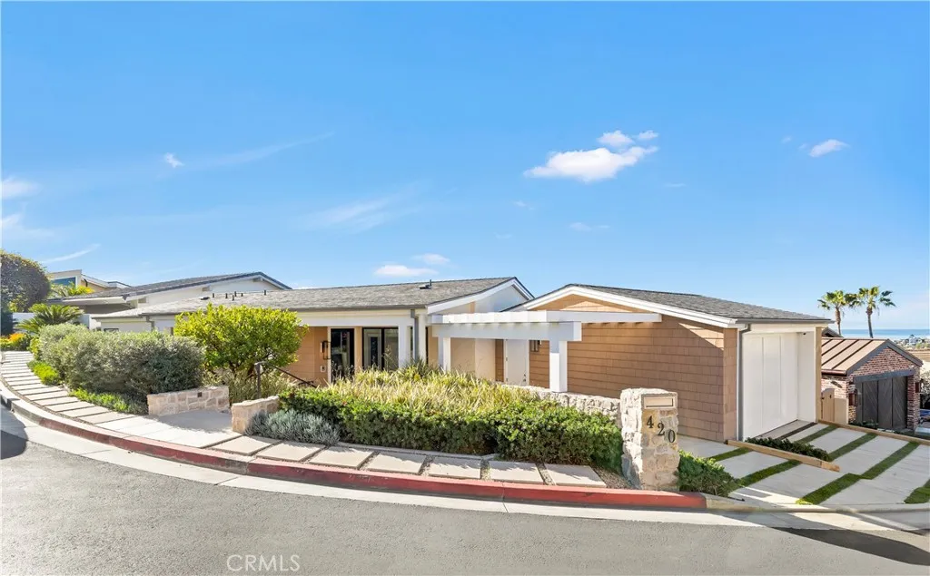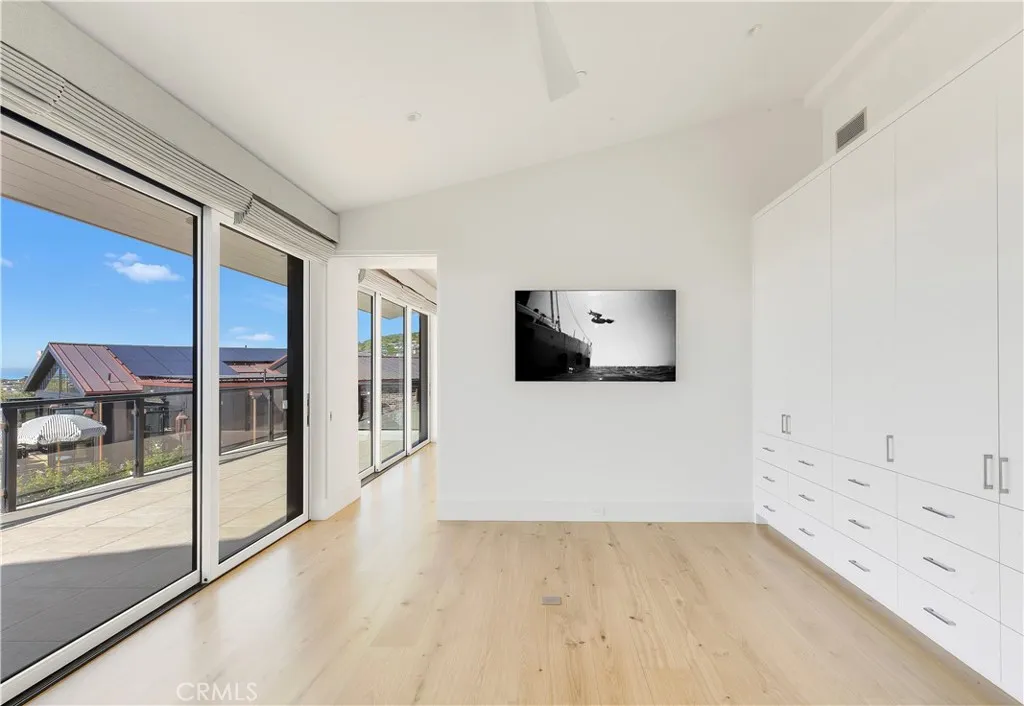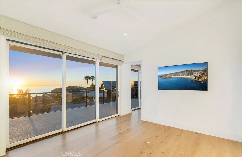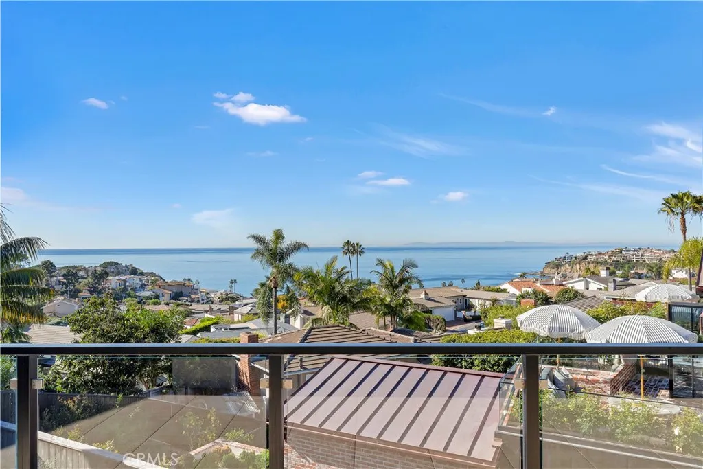 420 Emerald Bay | Emerald Bay, Laguna Beach | Built new from the ground up in 2022, 420 Emerald Bay is a refined coastal residence designed by Laidlaw Schultz Architects and meticulously constructed by Tony Valentine Construction. The home pairs contemporary architecture with warm, livable finishes, offering a turnkey opportunity within one of Laguna Beachs most coveted gated communities. The residence features 4 bedrooms, 4 full bathrooms, and 1 half bath, anchored by a main-level primary suite and an open great room concept that seamlessly blends indoor and outdoor living. Walls of Fleetwood floor-to-ceiling glass span the great room and primary suite, opening to a wide, continuous deck ideal for entertaining, dining, and taking in direct panoramic Catalina Island and sunset views. The primary suite functions as a private retreat, complete with a walk-in closet complemented by additional custom built-ins, and a spa-inspired bath featuring a walk-in shower and soaking tub. Throughout the home, white oak plank flooring provides warmth and continuity, reinforcing the homes clean architectural lines. The kitchen is thoughtfully designed around a generous island and equipped with Thermador stainless steel appliances, integrating effortlessly into the great room for both everyday living and elevated entertaining. Modern living is enhanced by a Savant whole-home automation system, managing audio/visual, lighting, security cameras, and motorized shades. Additional features include energy-efficient solar power, a whole-house reverse osmosis water filtration system, and a private e