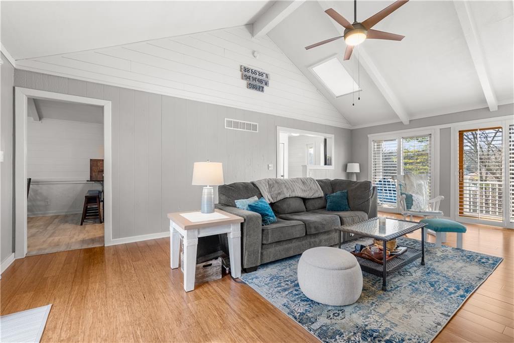 Come live the lake life in this gorgeous 2nd tier home! Enjoy the beautiful view of the lake from the large front porch and relax on the huge, private, treed backyard deck. Plenty of wild life to enjoy around the firepit area. This cozy updated home gives off a lovely beach vibe with adorable ship lap, open floor plan, fireplace, and plenty of storage room in the upstairs attic space. Vaulted ceilings, hardwood and LVP throughout, and the kitchen is a show stopper. Granite, kitchen island and all appliances stay with the home (including the washer and dryer in the oversized laundry room) and a bonus sunroom/office space right off the kitchen with an outstanding view of the backyard. The finished lower level offers a fireplace and full bathroom - could easily be a 4th bedroom area. Roof age 8 years, HVAC 4 years new, hot water tank 3 years new and all suggested foundation work has been completed (see supplements). Completely move-in ready so you can start enjoying the lake life while also enjoying nature in the privacy of your backyard! No dock registered to property but easy access to the lake right down the street.