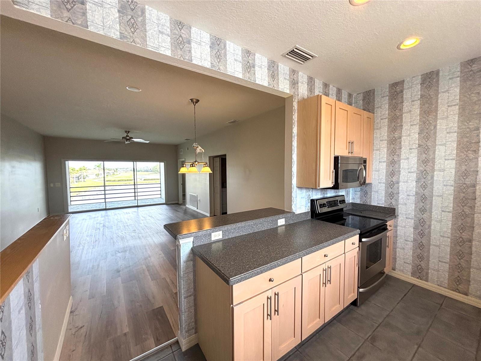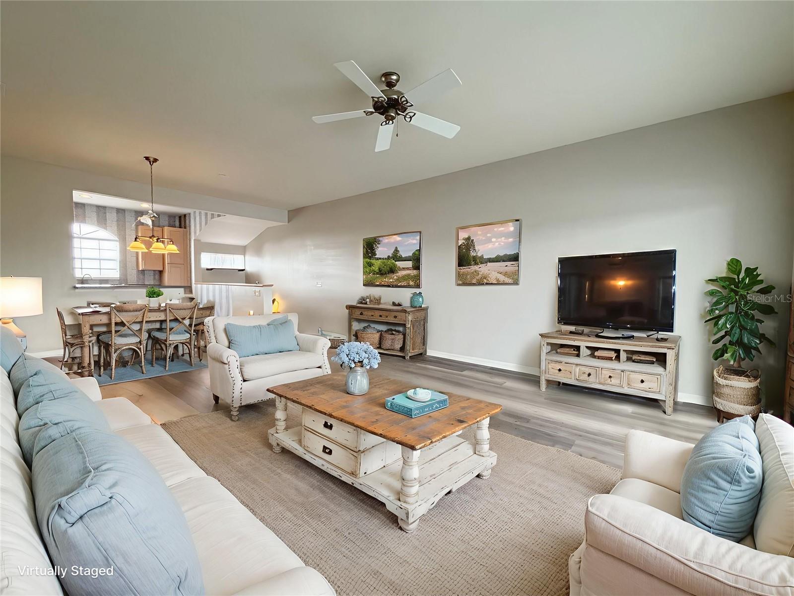 One or more photo(s) has been virtually staged. PRICE IMPROVEMENT!!! This is a must see! NEW LOOK INSIDE! New Luxury Vinyl Flooring and a Fresh Coat of Paint! Great price for a fantastic 2nd floor condo in beautiful Ashton Palms of Lake Ashton, a prestigious 55+ community. This condo has a north/south exposure overlooking the 8th Green and 9th Tee-Box on the East Golf Course. The breathtaking view is enhanced by water and natural preservation areas and it's located within walking distance to the Main Clubhouse in Lake Ashton. The interior is painted in a light neutral color; ready for you to make it your own. The kitchen is adorned with 42" Birch cabinets, Side-by-Side Stainless Steel Refrigerator, SS Dishwasher, Range, Microwave, and Corian countertops. The wine rack is a bonus. The condo has been tastefully designed with combination living and dining room areas and the triple sliders open to a 10x15 screened lanai that is great for entertaining or simply enjoying the relaxing view. The master suite has His and Her walk in closets, a large En-suite Bath with spacious, tiled walk in shower w/glass enclosure, a comfort height vanity with dual sinks and mirrored linen closet. The washer/dryer is conveniently located in the hall leading to the guest bedroom and guest bath. The guest bath has a shower/tub combo and vanity with Corian counter top. A linen closet is in the hallway, too. The single car garage has a storage closet. Lake Ashton has resort style amenities and activities. Residents enjoy the Clubhouse with Grand Ballroom, Movie Theater, Bowling Lane, Card, Craft and Billiard rooms, Fitness Center, Bocce and Shuffleboard courts and Restaurant (Charm City). The Health and Fitness Center with Indoor Heated Pool, Fitness Center, Card, Craft and Billiard Rooms, 1/2 Court Basketball, Indoor Racquetball court and Pickleball courts are enjoyed by residents, too. You are not only purchasing a condo but you are getting an amazing life style as well. Don't delay, tour today and enjoy winter 2024/25 in paradise.