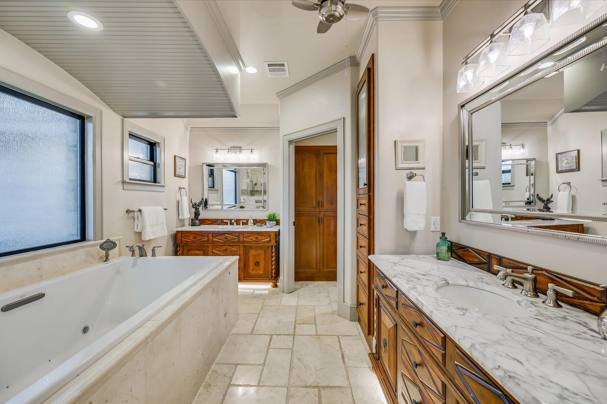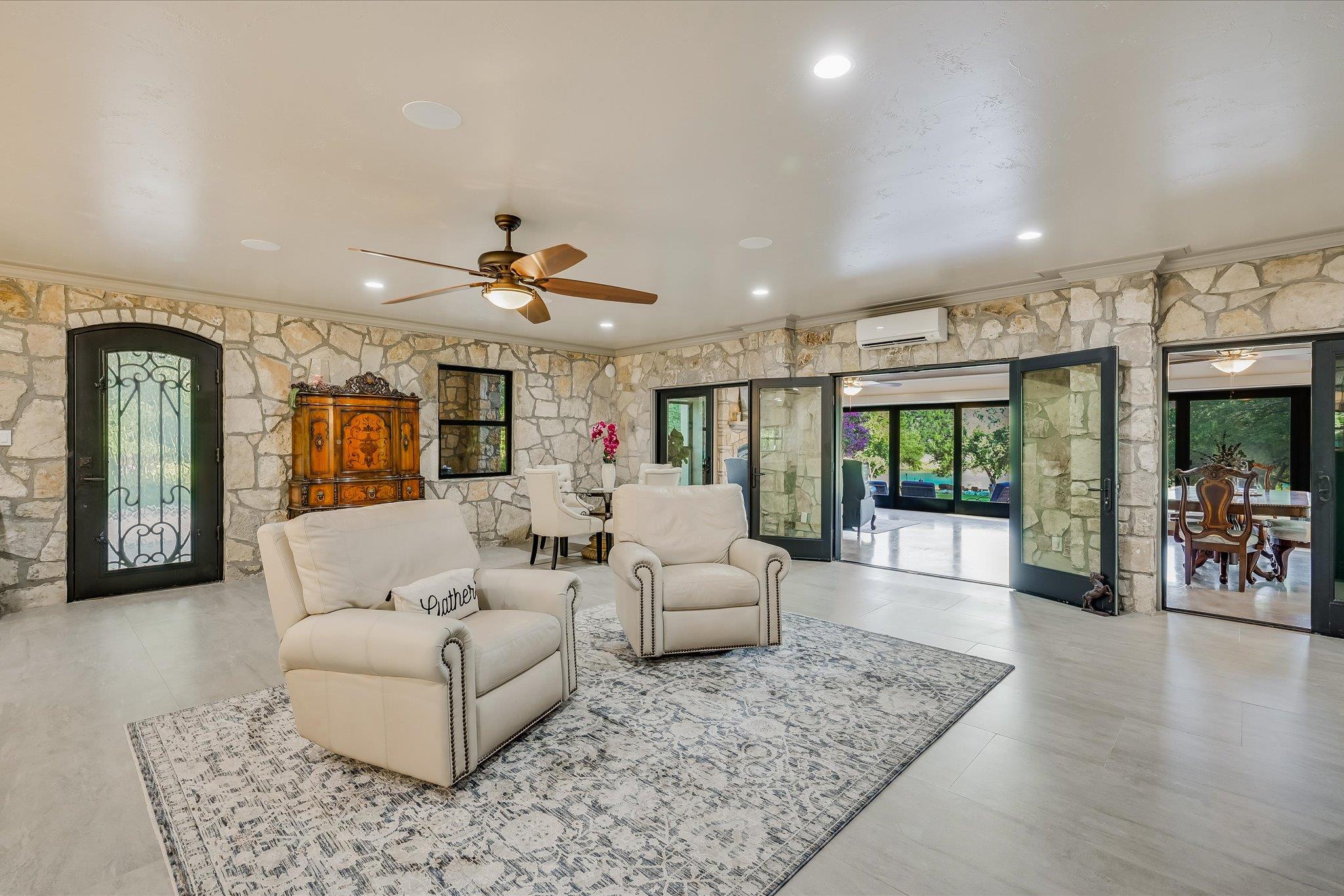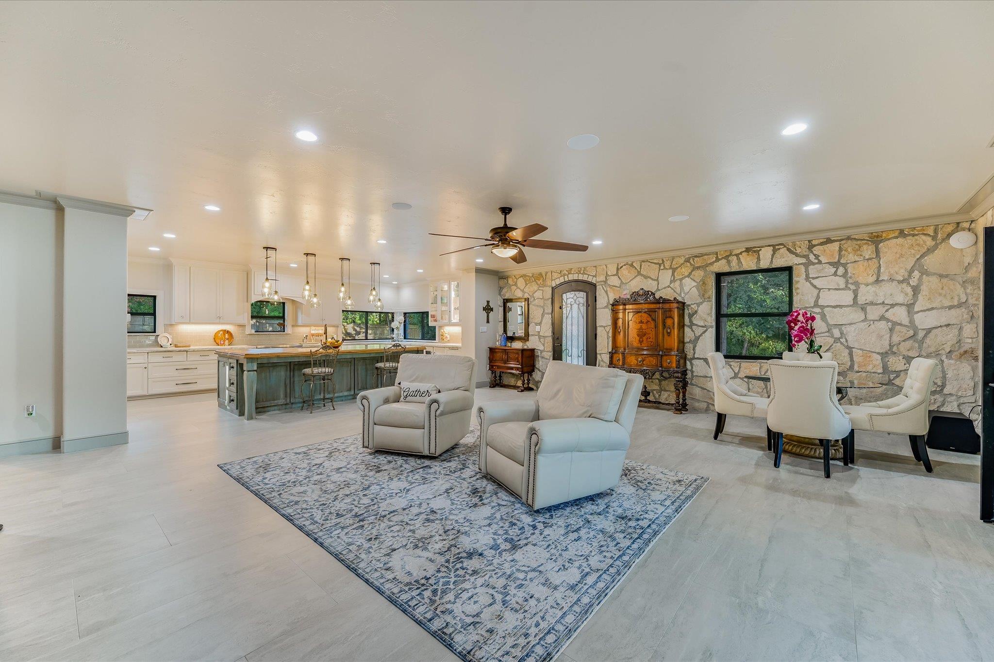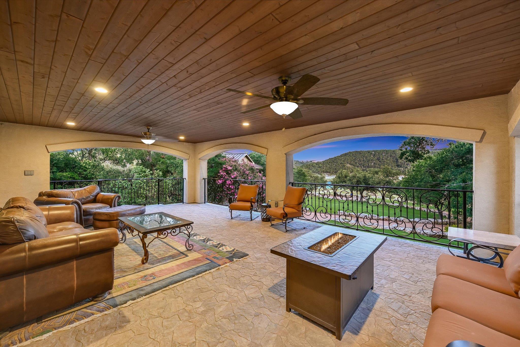 CONTACT AGENT #2: Josh/512-845-5423 for a showing or questions. A rare opportunity to acquire one of the most distinctive waterfront estates on Lake Travis. Set on 2.26 landscaped acres with a gradual slope to deep water and 222 feet of private shoreline, this multi-structure compound was designed for generational living, elevated entertaining, and lasting legacy. The primary residence spans 3,387 square feet (3 bedrooms, 2.1 bathrooms) and features refined Hill Country architecture, expansive window walls, and seamless transitions between indoor and outdoor living spaces. Views stretch across the lake from nearly every vantage point, with upper balconies and covered patios positioned to capture morning light and sunset color. In addition to the main home, the property includes two 724 sf guest houses, both with full kitchens (4 bedrooms, 2 full baths), a 238 sf casita with kitchenette (1 bed, 1 full bathroom), and a 225 sf studio/salon — each thoughtfully sited and privately accessed. Whether hosting extended family, providing long-term accommodations, or creating dedicated workspaces, the layout offers exceptional versatility with no compromise in design or privacy. As you enter through the beautiful stone and large privacy gate - the grounds are curated, not just maintained — mature oaks, manicured lawns, and native stone pathways lead to multiple gathering areas, including a firepit lounge and waterfront viewing decks. A short walk or golf cart drive to the private boat dock down the gradual slope to your private dock and covered boat slip with HydroHoist completes the experience. Don't miss this amazing opportunity to own one of the rarest properties on Lake Travis. With a enough yard space to add your own private pool/spa (rendering available) and driveway space to expand the garage to accommodate up to 4 car garage - this property is a true must see to believe. A true hidden oasis on Lake Travis!