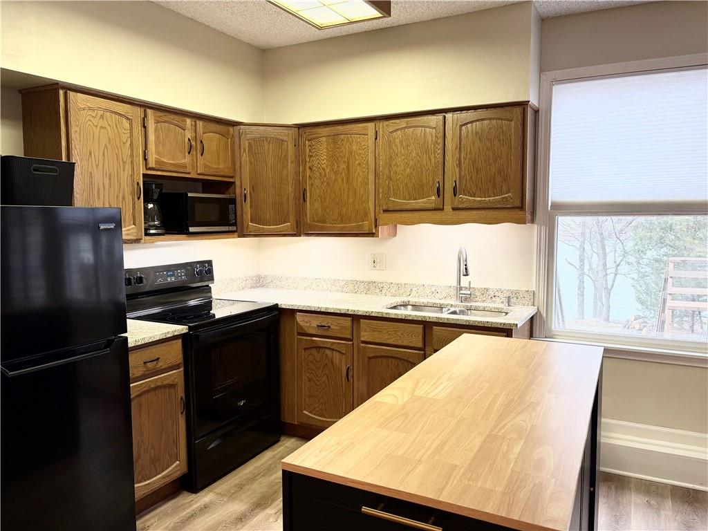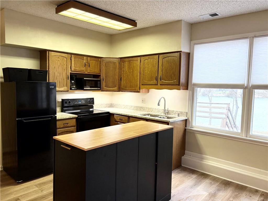 This quaint and charming updated LAKEFRONT bungalow offers a peaceful retreat surrounded by mature shade trees and beautiful views of the main lake bringing natural beauty into your home. The location doesn’t get better than this. Enjoy it today, add on later- there's great potential for expansion if your needs or dreams grow. Located in a private, gated community packed with amenities -an 18 hole golf course, multiple lakes, beach, pool, clubhouse and more. Breath taking sunsets, star filled skies, it doesn't get much better than this. Come see for yourself what everyone is talking about. There is so much to do and love about Linn Valley Lakes. Seller will provide a wood dock with an accepted offer. Agent is related to seller.