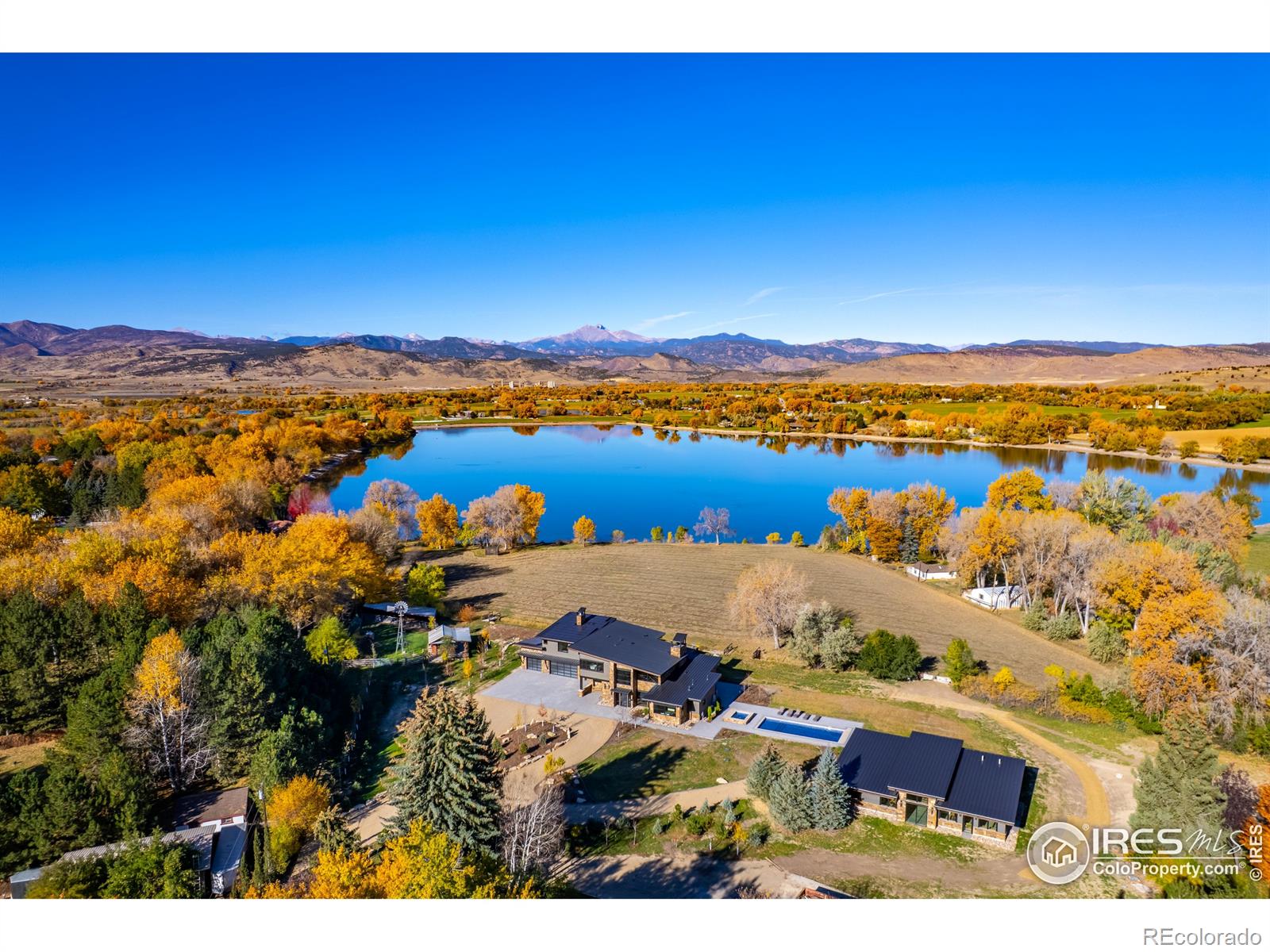 Lakeside living near Boulder is virtually unheard of, making 12357 N 75th Street one of the most exceptional opportunities in the region. Set on 7 lush, irrigated acres with direct access to a private lake and sweeping views of Longs Peak and the entire Front Range, this Boulder County estate offers natural beauty, luxury, and privacy just 20 min. from downtown Boulder. At the heart of the property is a newly constructed 5,754 SF residence, thoughtfully designed for elevated indoor-outdoor living. Expansive accordion glass doors and floor-to-ceiling windows capture breathtaking views, bringing the landscape into every room. Every element has been curated to support a life of ease, comfort, and refined style. The kitchen is a standout, equipped with Sub-Zero and Wolf appliances, a steam oven, a striking steel range hood, wine storage, and a fully appointed cook-in butler's pantry. A dramatic open-hearth fireplace anchors the great room, where rich textures, such as handcrafted cabinetry, reclaimed wood beams, and custom steel elements, create depth and sophistication. The home features four spacious bedrooms and six bathrooms, including a luxurious primary suite with a private loft, balcony, coffee bar, double-sided steel fireplace, spa bath with a soaking tub and steam shower, and a custom-designed walk-in closet. A dining room, private home office, and generous laundry room round out the home's well-appointed interior. Step outside to a true lifestyle haven. A heated pool and spa, lakeside firepit, and expansive patios offer multiple venues for entertaining or unwinding in total privacy. Direct lake access provides the rare ability to paddleboard, canoe, or enjoy peaceful moments beside the water. The estate also includes a newly constructed agricultural barn, an original carriage house, and a freestanding art studio. Just down the road, the charming enclave of Hygiene offers a taste of small-town life, boutique shops, and close-knit community feel. Home completed