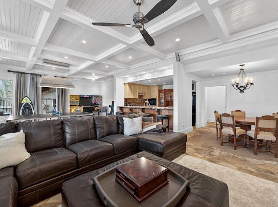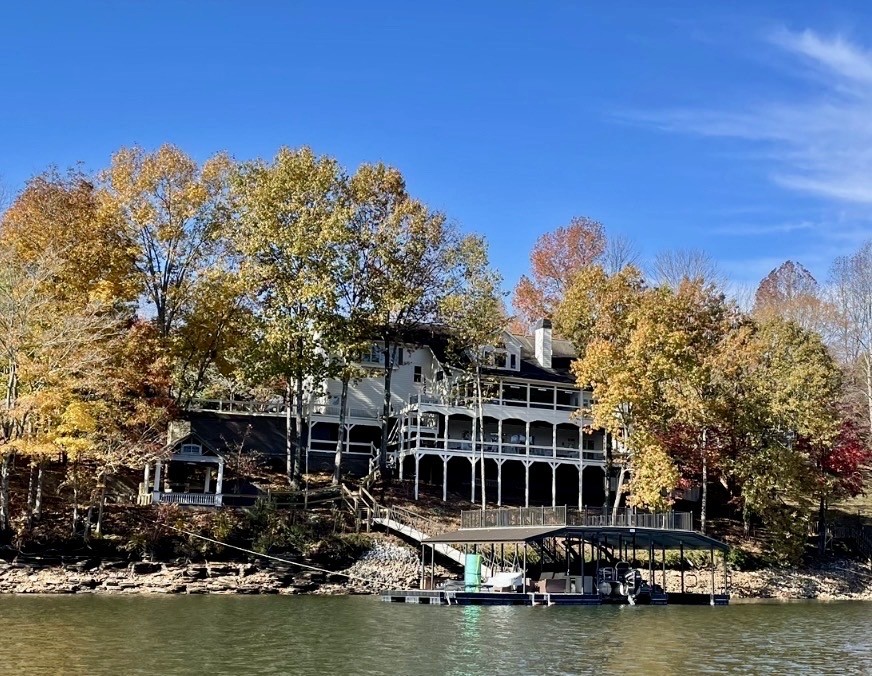Experience luxury lakefront living at its finest on beautiful Tims Ford Lake.This extraordinary custom-built home offers 7 flexible rooms that can serve as bedrooms,5 full bathrooms,2 full kitchens, and 2 spacious living areas—perfect for hosting family and guests.Home featured in Southern Living magazine,it showcases stunning, high-end granite and cabinetry throughout.The main-level primary suite is a private retreat, complete with a massive walk-in and walk-through closet,private balcony overlooking the lake,and spa-like bathroom featuring separate vanities and oversized walk-in shower.An adjacent laundry room with wall-to-wall granite adds both luxury and convenience.The chef’s kitchen is truly spectacular,featuring an oversized granite island,butler’s pantry,dual refrigerators,a full freezer,and abundant storage.The open-concept design flows seamlessly into the main living area,where vaulted ceilings and expansive lake views create a breathtaking atmosphere.Upstairs,you’ll find three additional rooms and a full bath,while the lower level includes a large game room,living room,a second full kitchen,three more flexible rooms,and 2 full bathrooms with another washer and dryet,ideal for guest accommodation or bottom level can be rented out and separate from upper level. Generac generator and safe room for safety in storms.