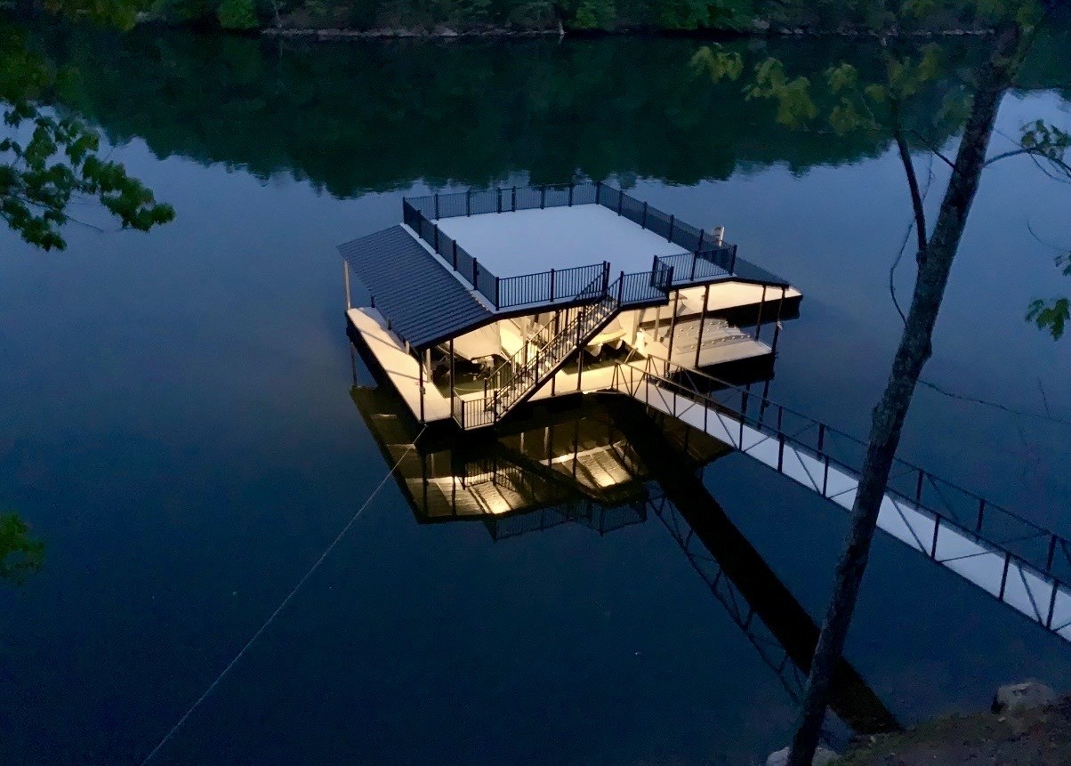 Step outside to enjoy full-length porches on both the main and lower levels,offering uninterrupted lake views thanks to protected state park land directly across the water.Situated in a large cove within a no-wake zone,the property provides added privacy,safety,and dock stability.