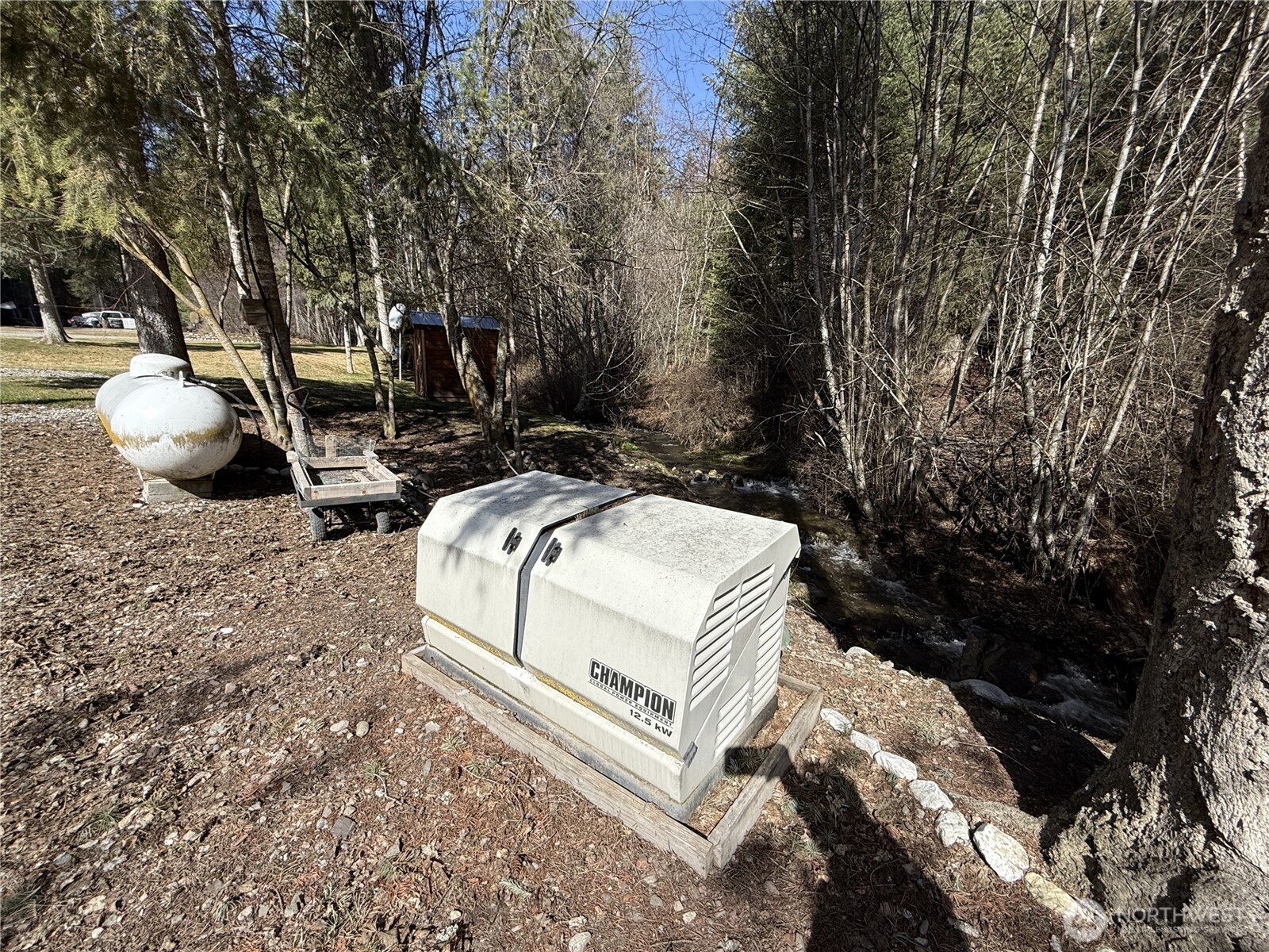 Wow! What a beautiful home and land. Low bank creekside setting for this well built wood sided home looking out at a large grassy yard ringed by the large mature timber. Lot of wood accents with an open first floor layout. Both a wood stove & monitor oil heater to keep the floor cozy & warm plus several wall mounts upstairs. Large jetted tub & separate shower in bathroom. Large pantry/laundry/mud room. Super cute detached guest cabin with bath & wood stove. Very large shop with tons of storage upstairs. Large garage with workspace. Green house & storage shed in yard. Backup generator. Huge fenced garden with raised beds. So much to offer with this one.