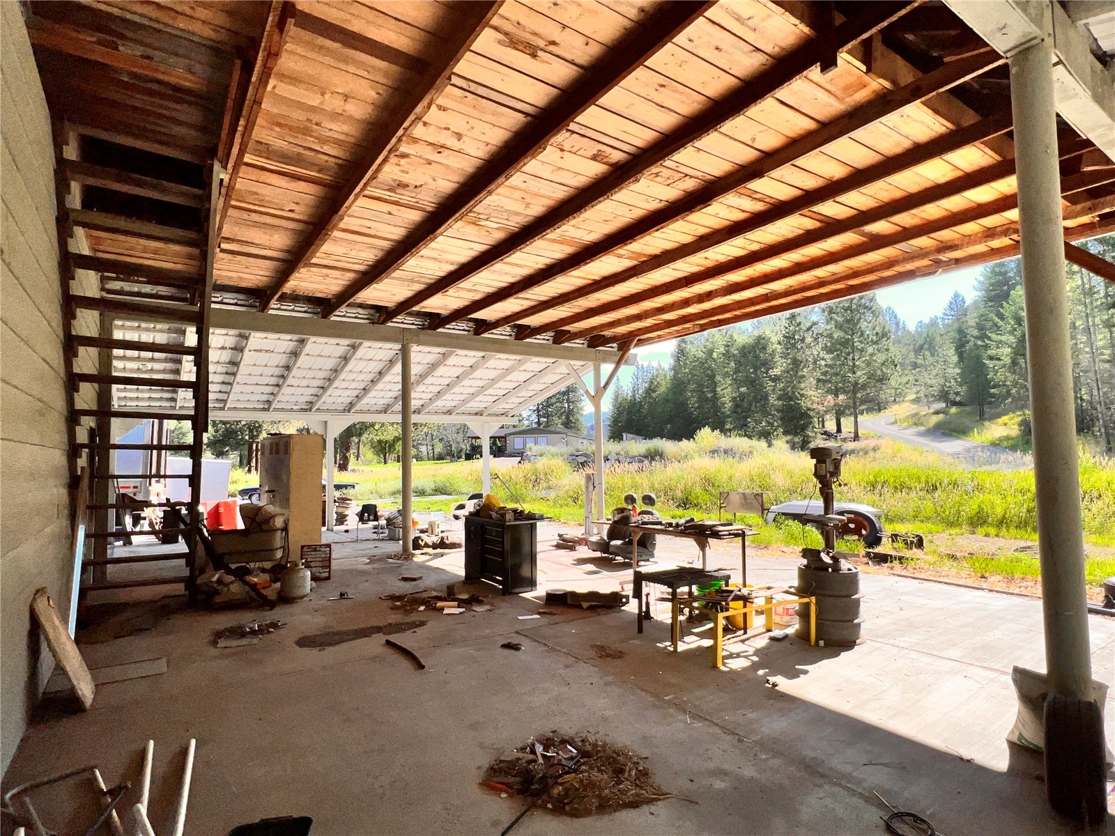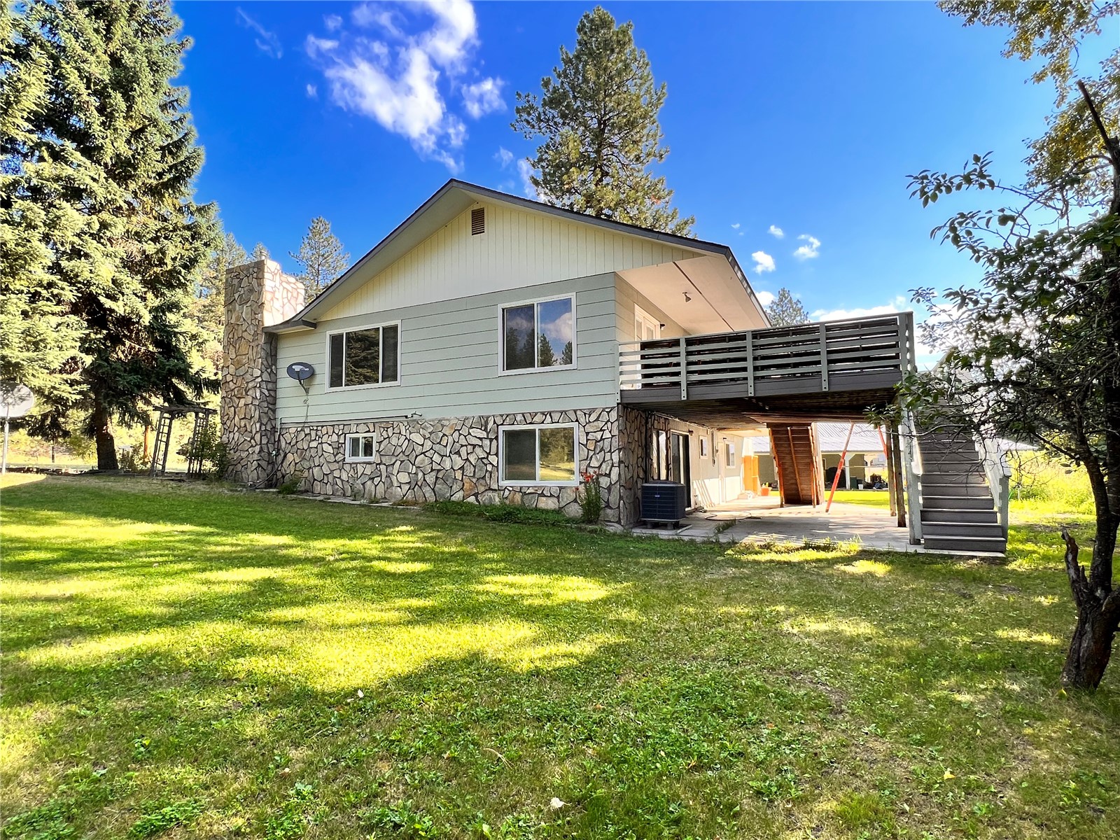 Immaculate, well kept home with a huge shop nestled back against the creek. This large two story home is well set up with a new, bright, open concept kitchen with French doors leading out to a huge deck overlooking the creek. Large family room has a propane fireplace, plenty of room & nice looking laminate flooring. Downstairs there is a huge rec room with a bar & wood stove. There are laundry hookups both upstairs & down. Attached 2 car garage as well as a huge, insulated 30’x40’ shop with 20’ lean to’s on either side & huge covered lean to area off the back. There’s no shortage of covered storage space. Asphalted circular driveway off of a state highway so….no dust!. Nice green house, lots of landscaping& room for a few animals.