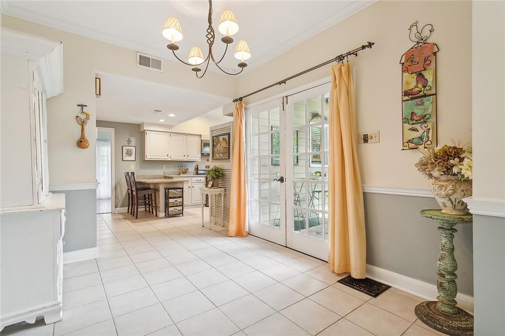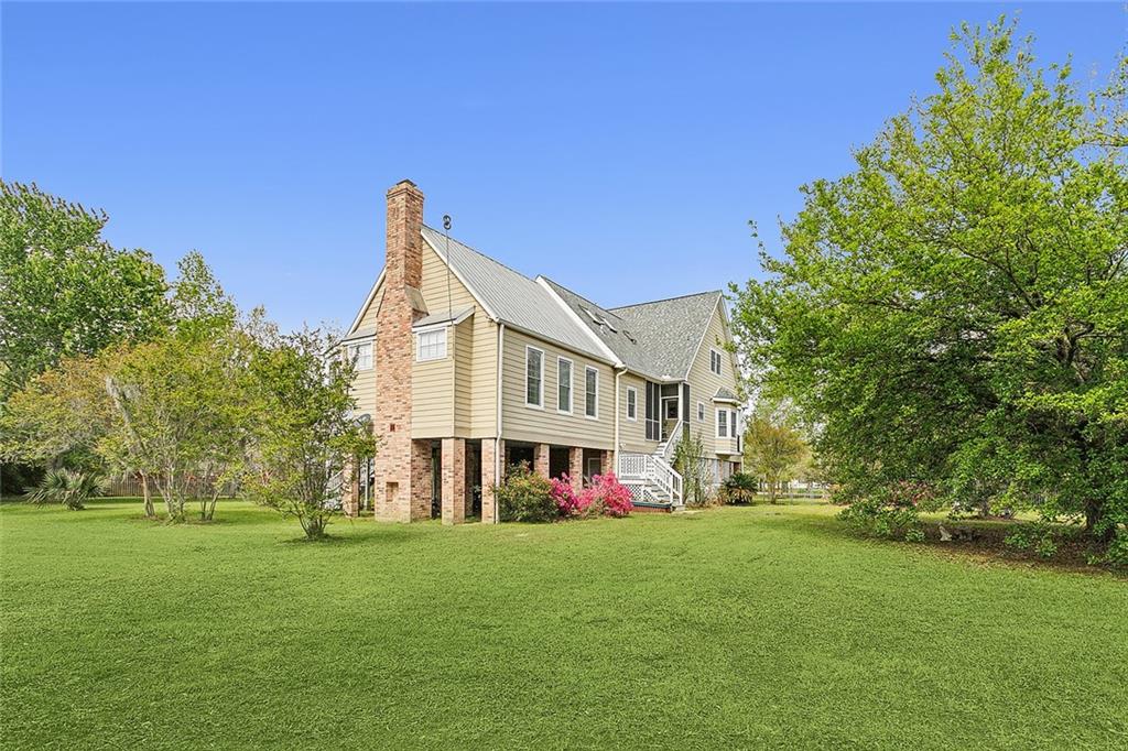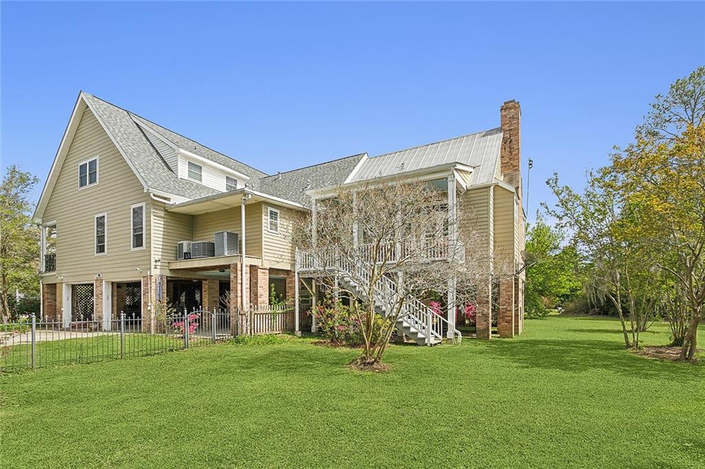 Welcome to the tranquility, comfort, and convenience of Lewisburg near The Lakefront and Causeway! This spacious Acadian-style home nestled in a serene cul-de-sac offers plenty of living space with just over 4,000 square feet of living area, 4 bedrooms, 3 full and two 1/2 baths. An additional covered space underneath includes a storage area, double garage doors for parking, and ample room for parking. Upon entering the foyer, a cozy sitting room welcomes you on one side and on the other is a formal dining room with picturesque views of the lush surroundings. The well-equipped kitchen features bar seating, and a breakfast area with double doors that open to a screened porch, perfect for enjoying morning coffee or evening meals al fresco. The stunning living room impresses with high ceilings, gorgeous, white, wood beams, and a beautiful fireplace, complemented by an attached deck, ideal for outdoor gatherings. The primary suite adds to the homes comfort with multiple skylights, new carpeting, an en-suite bath featuring a jacuzzi tub and spacious shower with a bench. Upstairs, there are three bedrooms each with reading nooks and there is an additional room, currently used as an office, but could easily be an additional bedroom or hobby area. Multiple staircases provide convenient access to each level. Ample storage throughout, including space underneath the home that could be ideal for converting into an apartment, entertainment area, or game room. Multiple porches allow for enjoying the lush green views from every angle. Make this peaceful oasis your own. Schedule a showing today and experience the perfect blend of comfort, space, and convenience.