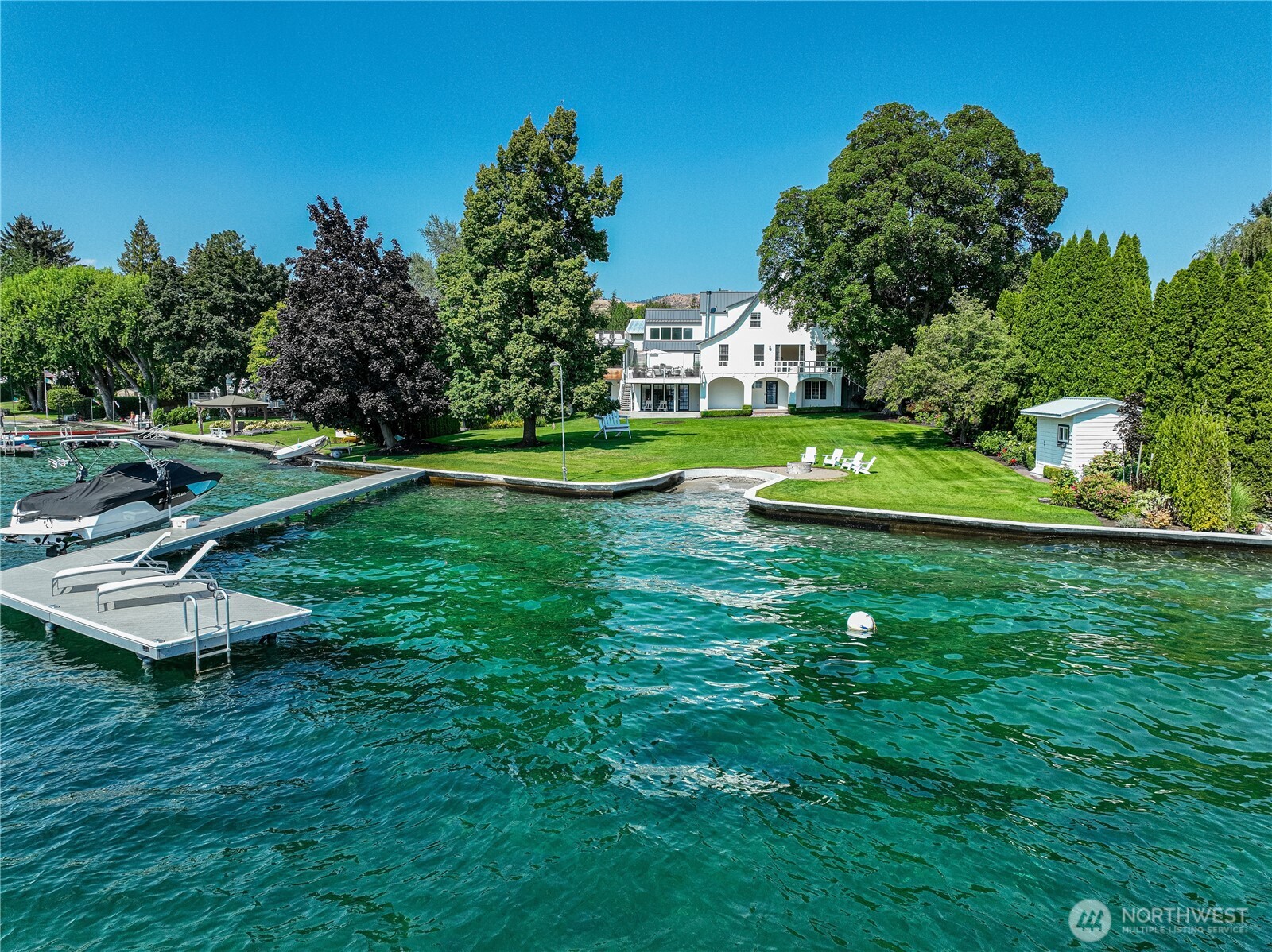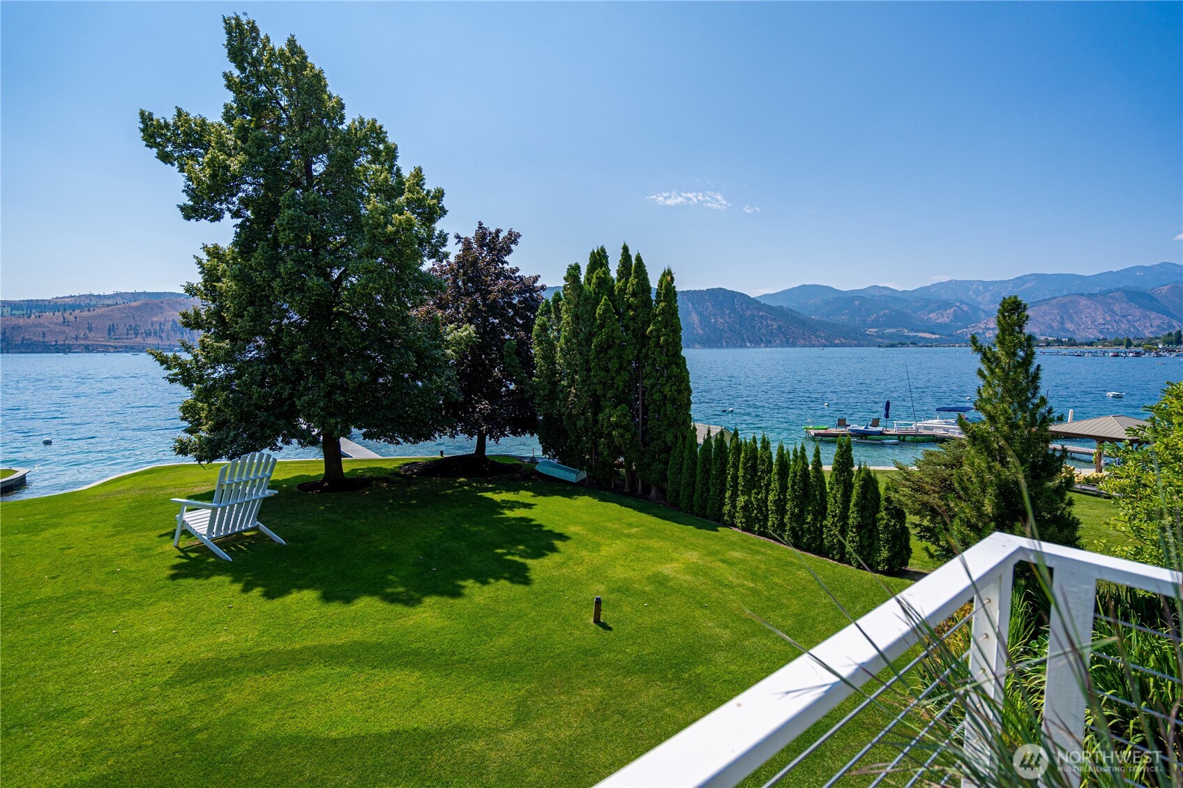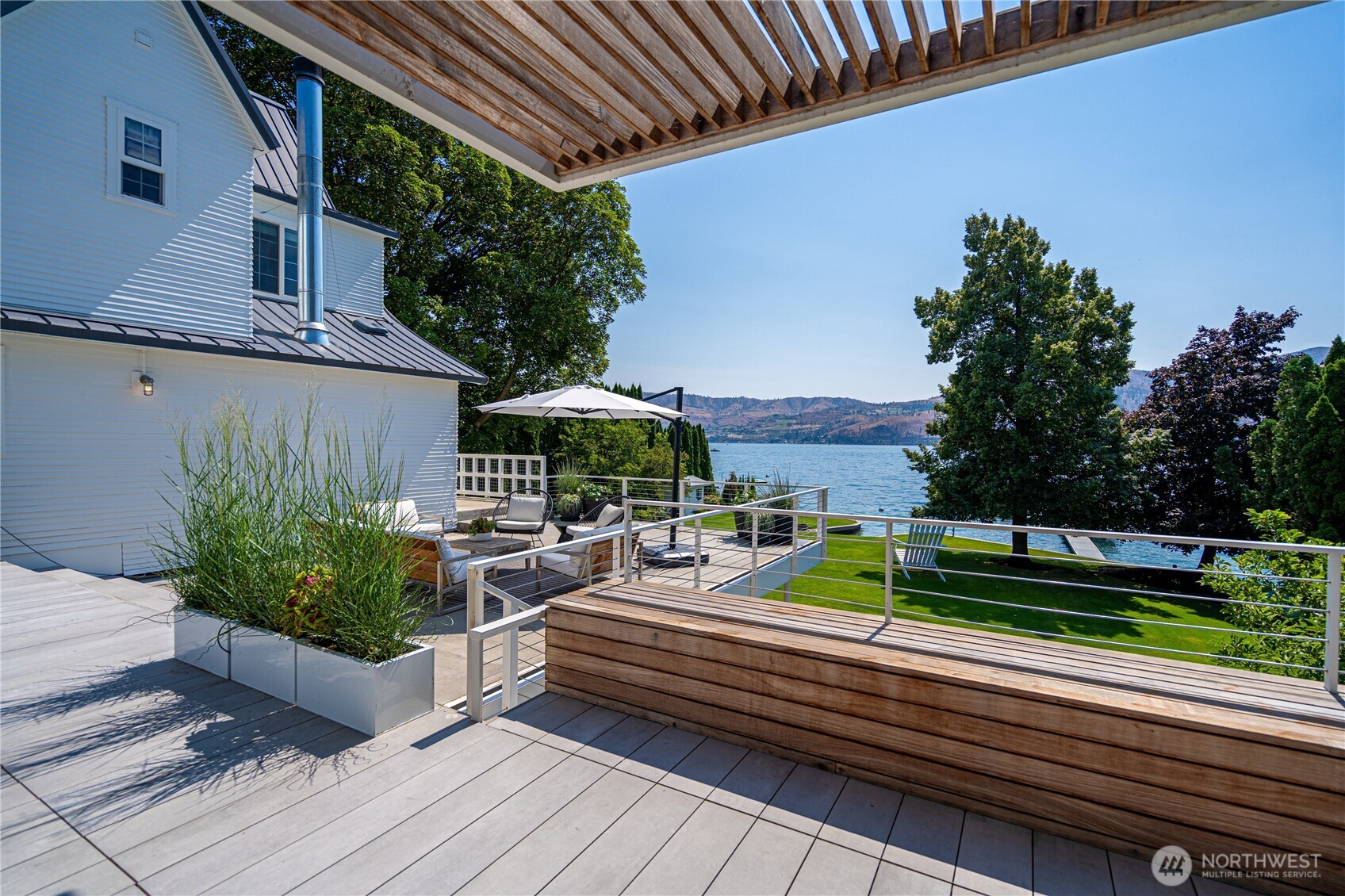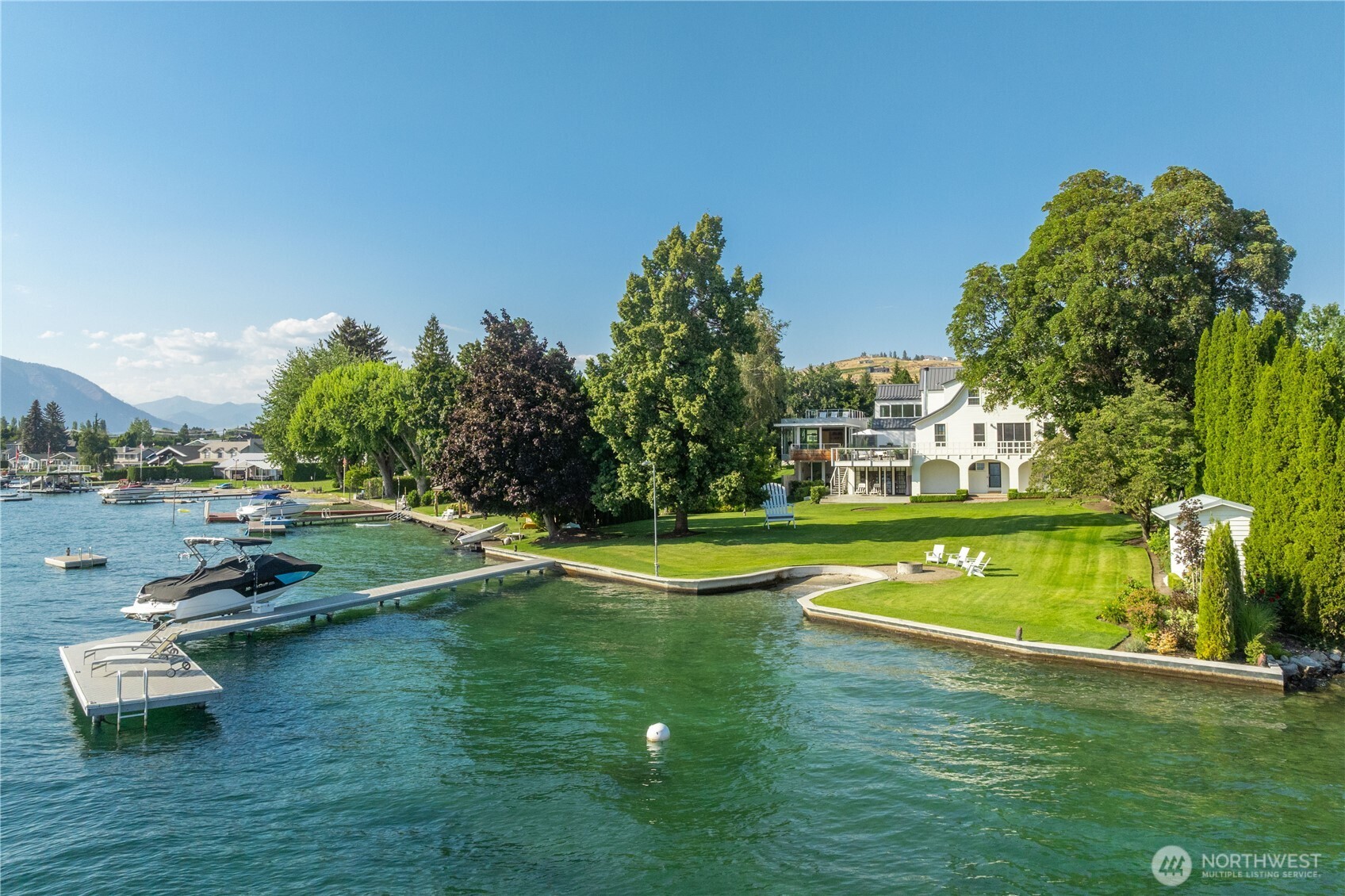 Nestled on the serene north shore of Lake Chelan, this iconic 5,016 sq. ft. residence is a blend of vintage allure and modern sophistication. Originally built in 1944 and then reimagined by E. Cobb Architects, it offers breathtaking views of the lake and Chelan Mountains. Final construction was completed in 2022. Featuring 6 bedrooms, including 4 primaries with luxurious ensuites. The manicured grounds boast 136' of waterfront, a sandy beach, private dock, boat lift, fire pit, and an expansive entertainment deck that evokes relaxed elegance, offering an ideal backdrop for both intimate gatherings and grand-scale entertaining. This private oasis embodies lakefront elegance with modern luxury—a rare offering of Lake Chelan's storied heritage.