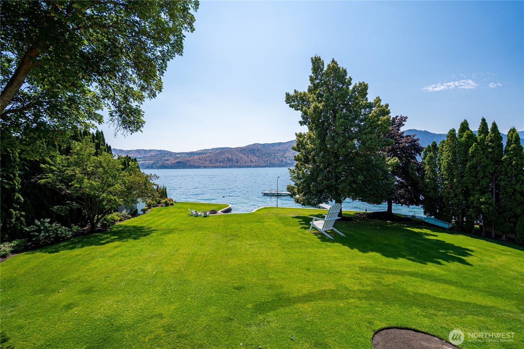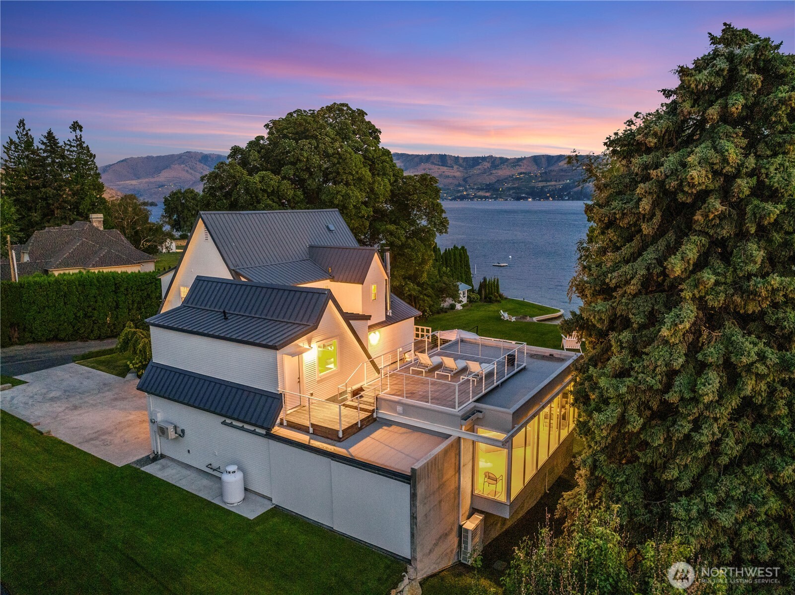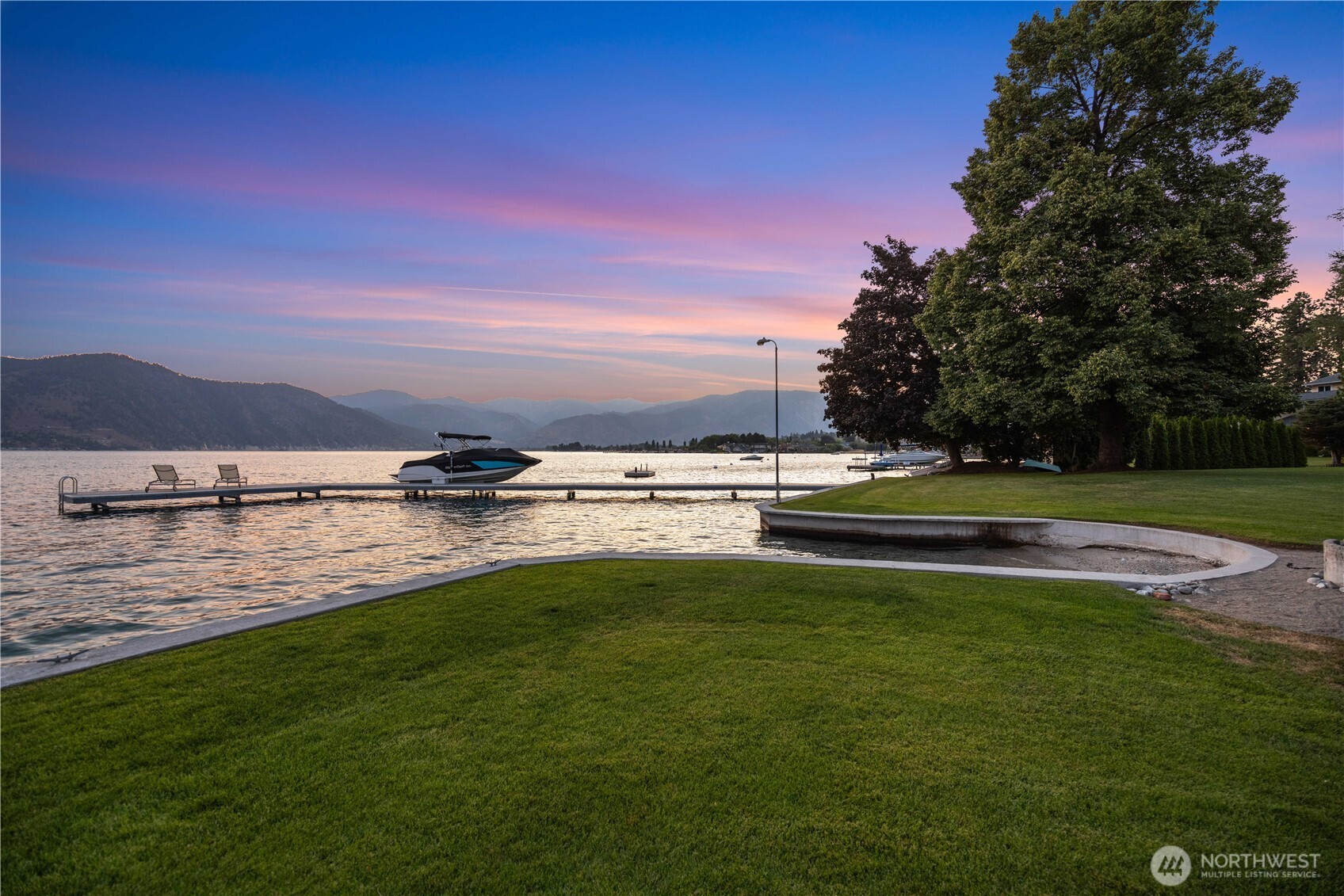 Nestled on the serene north shore of Lake Chelan, this iconic 5,016 sq. ft. residence is a blend of vintage allure and modern sophistication. Originally built in 1944 and then reimagined by E. Cobb Architects, it offers breathtaking views of the lake and Chelan Mountains. Final construction was completed in 2022. Featuring 6 bedrooms, including 4 primaries with luxurious ensuites. The manicured grounds boast 136' of waterfront, a sandy beach, private dock, boat lift, fire pit, and an expansive entertainment deck that evokes relaxed elegance, offering an ideal backdrop for both intimate gatherings and grand-scale entertaining. This private oasis embodies lakefront elegance with modern luxury—a rare offering of Lake Chelan's storied heritage.