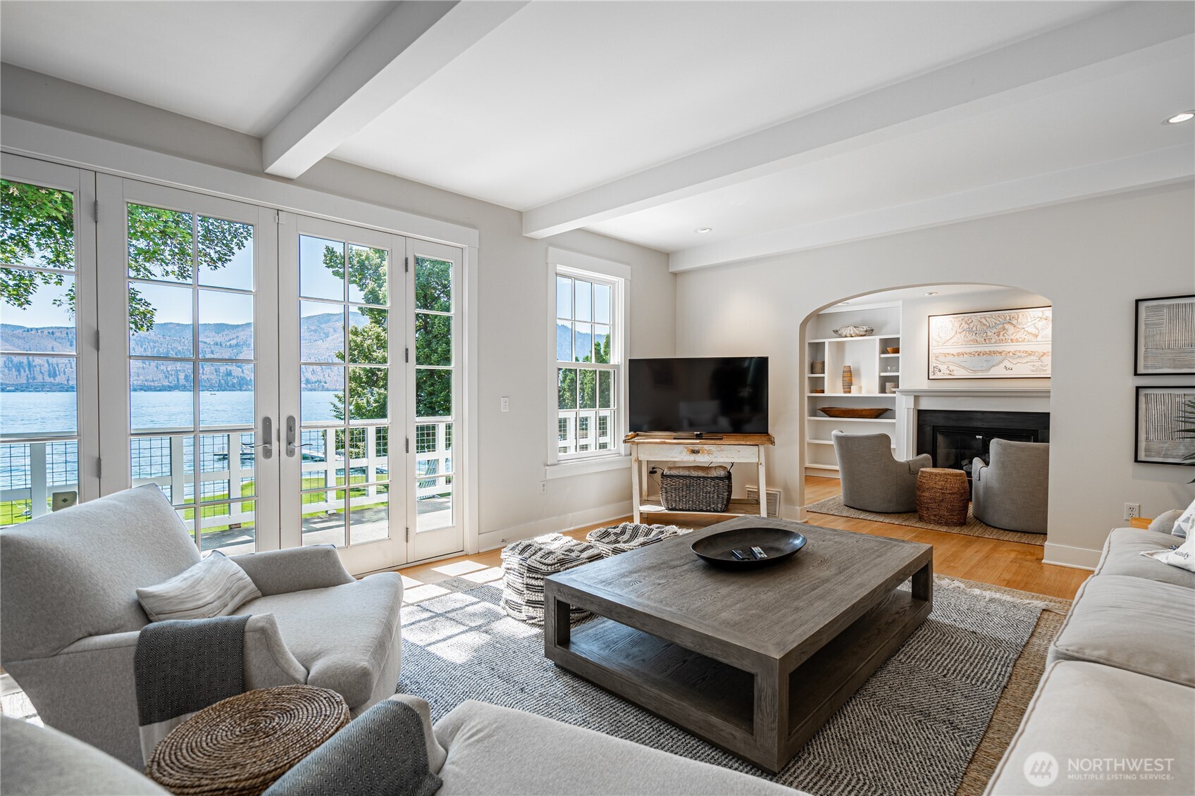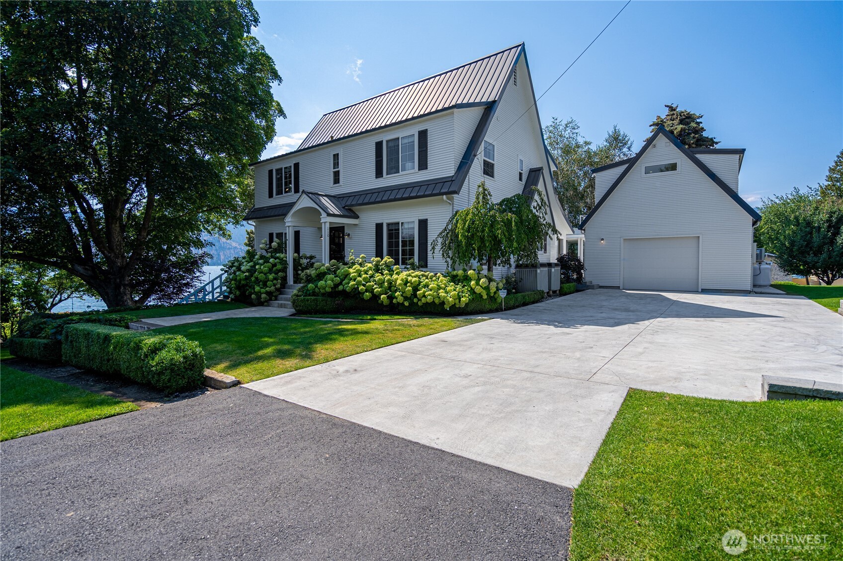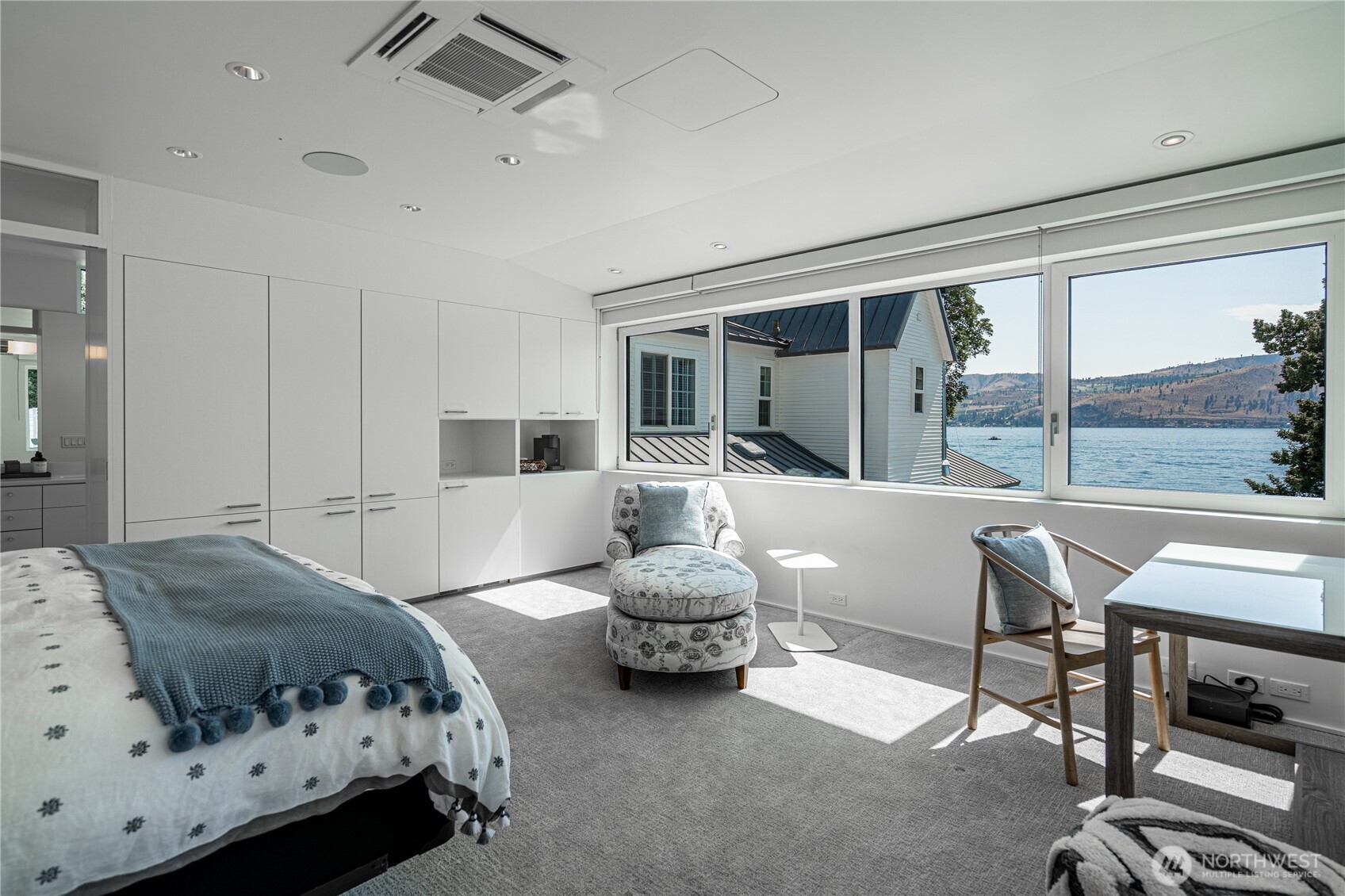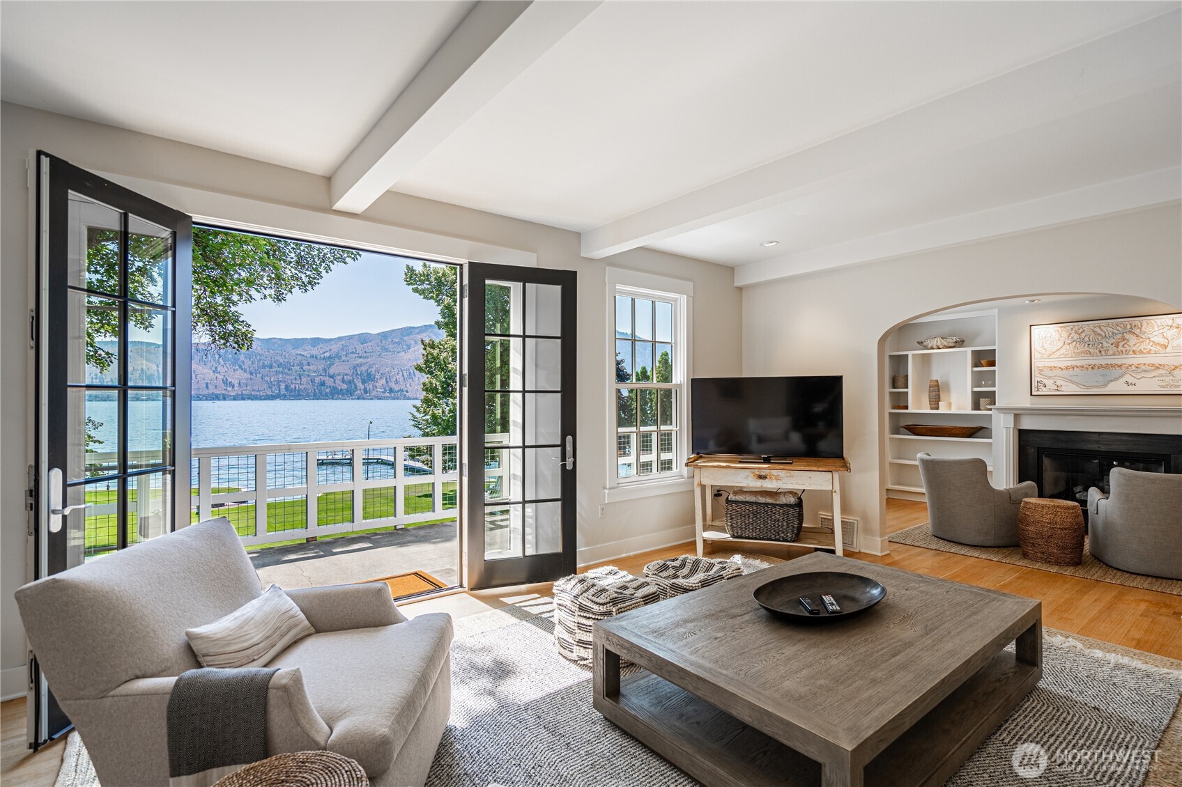 Nestled on the serene north shore of Lake Chelan, this iconic 5,016 sq. ft. residence is a blend of vintage allure and modern sophistication. Originally built in 1944 and then reimagined by E. Cobb Architects, it offers breathtaking views of the lake and Chelan Mountains. Final construction was completed in 2022. Featuring 6 bedrooms, including 4 primaries with luxurious ensuites. The manicured grounds boast 136' of waterfront, a sandy beach, private dock, boat lift, fire pit, and an expansive entertainment deck that evokes relaxed elegance, offering an ideal backdrop for both intimate gatherings and grand-scale entertaining. This private oasis embodies lakefront elegance with modern luxury—a rare offering of Lake Chelan's storied heritage.