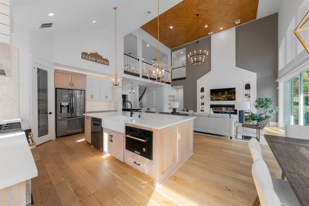 Interior Features: Built-in Features, Cable TV Available, Cathedral Ceiling(s), Chandelier, Decorative Lighting, Flat Screen Wiring, Granite Counters, High Speed Internet Available, Kitchen Island, Loft, Multiple Staircases, Natural Woodwork, Open Floorplan, Smart Home System, Vaulted Ceiling(s), Walk-In Closet(s), Wet Bar