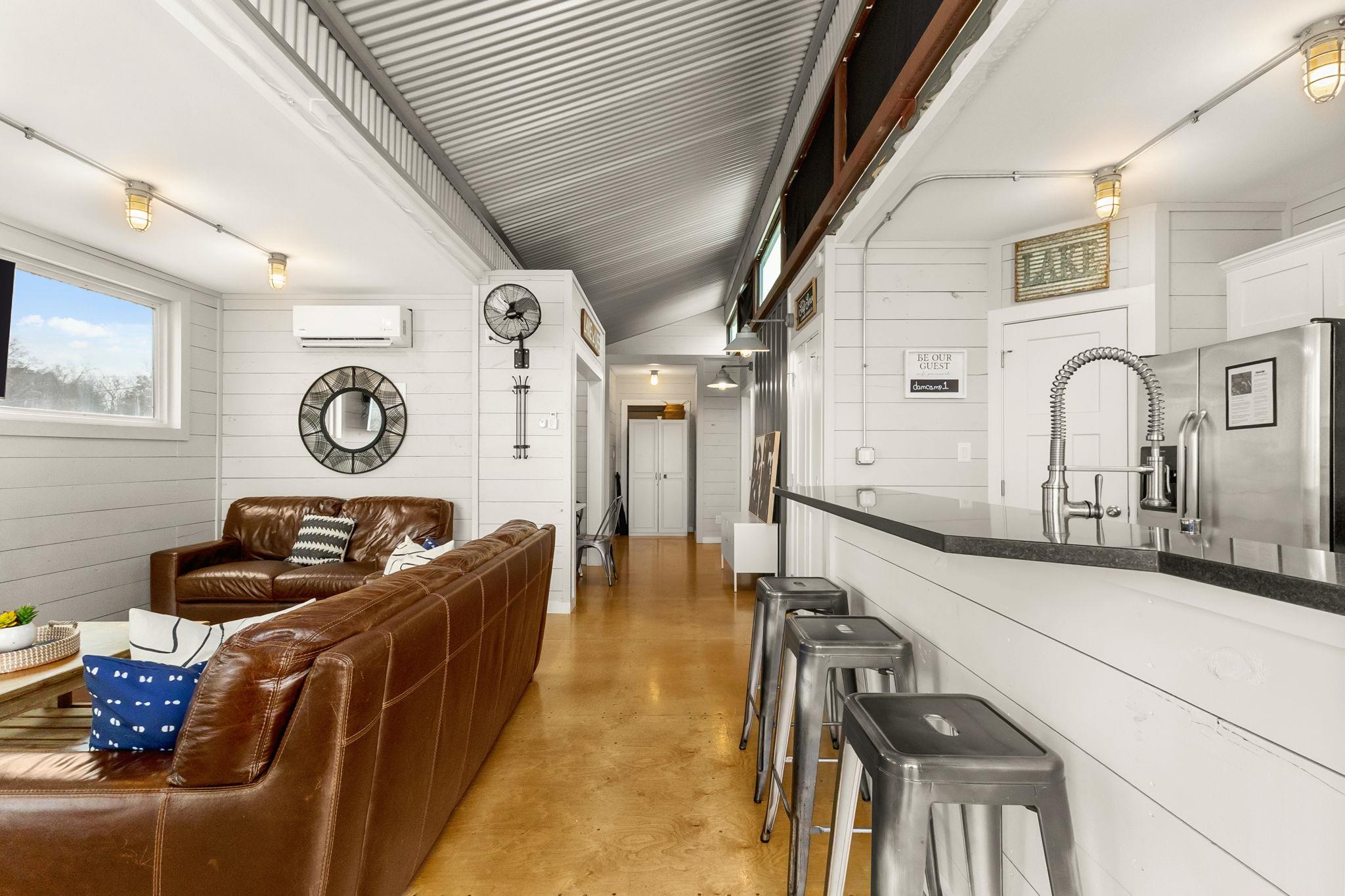 Riverfront Paradise on the Guadalupe — Endless Possibilities Await! Discover nearly 3 acres of riverfront bliss on beautiful Lake Placid, just past the dam in Seguin, TX. This 2.971-acre property offers a rare blend of natural beauty, recreation, and potential — whether you envision it as a private retreat, short-term rental investment, event venue, or commercial venture, the opportunities are endless. Two custom-built elevated container homes (approx. 1,760 sqft combined) each feature 2 bedrooms, 2 baths, and come fully furnished with stylish, turnkey interiors designed for comfort and durability. Enjoy resort-style amenities including a covered pavilion, sand volleyball courts, private river/beach area, boat ramp, paddle boards, kayaks, multiple park-style grills, and plenty of open space for gatherings or new development. Mature pecan trees create a beautiful shaded canopy across the property, inviting you to relax and unwind while taking in serene river views. Perfect for summer fun, family getaways, or launching your next riverside business dream — this is truly a must-see Guadalupe River property. Two lots are being sold together, along with the two container homes. McQueeney Camp Lot 3 1.0730 AC and McQueeney Camp Lot 4 1.898 AC.