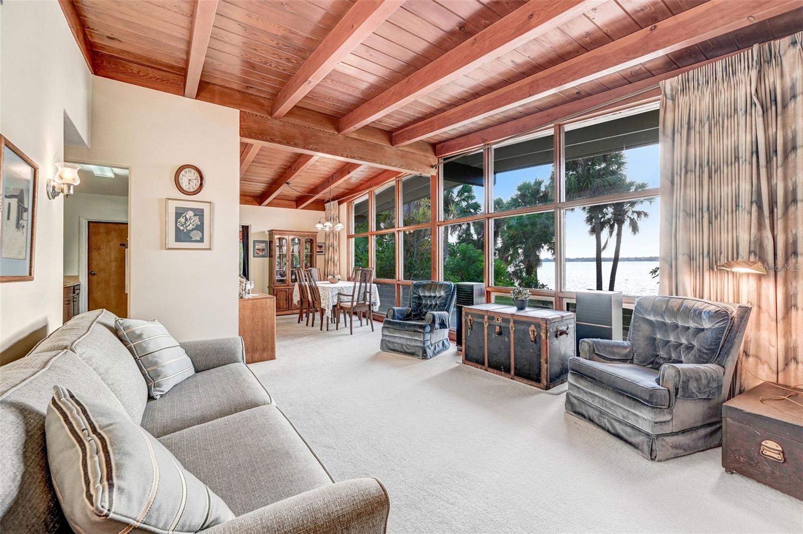 Experience the charm of mid-century design with this iconic 1950s riverfront retreat—a rare opportunity to own over 100 feet of direct Indian River frontage on a sprawling .41-acre lot. This three-bedroom, two-bath residence captures the essence of vintage Florida living, featuring warm wood ceilings and breathtaking panoramic views of the river. Step outside to enjoy spectacular sunsets and an ever-changing display of Florida's coastal wildlife, all from your own backyard paradise. With its timeless architecture, serene setting, and endless potential, this property offers a unique opportunity to renovate or reimagine into your dream waterfront estate. Homes like this rarely come available—a perfect blend of history, character, and location along the sought-after Indian River.