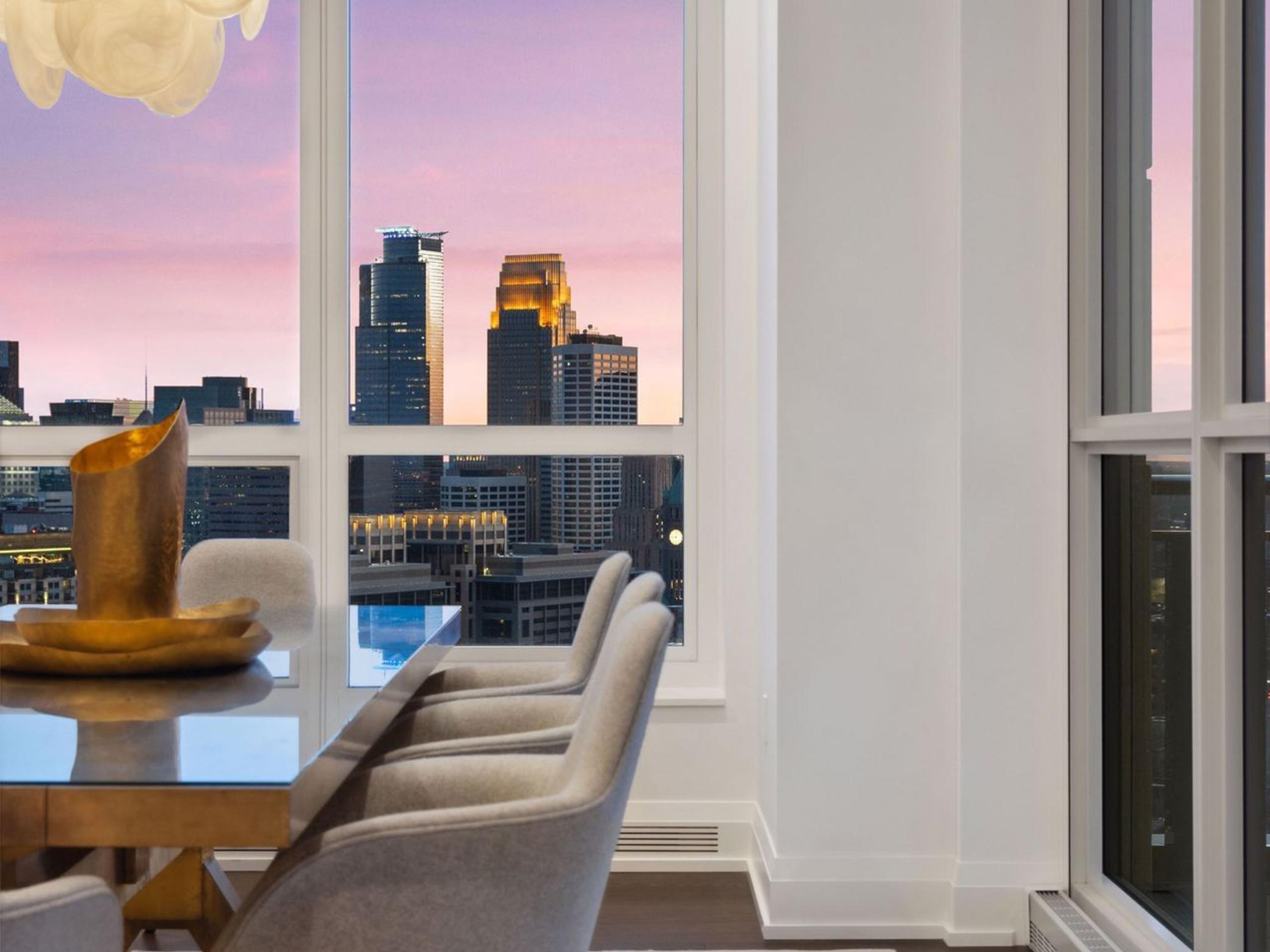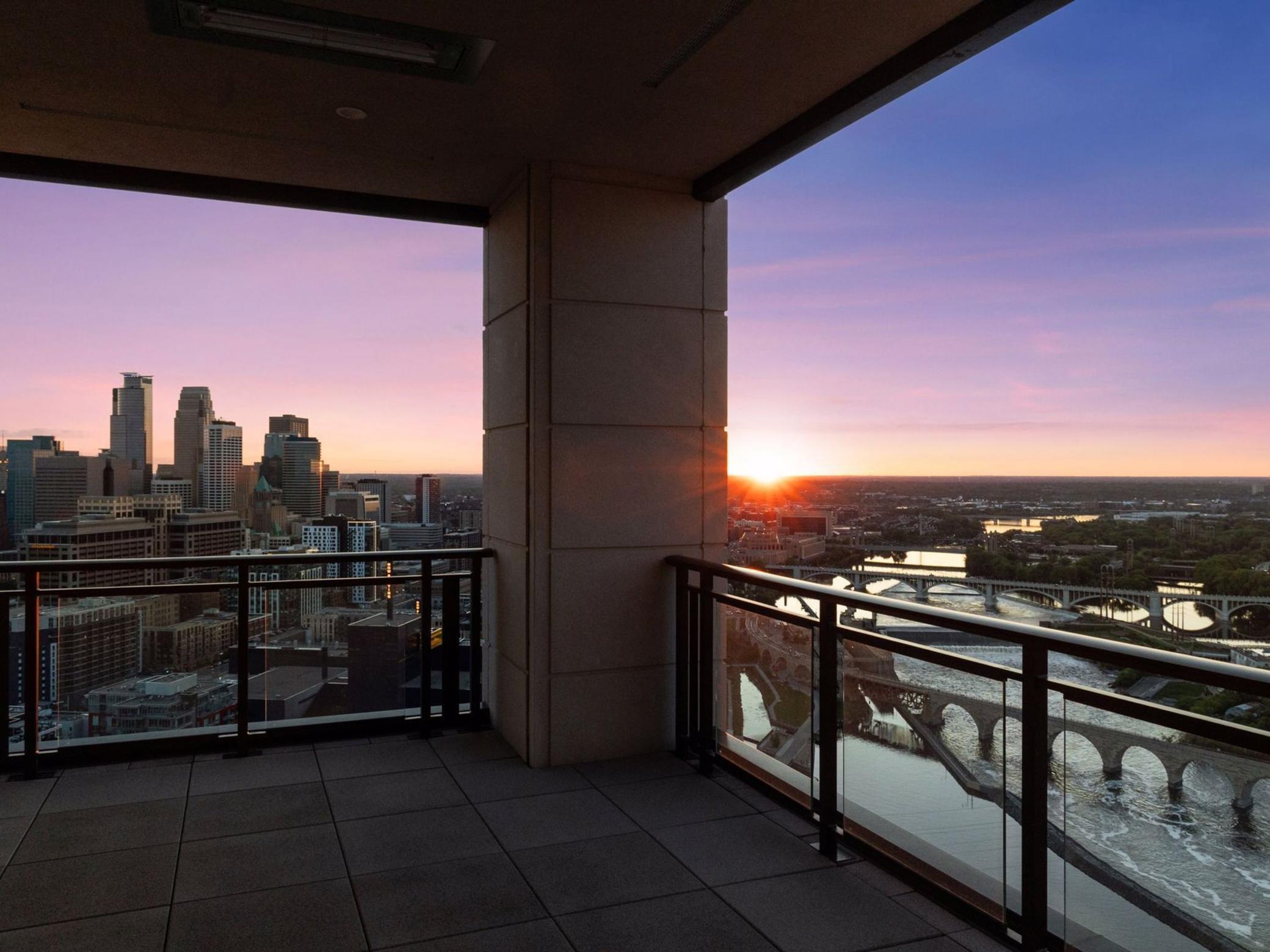 Welcome to ELEVEN, the first residential condominium tower in the heart of Minneapolis by renowned Robert A.M. Stern Architects. Perfectly positioned on the northwest corner of the building, this exquisitely designed two-bedroom plus library, three-bath home boasts unrivaled panoramic views of the Mississippi River, downtown Minneapolis skyline, U.S. Bank Stadium, Gold Medal Park, and the iconic Stone Arch Bridge. From sunrise to sunset, the vistas from this residence are simply spectacular—among the best in the city! Timeless architecture meets refined luxury, with expansive floor-to-ceiling windows that flood the home with natural light. The open-concept layout is anchored by a chef’s kitchen featuring beautiful white oak cabinetry, quartz countertops, Wolf and Sub-Zero appliances, and an oversized center island designed for entertaining. The kitchen flows seamlessly into the dining room with both west and north facing views. The elegant great room includes a striking gas burning fireplace with built-in bookshelves and cabinetry. The spacious primary suite is a sanctuary with spa-like marble bath, soaking tub, separate shower, heated floors, and a generous walk-in center island closet. There is an adjacent private office for reading or working. A 273 square-foot heated, covered terrace extends your living space, offering front-row views of the riverfront landscape. Finishing off the unit is a laundry room, gorgeous powder bath, and lots of storage. Amenities include ten-foot ceilings, oak hardwood floors, enameled woodwork, Sonos wireless speakers, Lutron lighting, eight-foot paneled doors, built-in storage, two heated garage stalls, and much more. ELEVEN delivers an unmatched lifestyle with 24/7 concierge and doorman service, private motor court, library, board room, resort-caliber fitness center, yoga studio, steam and sauna rooms, club room, chef-inspired display kitchen, bar and billiards room, golf simulator and lounge, 75-foot lap pool and hot tub, outdoor kitchens/dining areas/fireplaces, sport court accommodating pickle ball, private dog