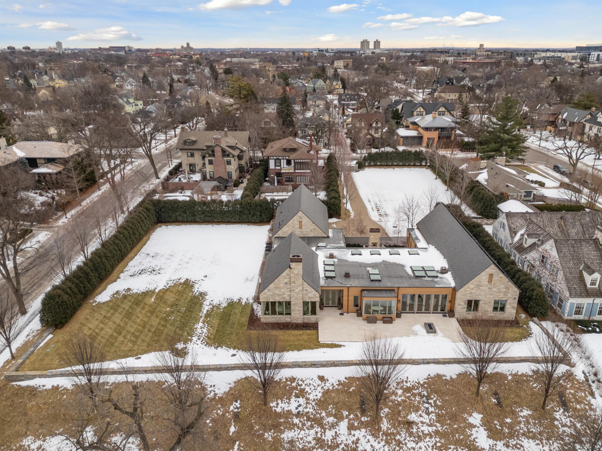 Unprecedented lakeside living on Lake of the Isles. A rare opportunity to own one of Minneapolis’ most iconic modern residences, perfectly positioned on the most coveted homesite on Lake of the Isles. This architectural masterpiece pairs timeless elegance with contemporary design, offering sweeping lake views, soaring glass walls, and abundant natural light throughout. A thoughtfully designed multi-pavilion layout delivers effortless single-level living, with seamless flow between formal entertaining spaces, relaxed family areas, and private bedroom suites. Outdoor living reaches new heights with an elevated lakeside terrace and a secluded courtyard featuring a fireplace, fountains, dining area with phantom screens, and full grilling station—ideal for year-round entertaining. This home was built with sustainability in mind, including a solar array and Tesla Powerwalls that significantly reduce environmental impact. Additional amenities include a sport court, exercise room, and a spacious attached, heated three car garage. Set behind the gated and manicured entrance off Lake Place, this expansive lakeside property offers unmatched privacy in one of the city’s most prestigious settings, creating a truly unparalleled urban retreat.