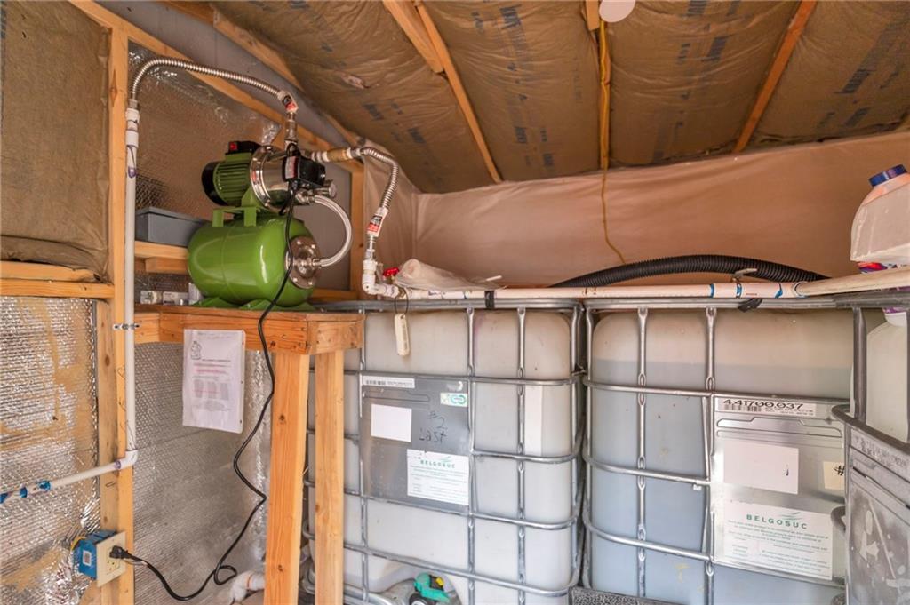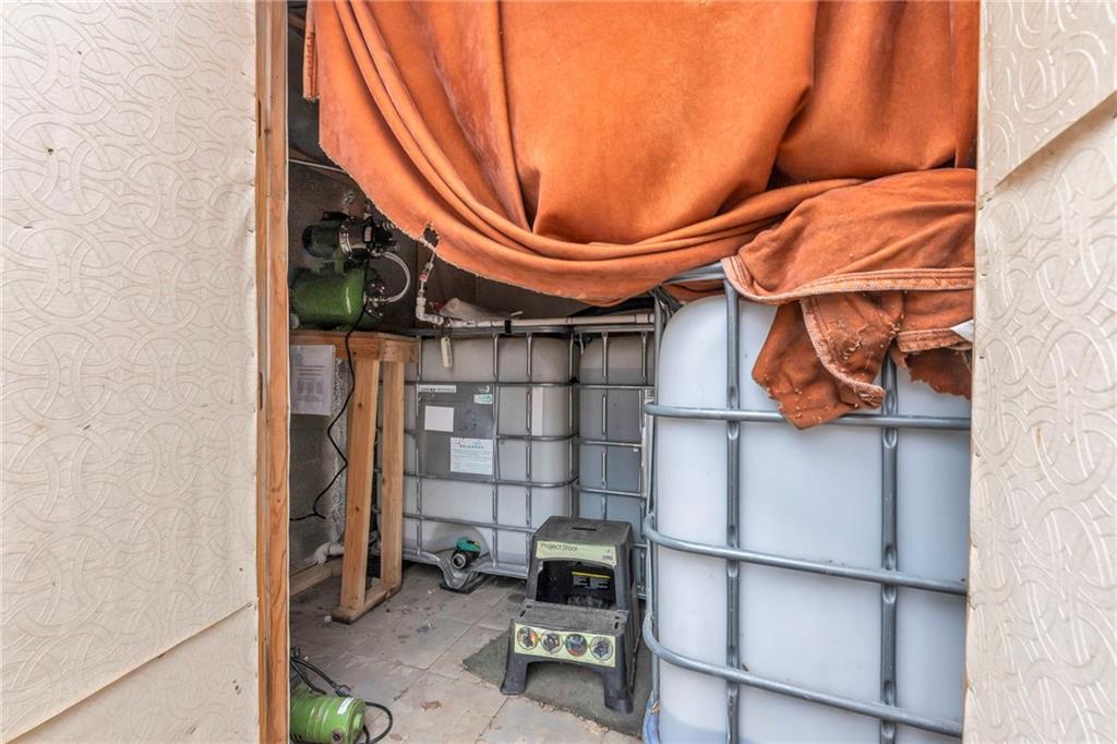 Outdoor living is a highlight with a 10x20 deck leading down to an 8x20 patio featuring a working outdoor fireplace with grill, plus a double swing to enjoy the peaceful surroundings and abundant wildlife. The property also includes an extra garage for boat or jet ski storage, RV parking with hookup, outdoor and indoor security cameras, and a private water system with multiple storage tanks and on-demand supply.