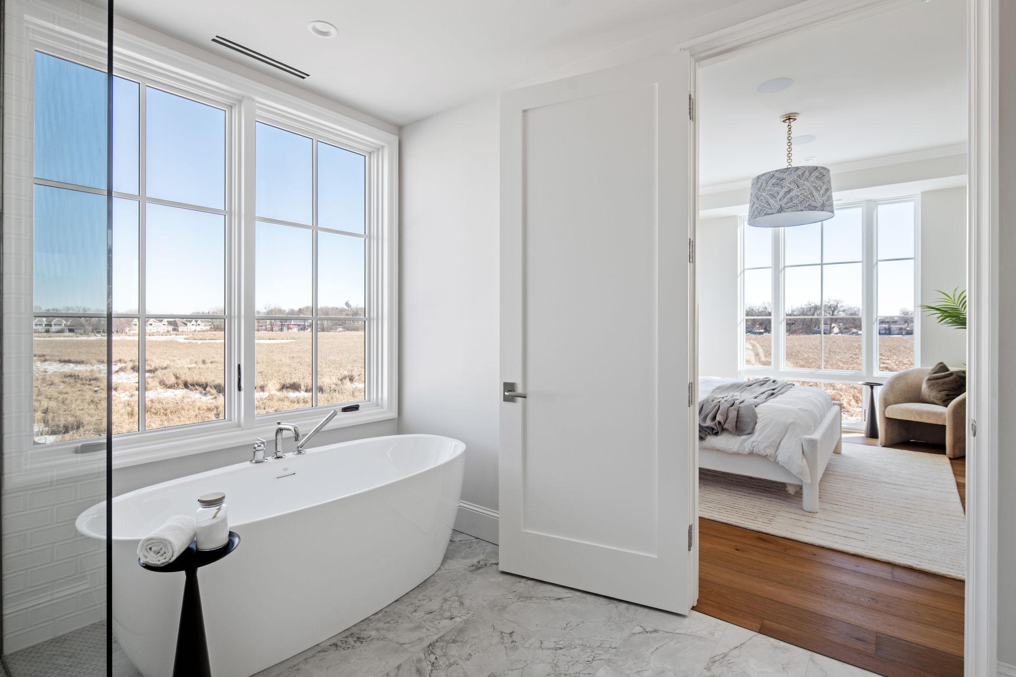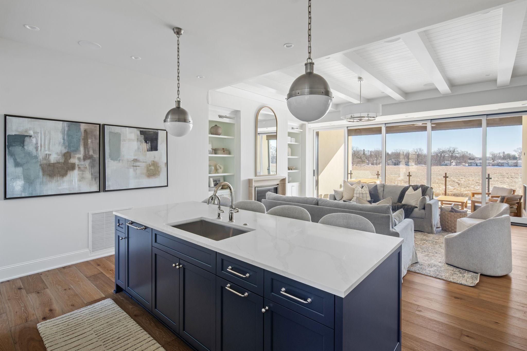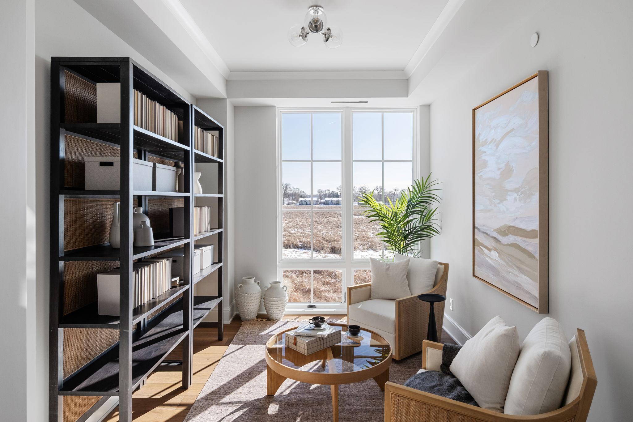 Thoughtfully situated along the quiet shores of Lake Minnetonka, The Flats offer a boutique collection of modern lakefront residences designed for effortless living. Every residence at Lake Minnetonka Flats is designed for seamless indoor–outdoor living. This two bedroom plus library and 2.5 bathroom spanning 1,842 square feet of interior space is a single-level lake residence featuring the Coastal interior palette, where deep blue tones meet white oak flooring, and thoughtfully crafted modern finishes. Every detail has been carefully curated to present a seamless luxury living experience. Floor-to-ceiling windows open living spaces to the surrounding shoreline, while the covered loggia, which is expansive at 225 square feet of exterior space extends the home outdoors for year-round lakeside living. An additional front patio comprised of 600 additional exterior footage makes this unit truly unique. Each residence includes a private boat slip, heated two-car garage, large storage unit, and maintenance-free ownership along the quiet shores of Lake Minnetonka. Residences are limited to just twelve homes across three buildings. Schedule a private tour today.