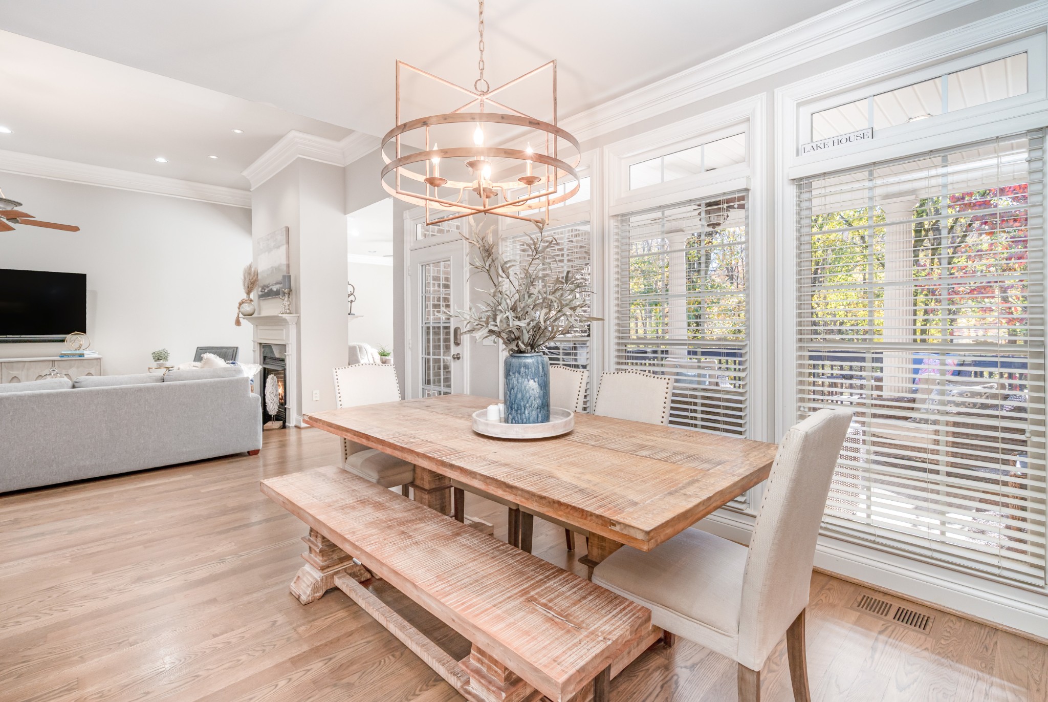 Experience lakeside luxury at its finest in this stunning home in an upscale lakefront community. This home includes a dedicated dock slip in the community dock—perfect for enjoying fun-filled days on the water. Inside, you’ll find a spacious, light-filled great room and sunroom connected by a 2-sided fireplace. Gourmet kitchen with island, lots of cabinets, wine fridge, double ovens, large panty and warming drawer. Extended counter includes a bar with stools, perfect for casual meals or chatting with the cook. Main level also has a formal dining room, three huge ensuite bedrooms, a laundry room and 2 car garage. Large bonus room off the kitchen with half bath, wet bar and gigantic attic storage. Basement has bedroom and den, separate laundry and full bath offering plenty of privacy with its own separate entrance. Perfect for guest/in-law/teen suite or home office. Huge 1,800 sf of unfinished space in the basement, great for extra storage, a workshop or space for hobbies. Two driveways with access to 2 car and 1 car garages. Enjoy the flexibility of no HOA! Plenty of space to park your boat, RV, or other toys. Outdoor living is just as impressive, with private back yard and a covered patio for relaxation or entertaining. Enjoy the perfect balance of sophistication, comfort, and lake life convenience in this exceptional property. Do not miss!