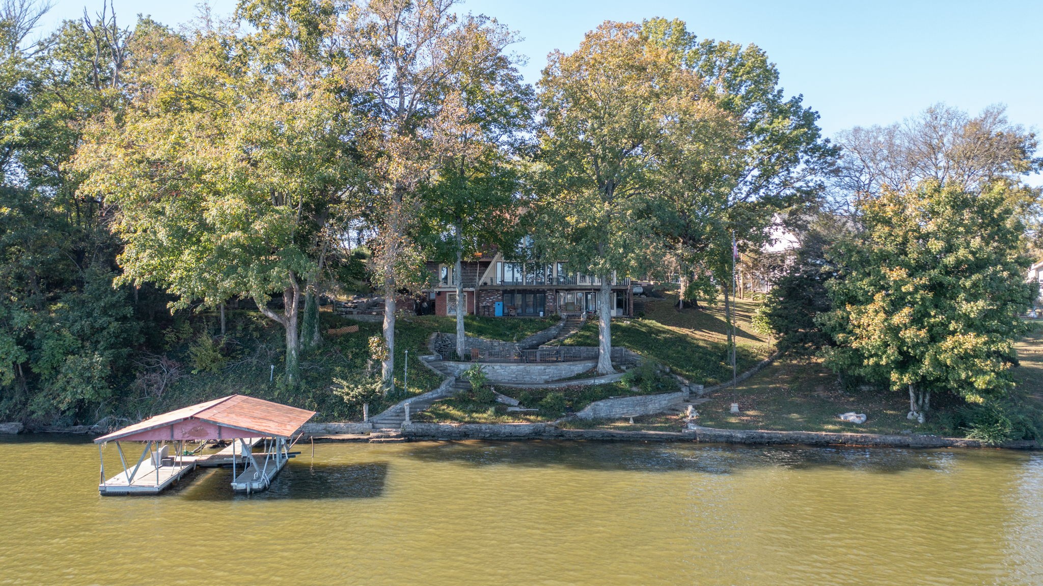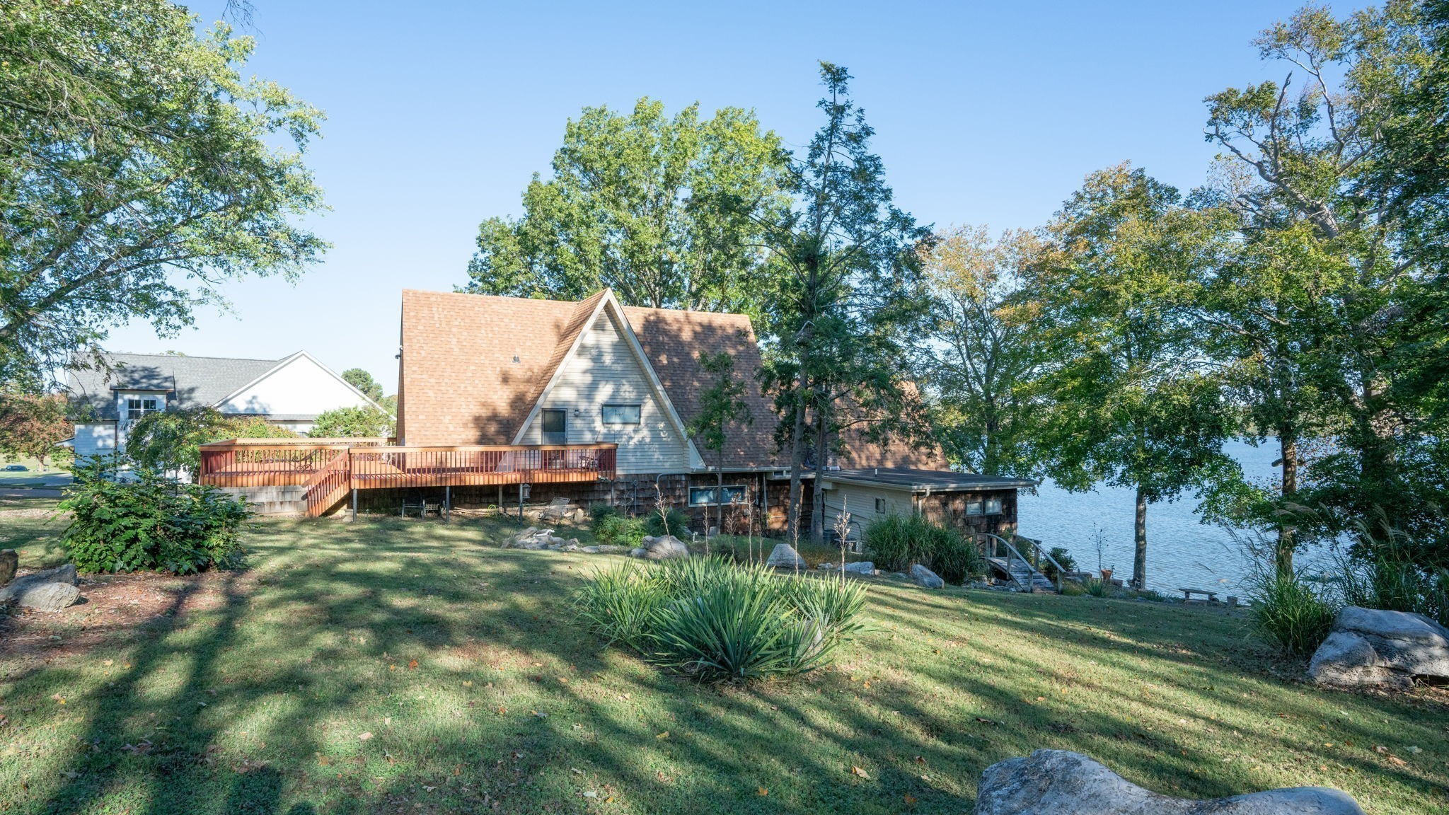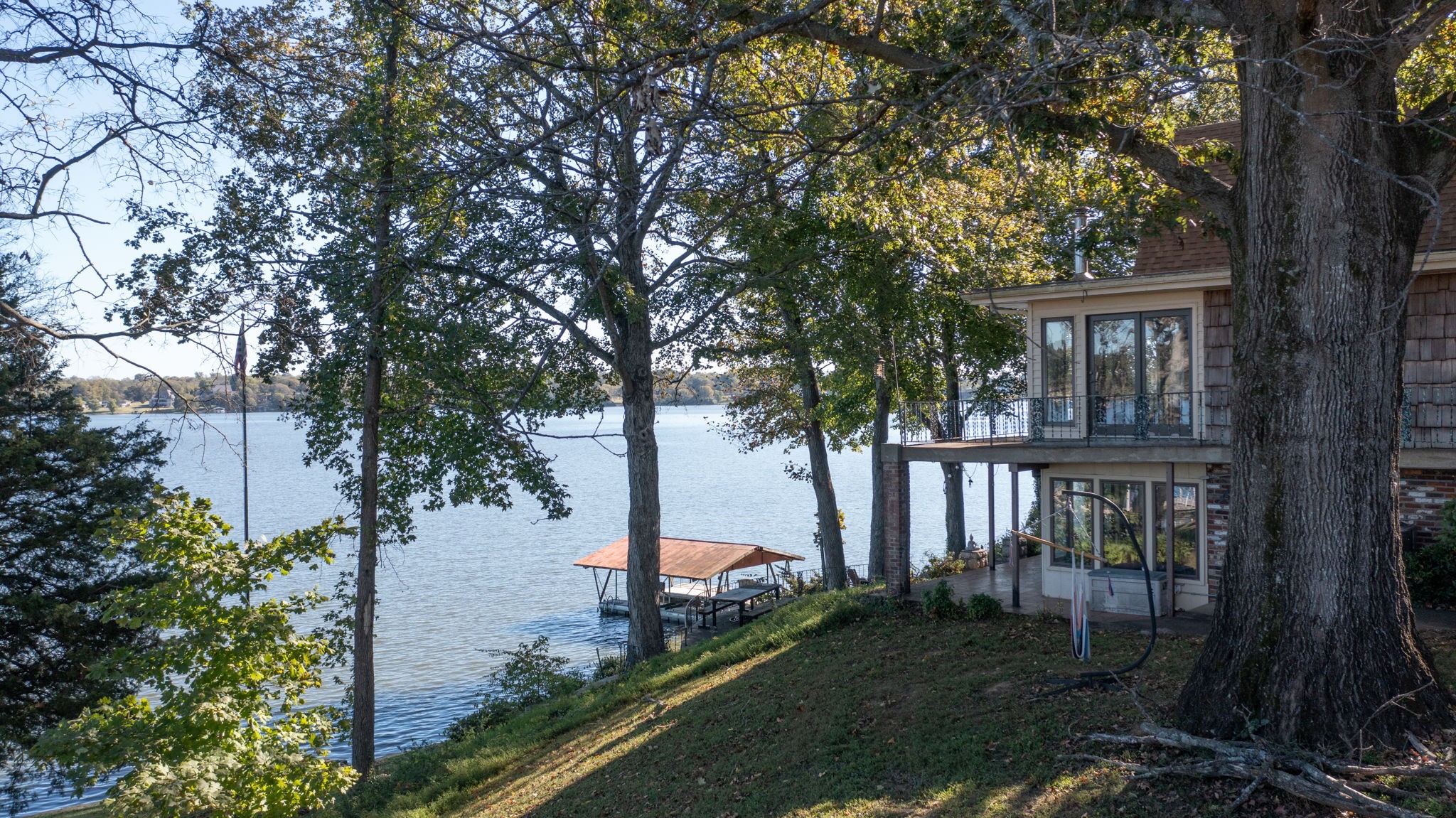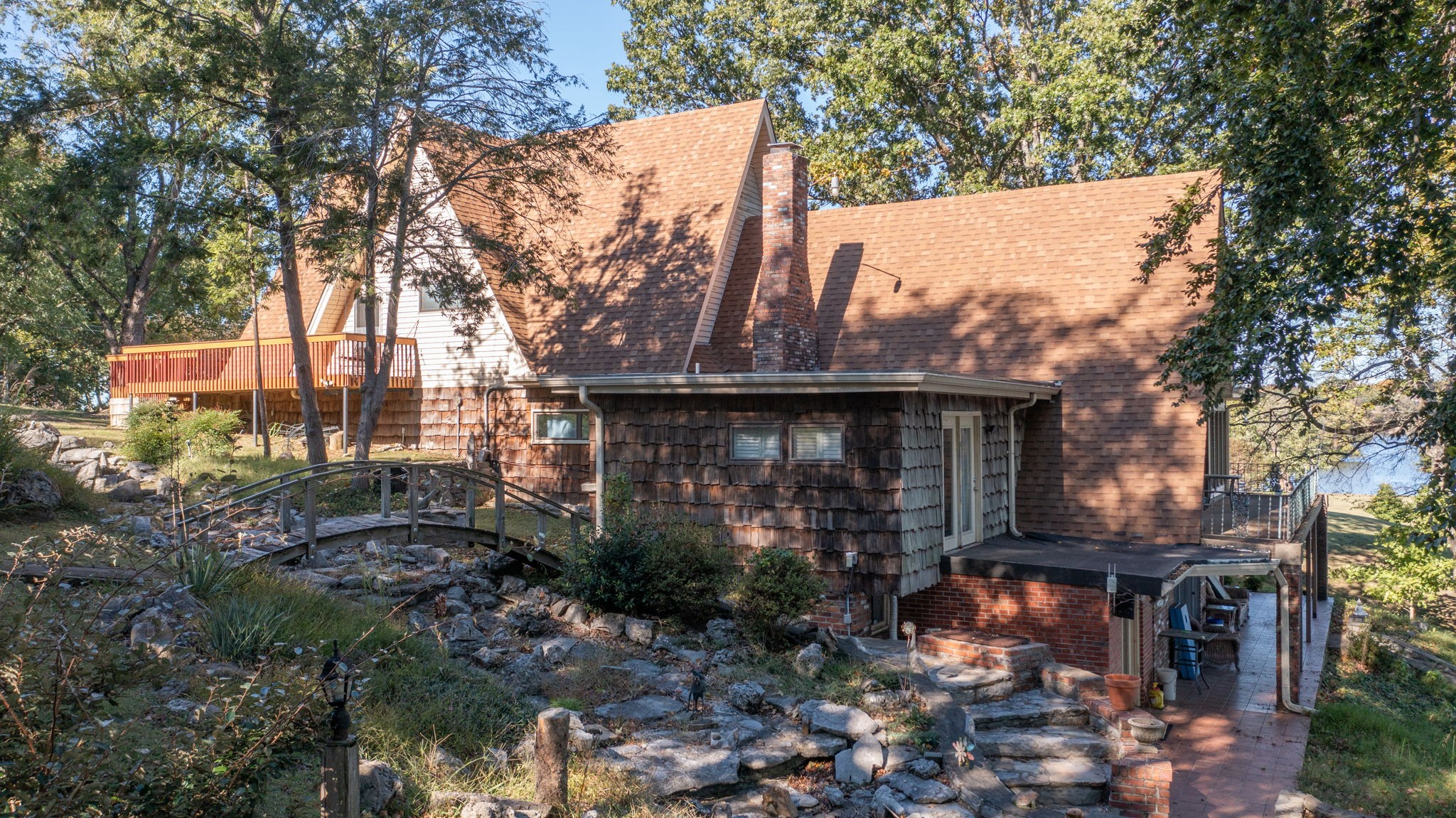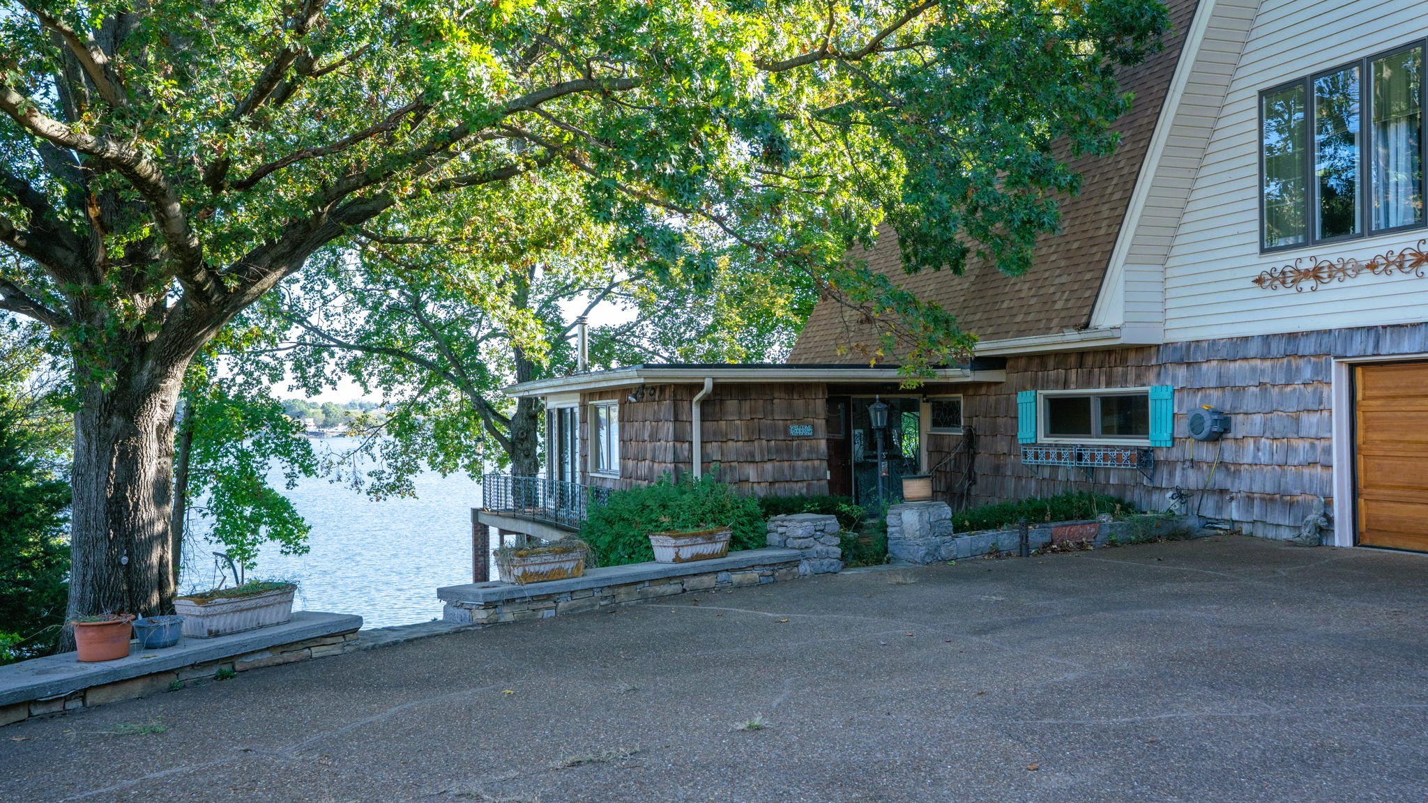 This charming lakefront home sits on a double lot directly on the main-channel with 290 ft of lake frontage offers sweeping, unobstructed water views from every angle. Designed to embrace the natural beauty of its surroundings, it features warm, inviting character with expansive windows that flood the interior with light and perfectly frame the sparkling lake beyond. Giant master suite with his and hers walk-in closets, bath with double vanities, jetted tub, separate shower and access to wrap around deck. The fully finished basement offers a true in-law suite, complete with its own private entrance, living area, bedroom, kitchen, laundry area and bath—perfect for extended family, guests, or multigenerational living. Outside enjoy easy water access, breathtaking sunsets, and the ultimate lakefront lifestyle—whether relaxing on the deck, launching a boat from the private dock, or simply soaking in the serene, open-water panorama. This is true lakefront living at its finest.