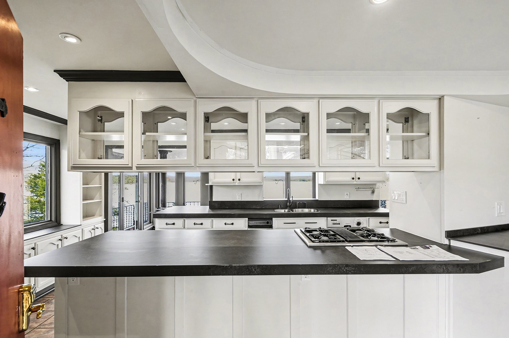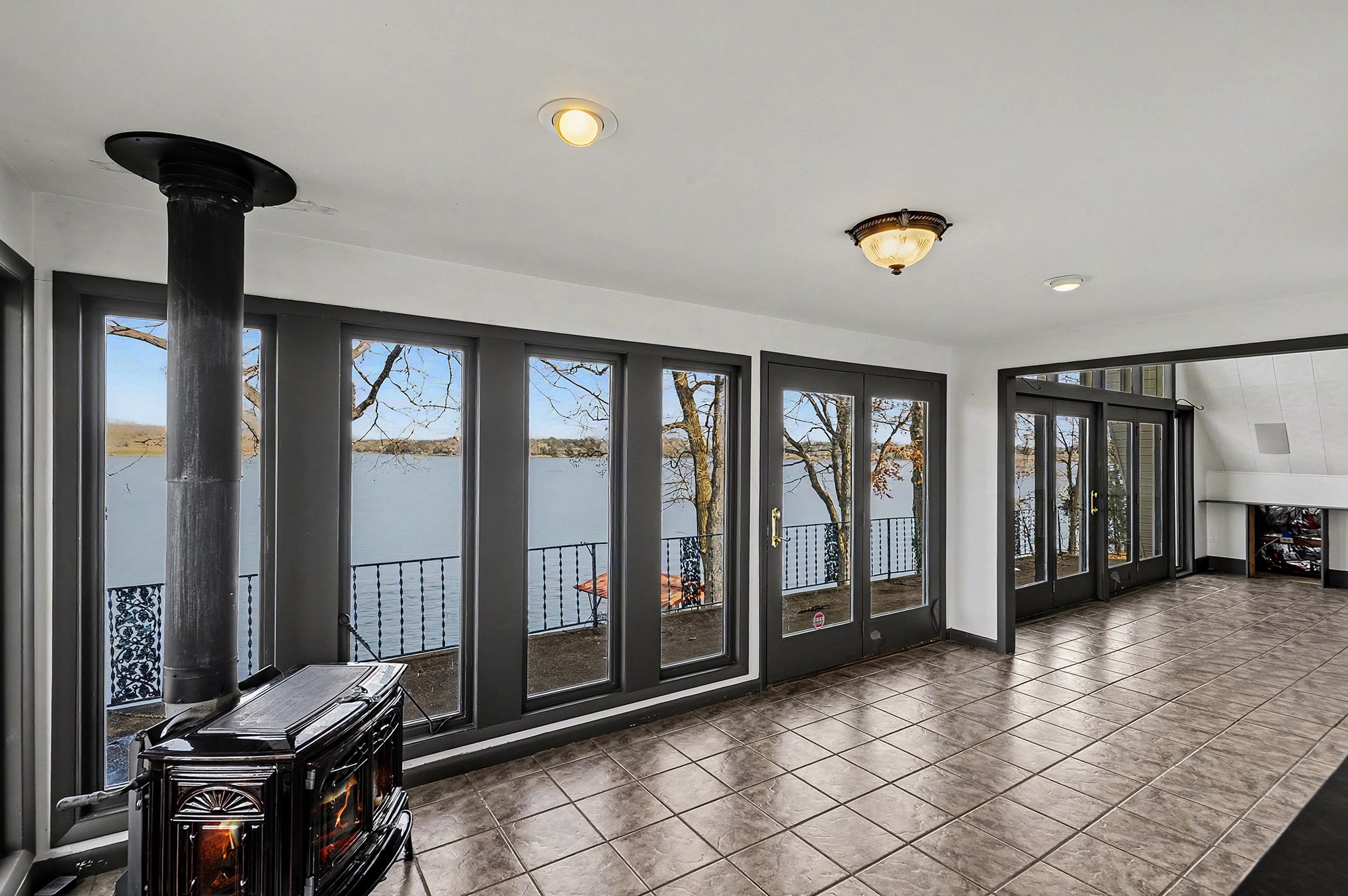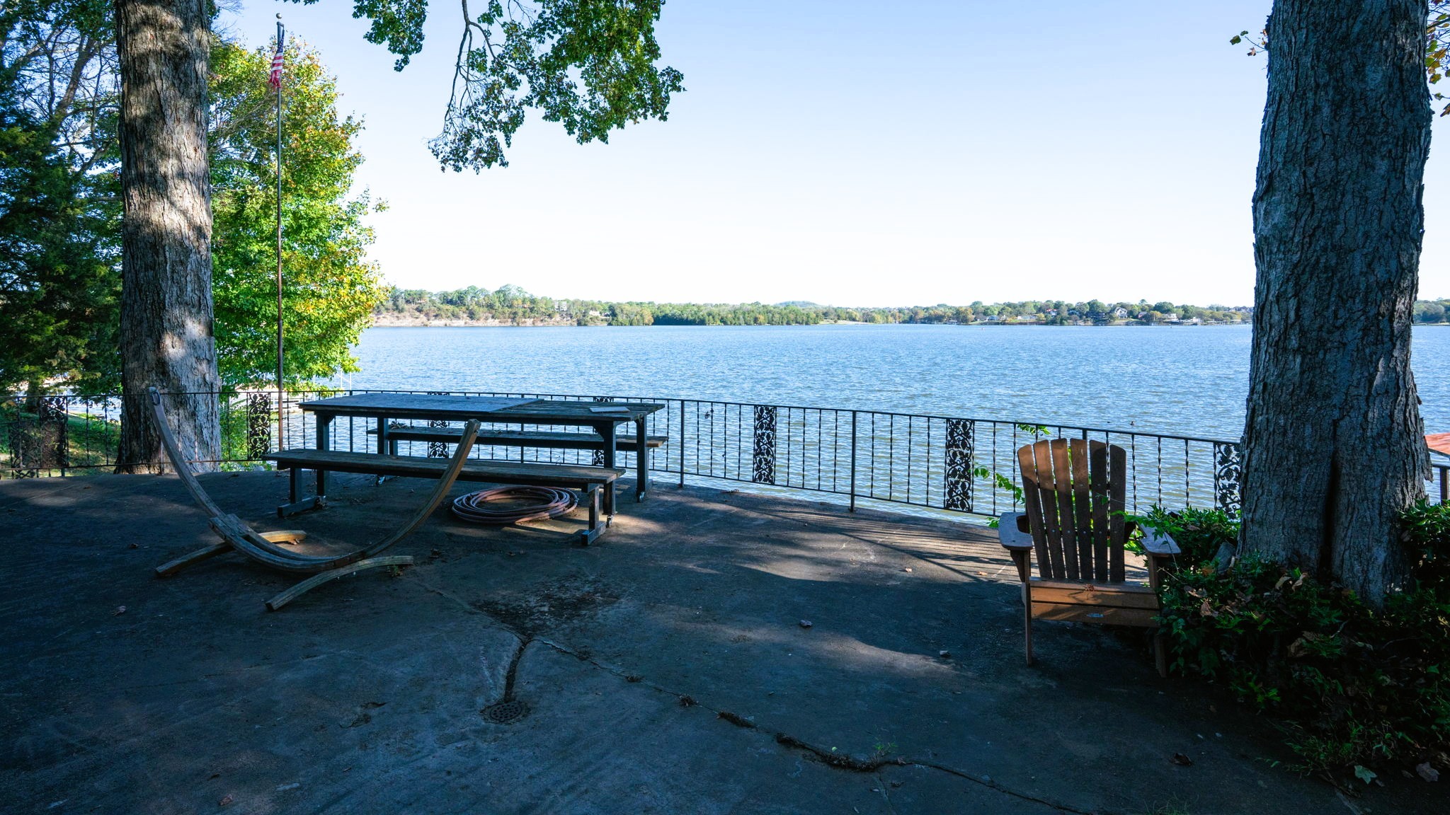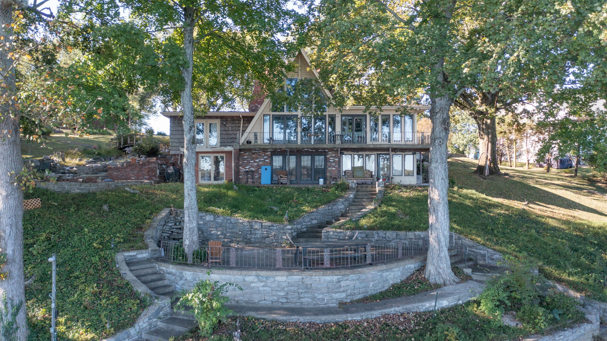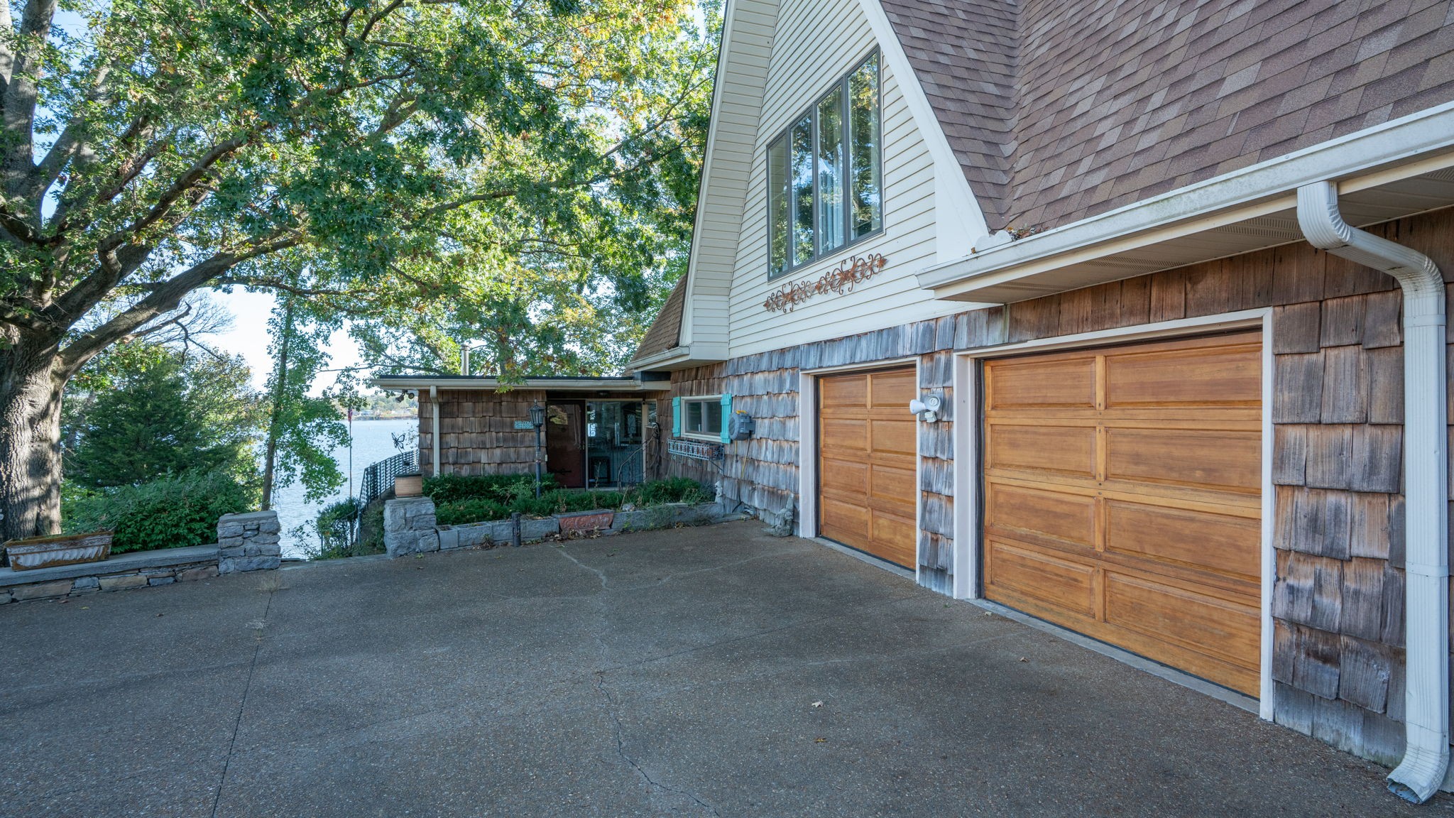 This charming lakefront home sits on a double lot directly on the main-channel with 290 ft of lake frontage offers sweeping, unobstructed water views from every angle. Designed to embrace the natural beauty of its surroundings, it features warm, inviting character with expansive windows that flood the interior with light and perfectly frame the sparkling lake beyond. Giant master suite with his and hers walk-in closets, bath with double vanities, jetted tub, separate shower and access to wrap around deck. The fully finished basement offers a true in-law suite, complete with its own private entrance, living area, bedroom, kitchen, laundry area and bath—perfect for extended family, guests, or multigenerational living. Outside enjoy easy water access, breathtaking sunsets, and the ultimate lakefront lifestyle—whether relaxing on the deck, launching a boat from the private dock, or simply soaking in the serene, open-water panorama. This is true lakefront living at its finest.