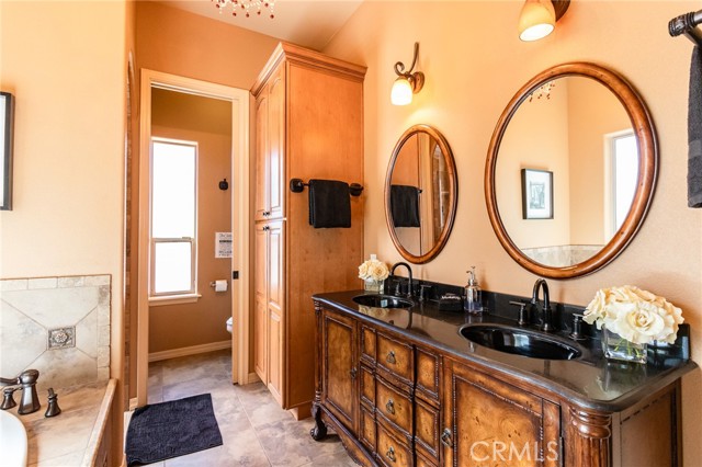 Bathroom Features: Bathtub, Shower, Shower in Tub, Double Sinks in Primary Bath, Exhaust fan(s), Granite Counters, Linen Closet/Storage, Main Floor Full Bath, Privacy toilet door, Separate tub and shower, Soaking Tub, Walk-in shower