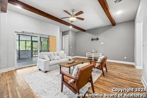 Exterior Features :Covered Patio, Deck/Balcony, Wrought Iron Fence, Double Pane Windows, Has Gutters, Mature Trees, Screened Porch