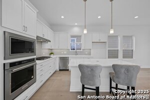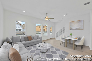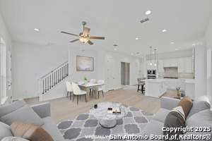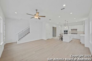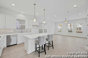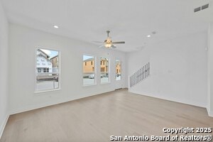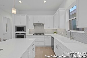 HUGE PRICE IMPROVEMENT!!! NOW IS YOUR CHANCE TO LIVE IN THE HOTTEST NEIGHBORHOOD IN DOWNTOWN NEW BRAUNFELS!!!! Nestled among the historic homes and quiet walking streets of downtown New Braunfels sits this STUNNING, new home by WES PEOPLES HOMES in the highly sought after Town Creek Subdivision! Walking distance to shops and restaurants, Town Creek has become the hottest neighborhood in New Braunfels, TX with close proximity to everything and is one of the last new construction neighborhoods in downtown. Contemporary yet comfortable, the 3 bedroom-2.5 bath home boasts soaring ceilings and stunning wood floors throughout the spacious downstairs. At the heart of the home and open to the huge dining and living space is the chef's kitchen with gas cooking, built-in microwave and oven, and quartz center island with convenient counter bar seating. Custom shaker cabinets and designer backsplash complete the modern yet simple design. The half bath with decorator tile is just off of the kitchen near the two-car garage for ease of use. At the top of the wood staircase are two secondary bedrooms with shared bath styled with quartz countertops and floating cabinets, and an over-sized laundry room with built-in custom cabinets and washing sink. The spacious primary suite is a sanctuary-like space with a view from the covered balcony of the old Comal Water Plant stacks and Panther Canyon that line the nearby Comal River. Escape to the en-suite spa bathroom with large mud-set glass surround shower, double vanities with quartz counters, and large walk- in closet; luxury in living at its finest! Quality craftmanship and classic design at every touch. Everything that "in town" living affords is right outside your front door. Bike to the little grocery to grab the milk you forgot and leave the car in the garage and ride the golf cart to see who's playing at the saloon. The New Settlers in Town Creek revel in a lifestyle much like living on vacation.
