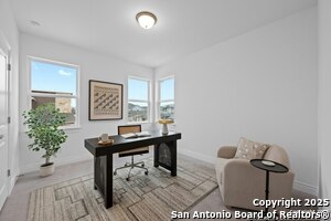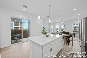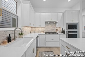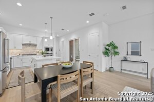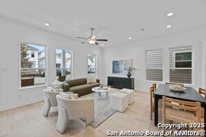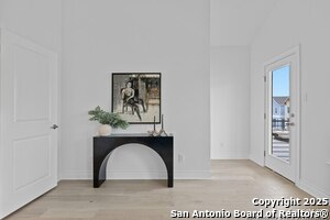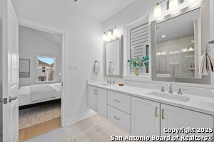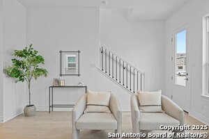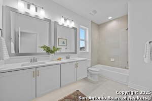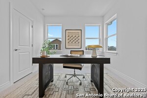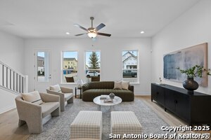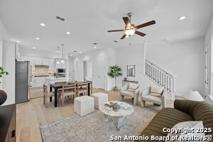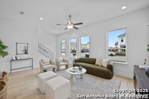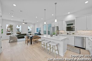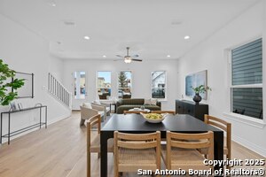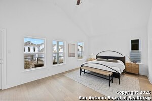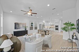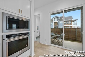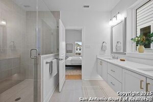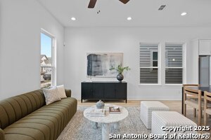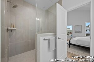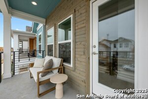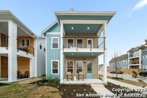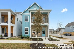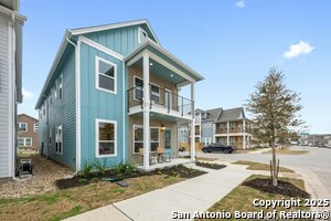 HUGE PRICE IMPROVEMENT!!! OWN THE STUNNING MODEL HOHME IN THE HOTTEST NEIGHBORHOOD IN DOWNTOWN NEW BRAUNFELS!!! Nestled among the historic homes and quiet walking streets of downtown New Braunfels sits this STUNNING, new model home by WES PEOPLES HOMES in the highly sought after Town Creek Subdivision! Set beneath the bell tower and walking distance to shops and restaurants, Town Creek has become the hottest neighborhood in New Braunfels, TX with close proximity to everything and is one of the last new construction neighborhoods in downtown. Contemporary yet comfortable, the 3 bedroom-2.5 bath home boasts soaring ceilings and stunning wood floors throughout the spacious downstairs. At the heart of the home and open to the palatial dining and living space is the chef's kitchen with gas cooking, built-in microwave and oven, and quartz center island with convenient counter bar seating. Custom shaker cabinets and designer backsplash complete the modern yet simple design. The half bath with decorator tile is just off of the kitchen near the two-car garage for ease of use. Enjoy the beautiful TX spring mornings on the covered patio sharing light with the kitchen or savor your morning coffee on the covered front porch with the vibrant goings on of neighbors bicycling and walking to their favorite coffee shop or strolling down to the gym to get in a work-out. At the top of the wood staircase are two secondary bedrooms with shared bath styled with quartz countertops and floating cabinets, and an over-sized laundry room with built-in custom cabinets and washing sink. The HUGE primary suite is a sanctuary-like space with a view from the covered balcony of the old Comal Water Plant stacks and Panther Canyon that line the nearby Comal River. Escape to the en-suite spa bathroom with large mud-set glass surround shower, double vanities with quartz counters, and large walk- in closet; luxury in living at it's best! Quality craftmanship and classic design at every touch. Everything that "in town" living affords is right outside your front door. The most walkable neighborhood in town among the sweet treat bakeries and boutique lined streets. Bike to the little grocery to grab the milk you forgot and leave the car in the garage and ride the golf cart to see who's playing at the saloon. The New Settlers in Town Creek revel in a lifestyle much like living on vacation. Reach out for more details! ***Leaseback Required***